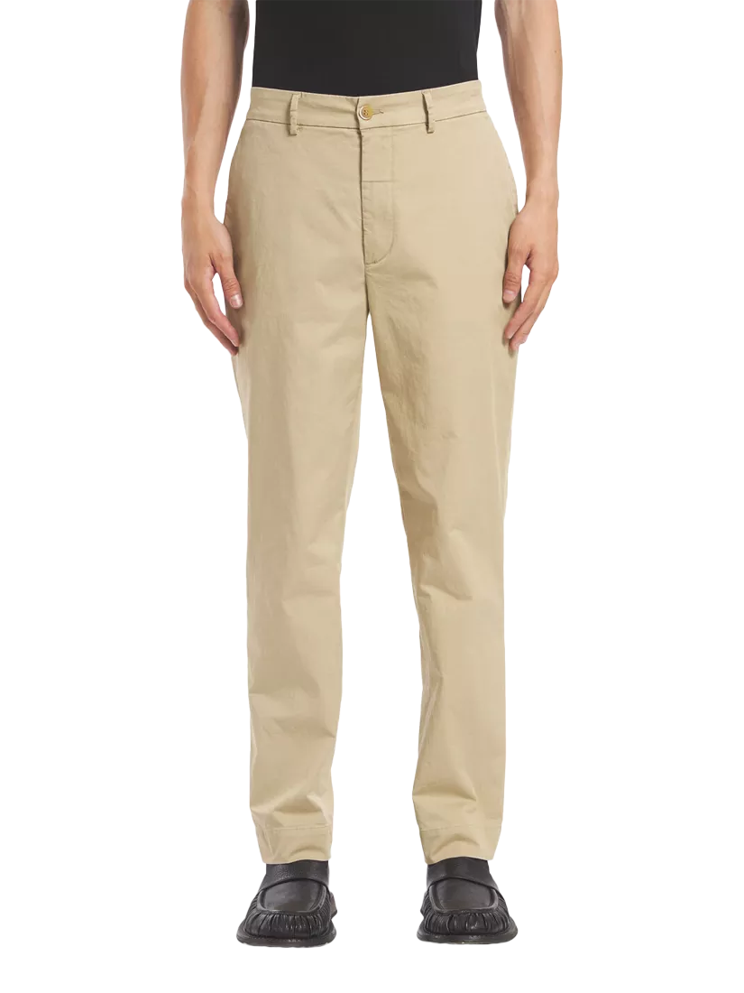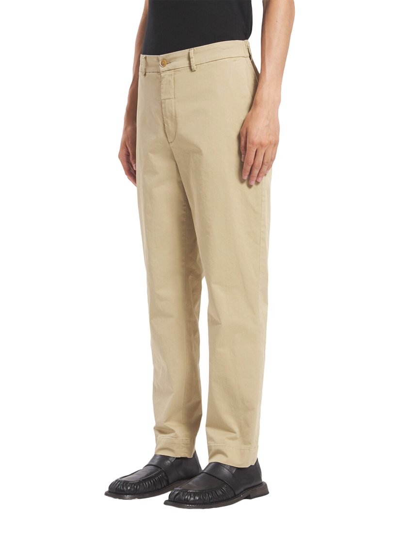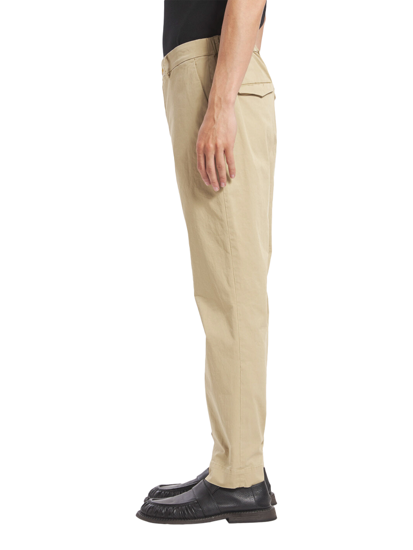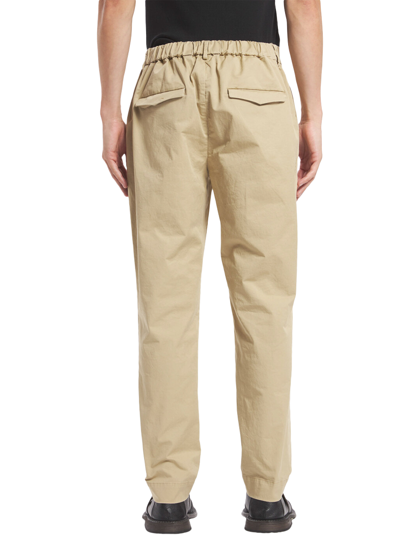 Semi-joggers with a back elasticated belt in a tight/regular fit. Made in cotton stretch, lightweight gabardine fabric.