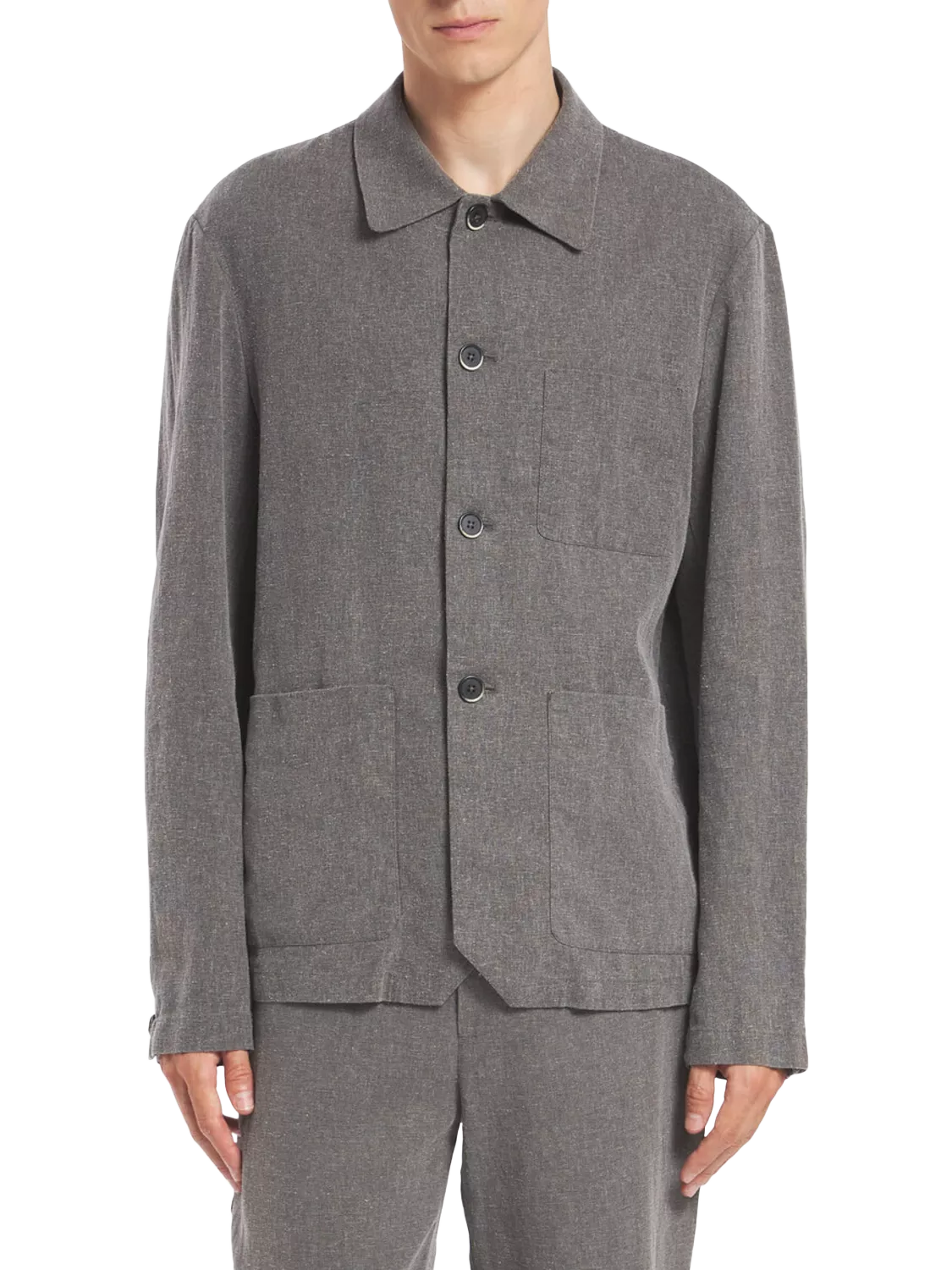The utilitarian style of this overshirt adds a smarter touch to a classic workwear silhouette. It features two patch chest pockets, button-up front and cuffs and spread collar. Made in a linen blend fabric.