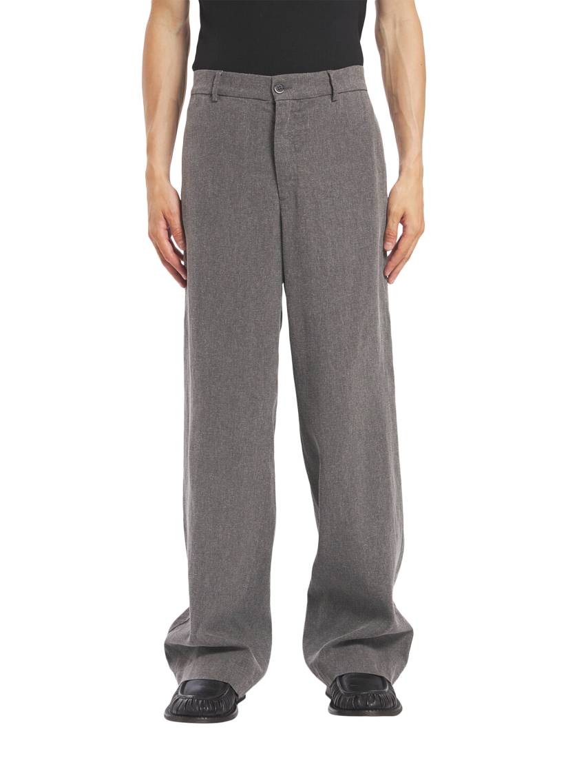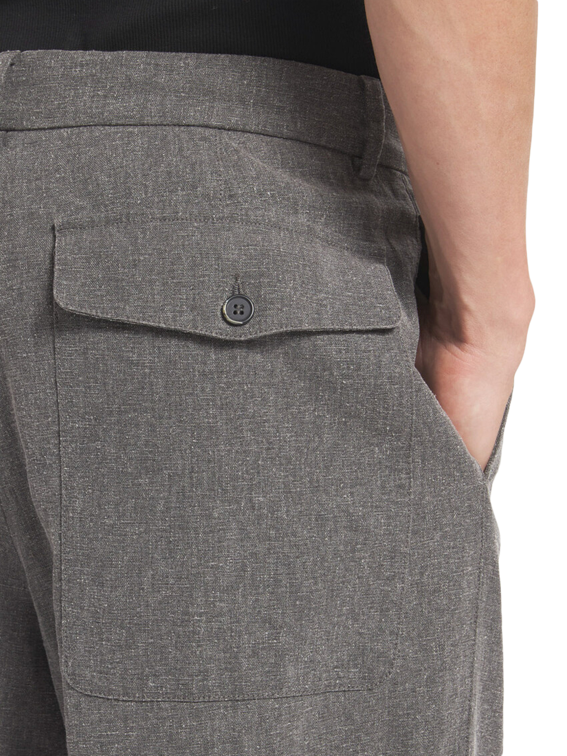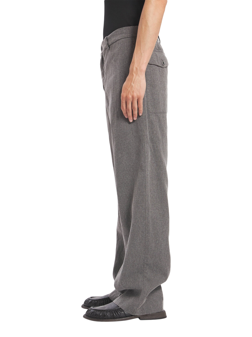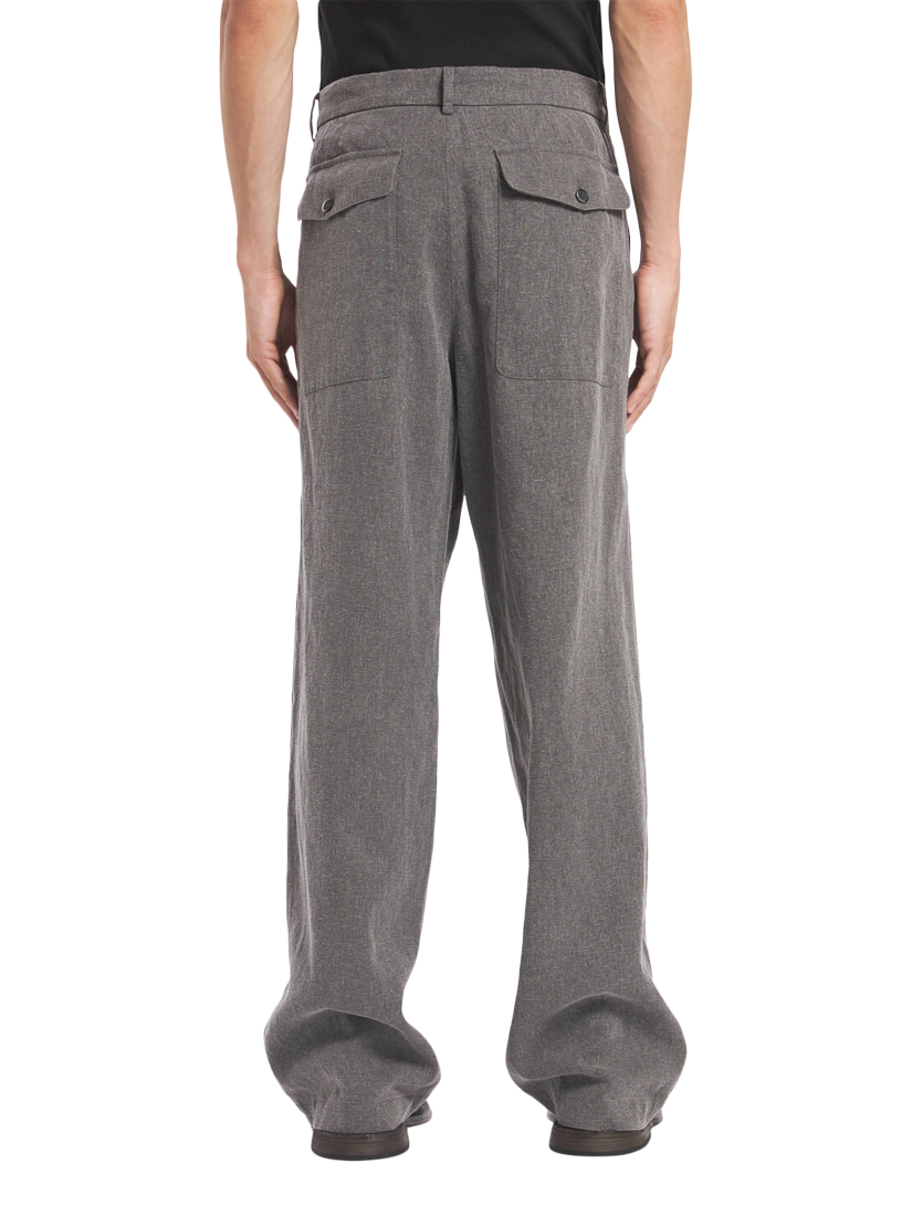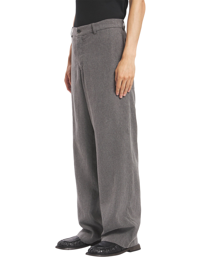 Linen blend work trousers cut with a relaxed wide leg.