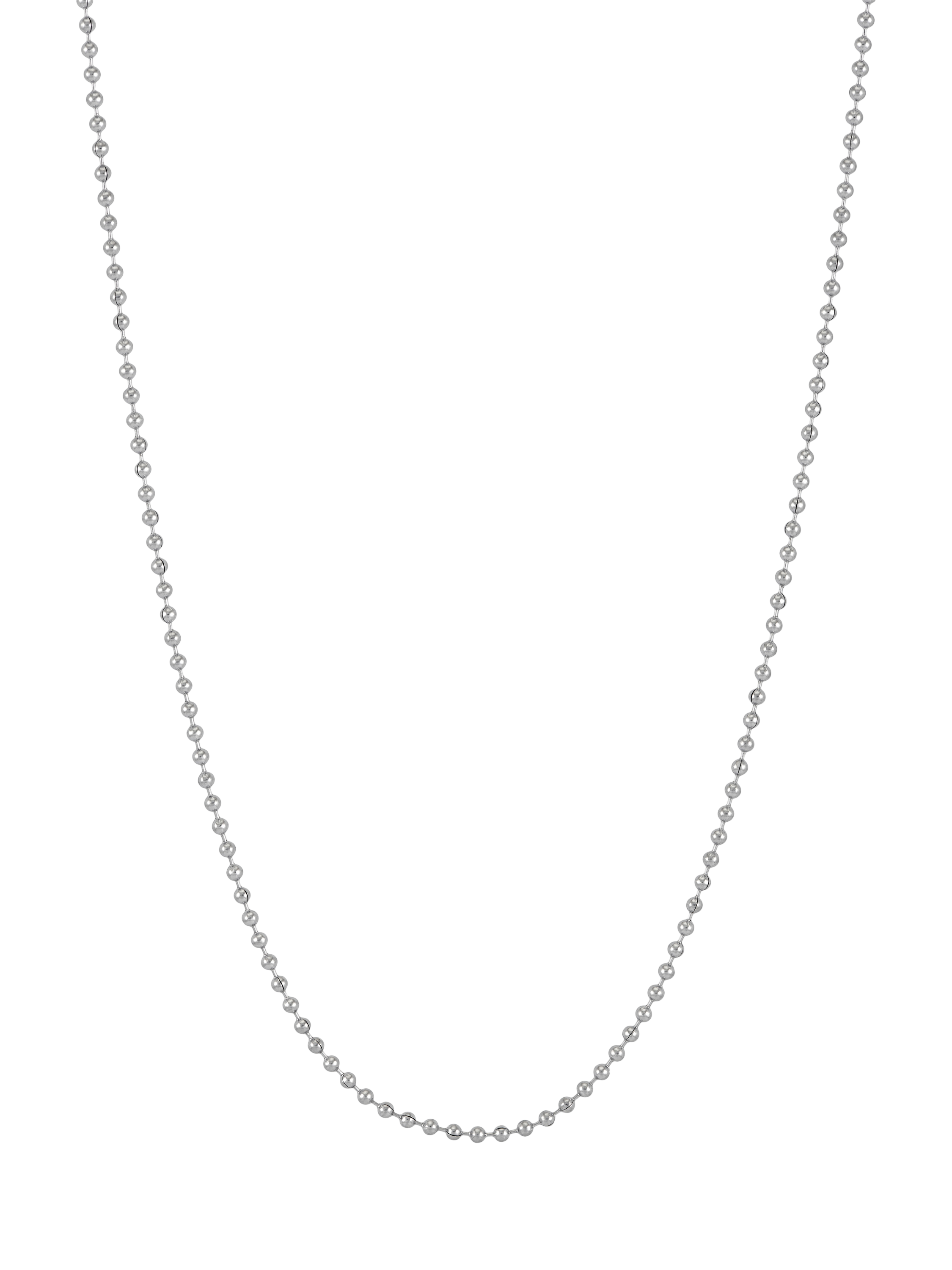 A simple chain necklace made with beaded ball links. Layer it up for a more complex look.