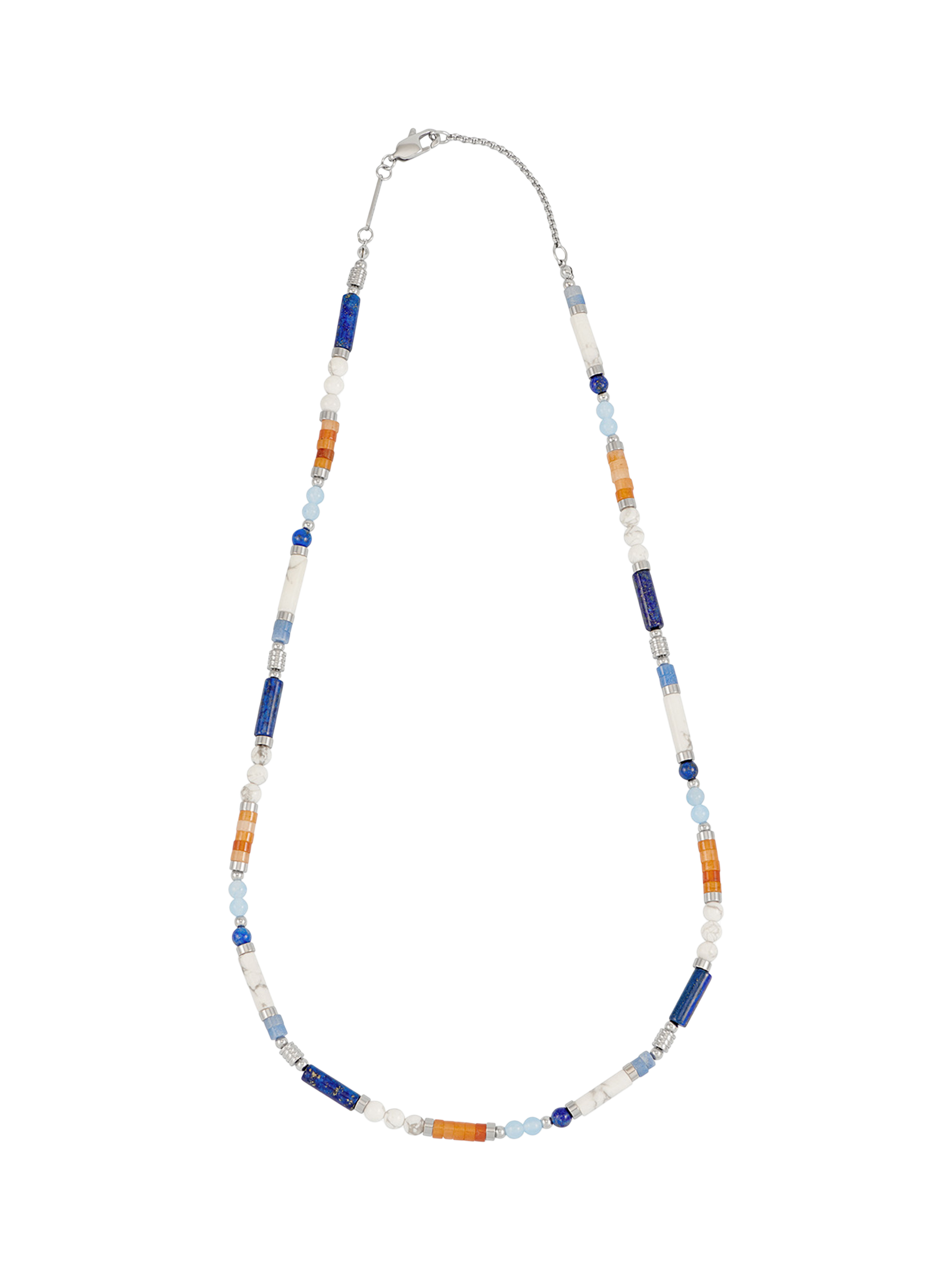 This BARTLETT LONDON necklace pairs lapis lazuli beads with mixed gemstones for striking visual impact, offering a clever accessory to express your individuality in everyday moments. Finished with a lobster claw fastening.
