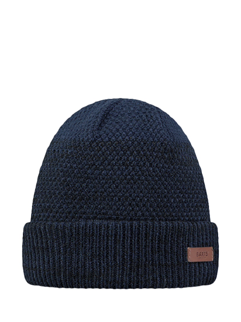 Cuffed knitted beanie hat with a Barts logo on the turn-up hem.