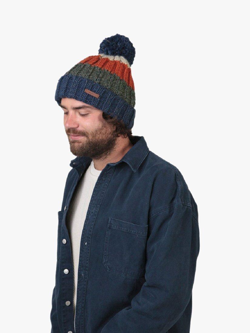 This cuffed pom pom beanie for men is made from a blend of soft acrylic and polyester.
