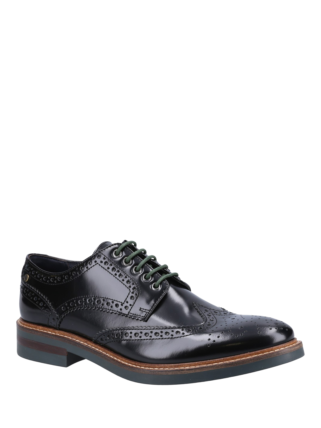 A traditional Derby brogue with a contemporary twist, the Woburn features a high shine leather upper with decorative toe detail and a wingtip toe cap.