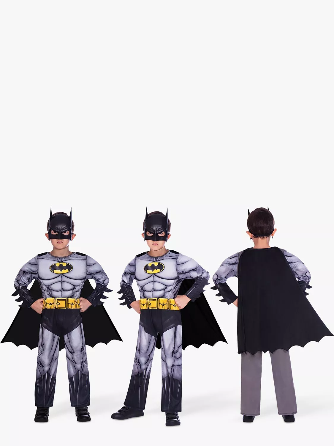 This Batman Classic costume is a comfortable stretchy jumpsuit with a full padded chest and 3D cuff details. The style also has a detachable cape & plastic mask to complete the look.