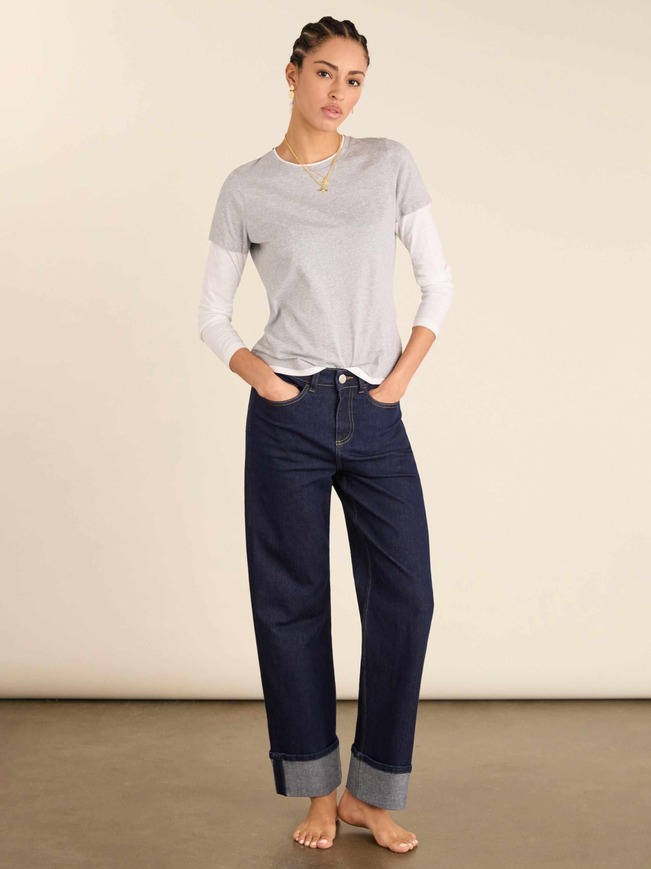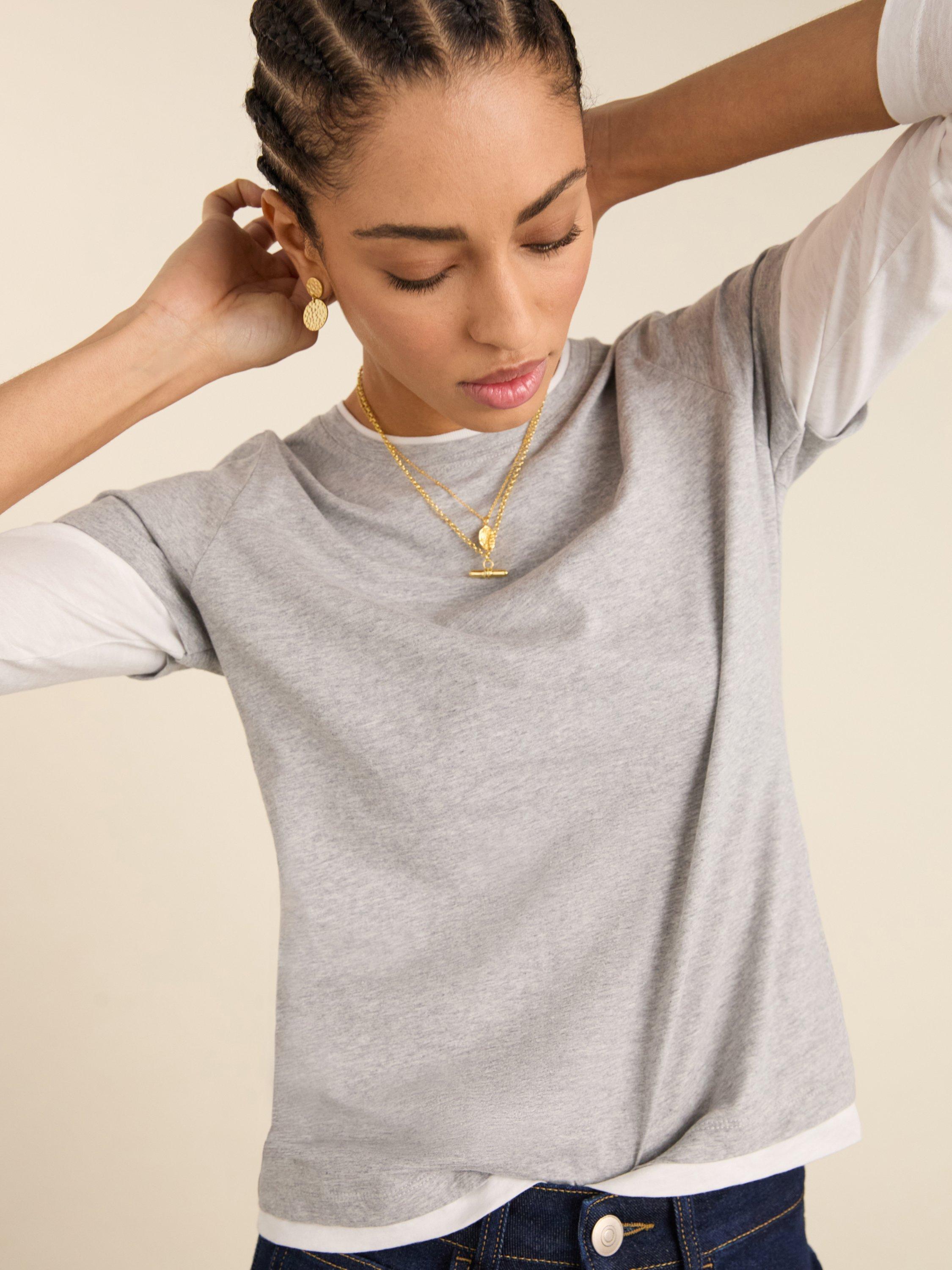 The Addie Double Layer Top cleverly takes the hassle out of layering. This clever style features a simple, long-sleeve top stitched to a short-sleeve marl tee - both in soft cotton. Providing warmth, easy styling - it’s what your weekend wardrobe has been calling out for.