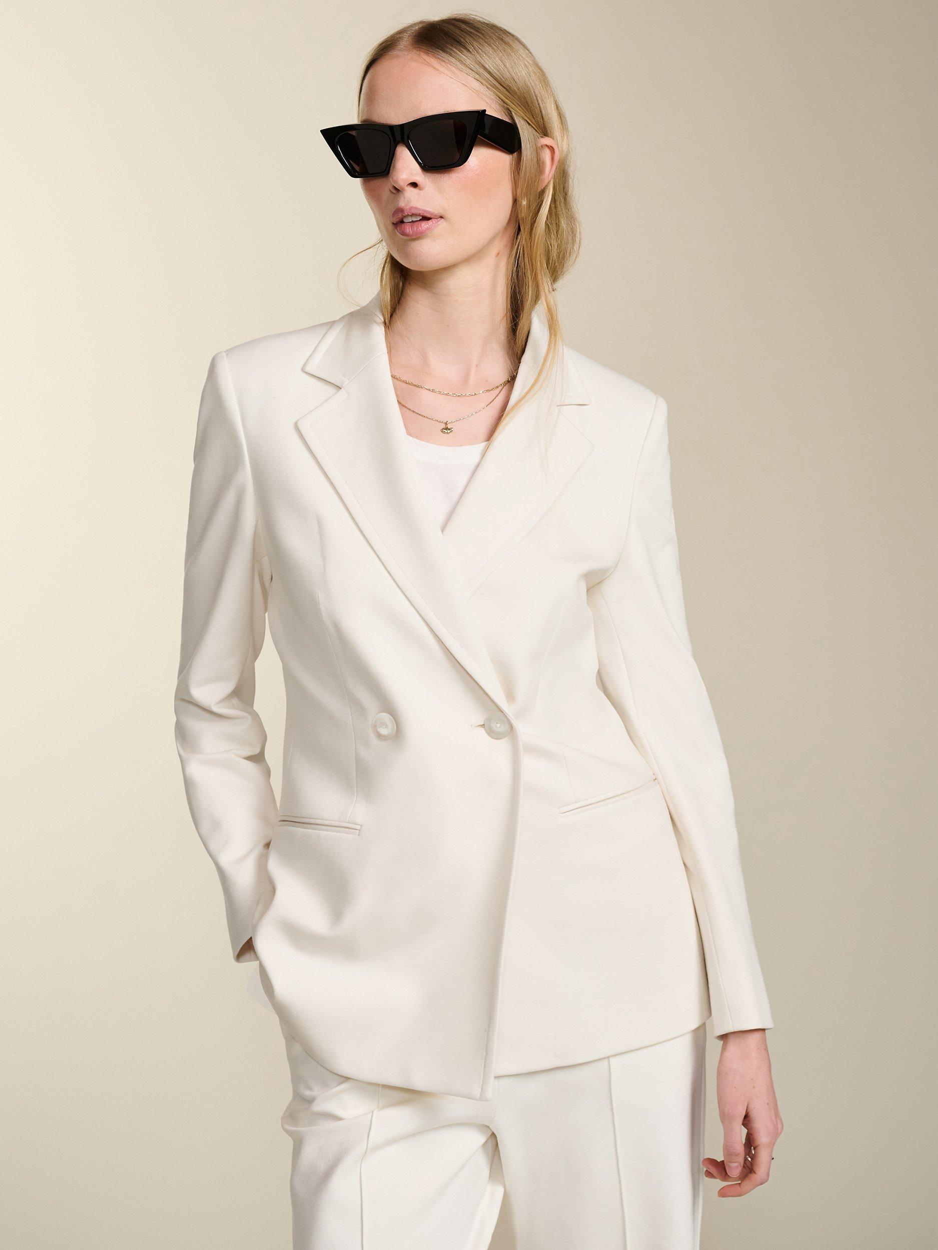 Here's proof that comfortable tailoring does exist! Albertine is made from ponte, a fabric we love for its structure and stretch. Double-breasted and cut to shape the waist with an elegant, slim fit, it will instantly elevate whatever you choose to pair it with.