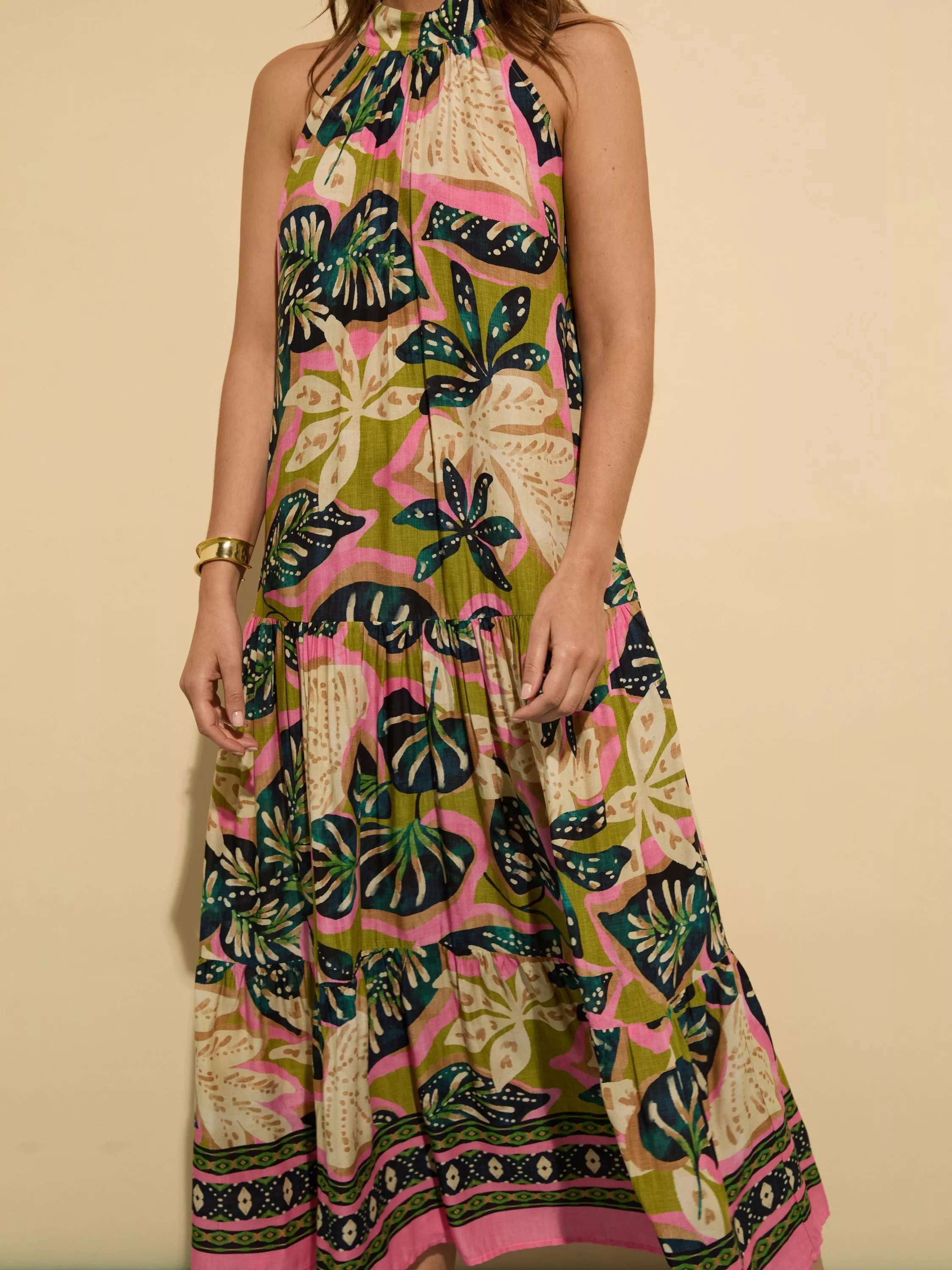 Nothing says summer like a floaty halterneck dress! The Anouk Printed Dress is maxi length and adorned with a tropical palm print - making it the number one contender for holiday packing! Lightweight and cut into easy tiers, it ties around the neck. Just add earrings and sandals for an effortless day-to-night outfit.