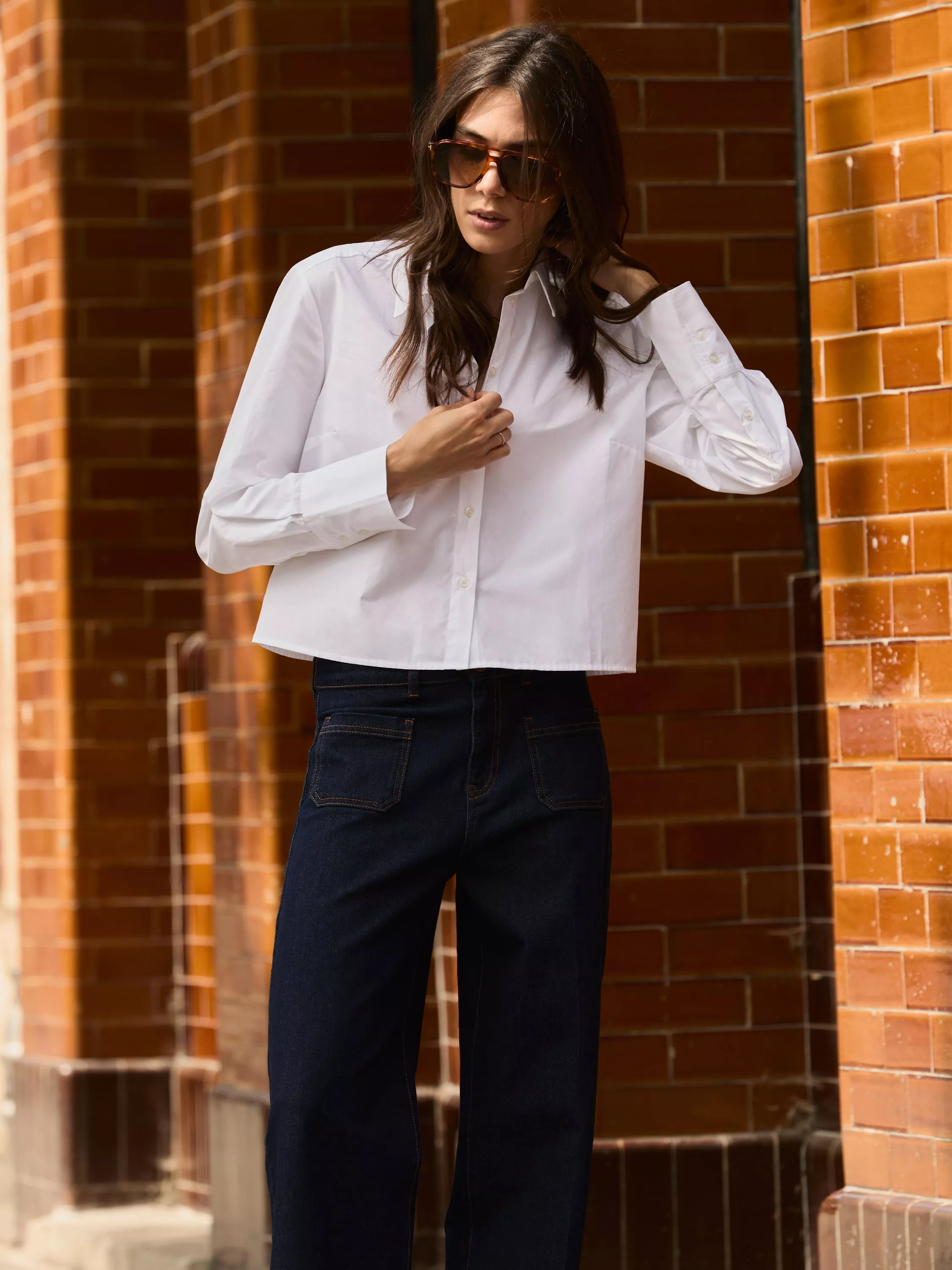 The must-have shirt of the moment is cropped and crisp, so meet the Corey Cotton Cropped Shirt. Crafted in cotton poplin, this style is cut off at the waist for a modern update on a wardrobe classic. What to style it with? Any type of tailoring works, as does high-waisted denim.