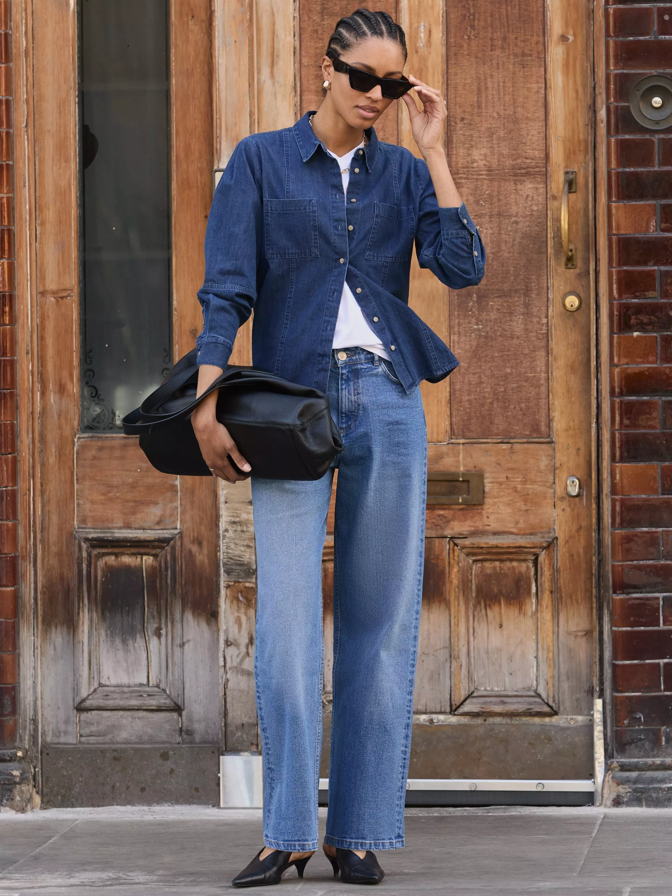 Discover endless styling potential with the Damaris Denim Shirt. We love its versatility: style it fully buttoned-up to give a cool edge to tailored trousers, throw it over a tee with a neck scarf, or tuck it into jeans for the double-denim look. Crafted in cotton, this easy style is elevated with shoulder tucks and seam details around the elbows and front and is shaped around the waist for a subtly tailored fit.