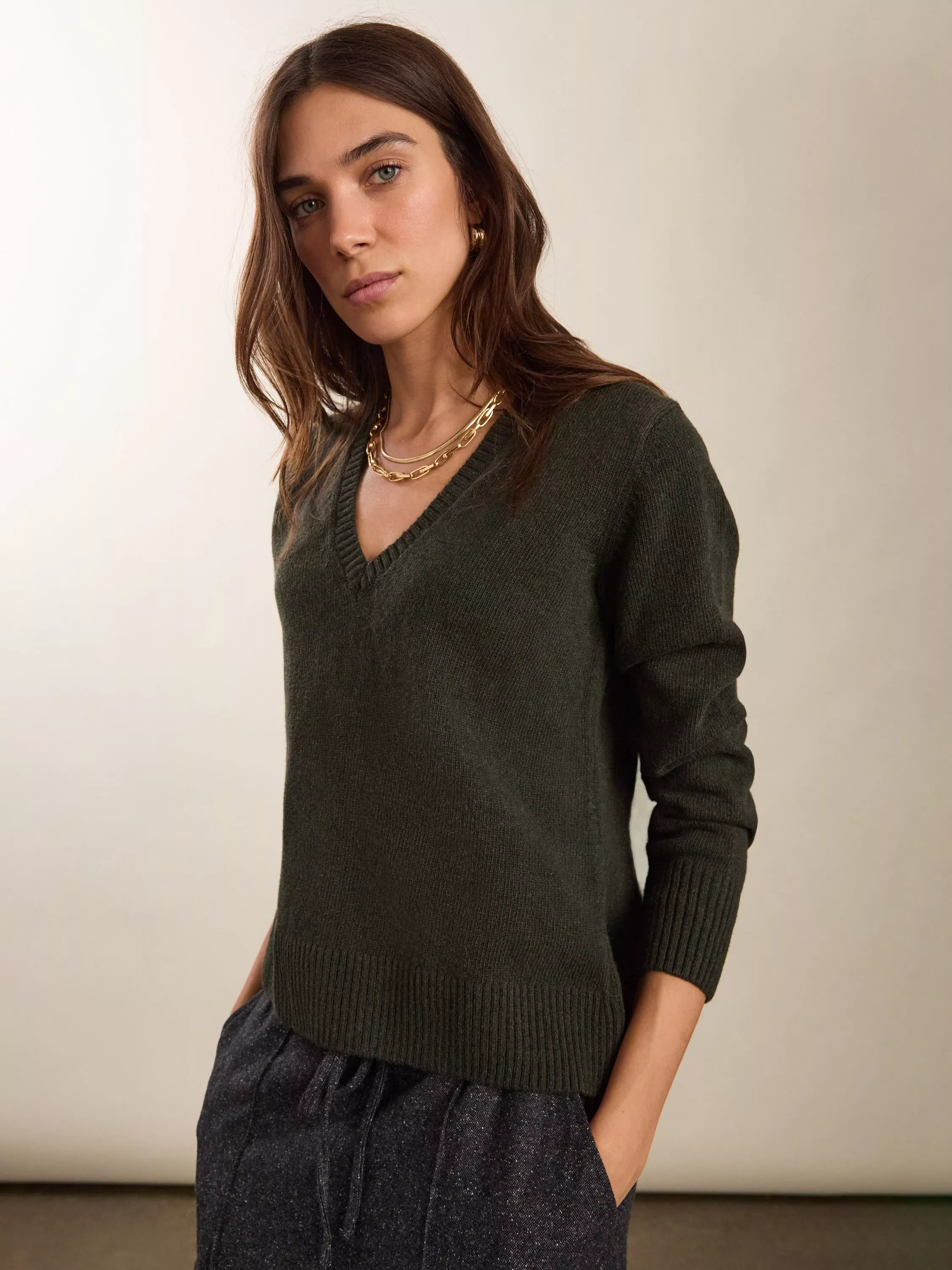 BaukjenEmmeline V-Neck Wool Rich Jumper, Deep Khaki