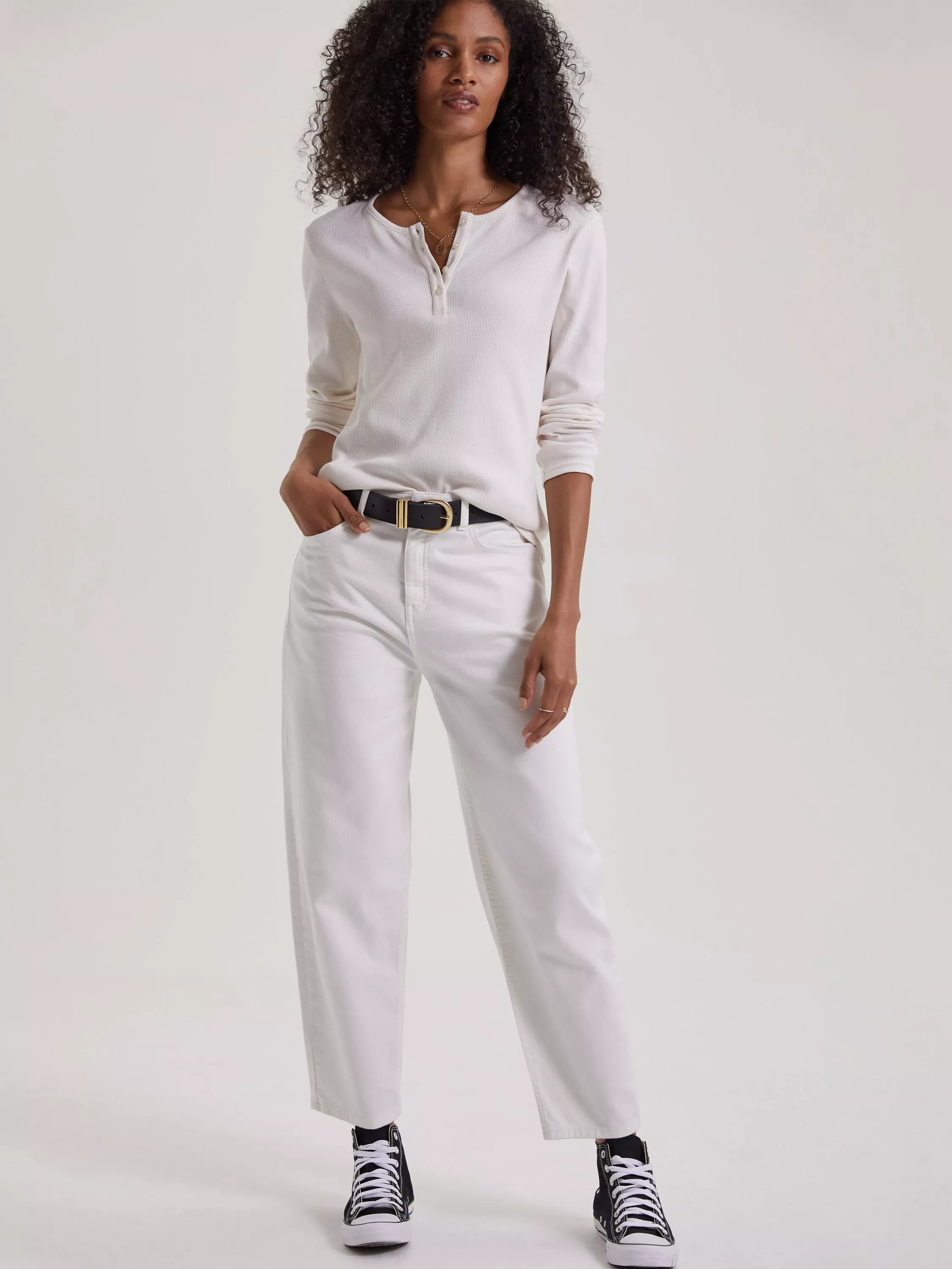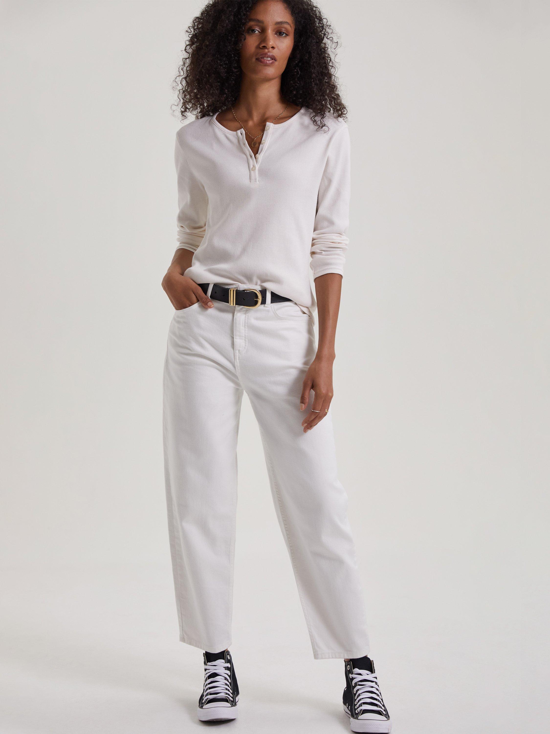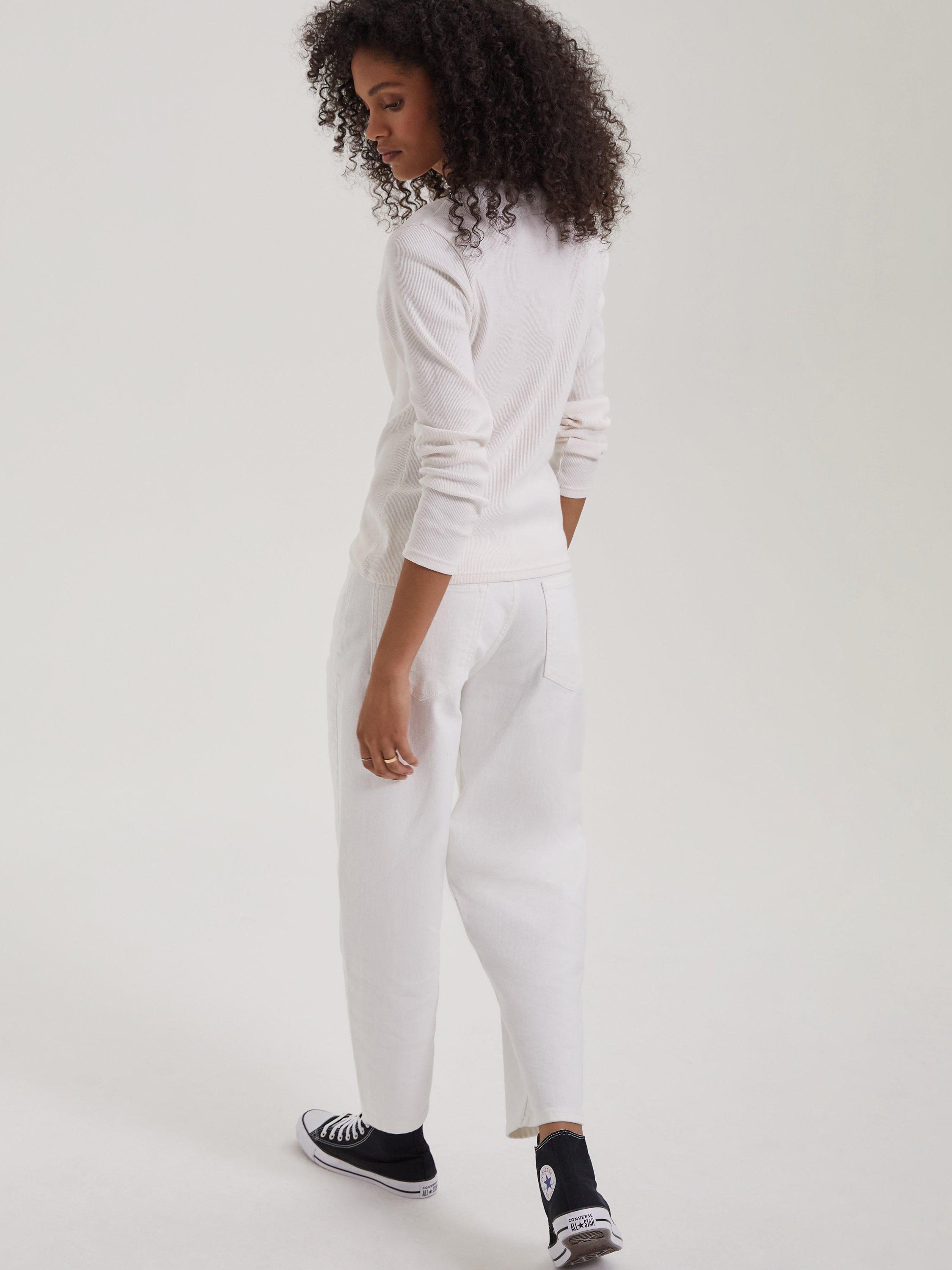 A jean for all seasons - literally. Why? Because the Barrel's tapered fit around the ankle will see you through summer with sandals, then sit neatly above ankle boots come autumn. Their shape is fitted around the waist and hips, then loose through the leg before nipping in again at the hem. So easy to style, these are our new go-to.