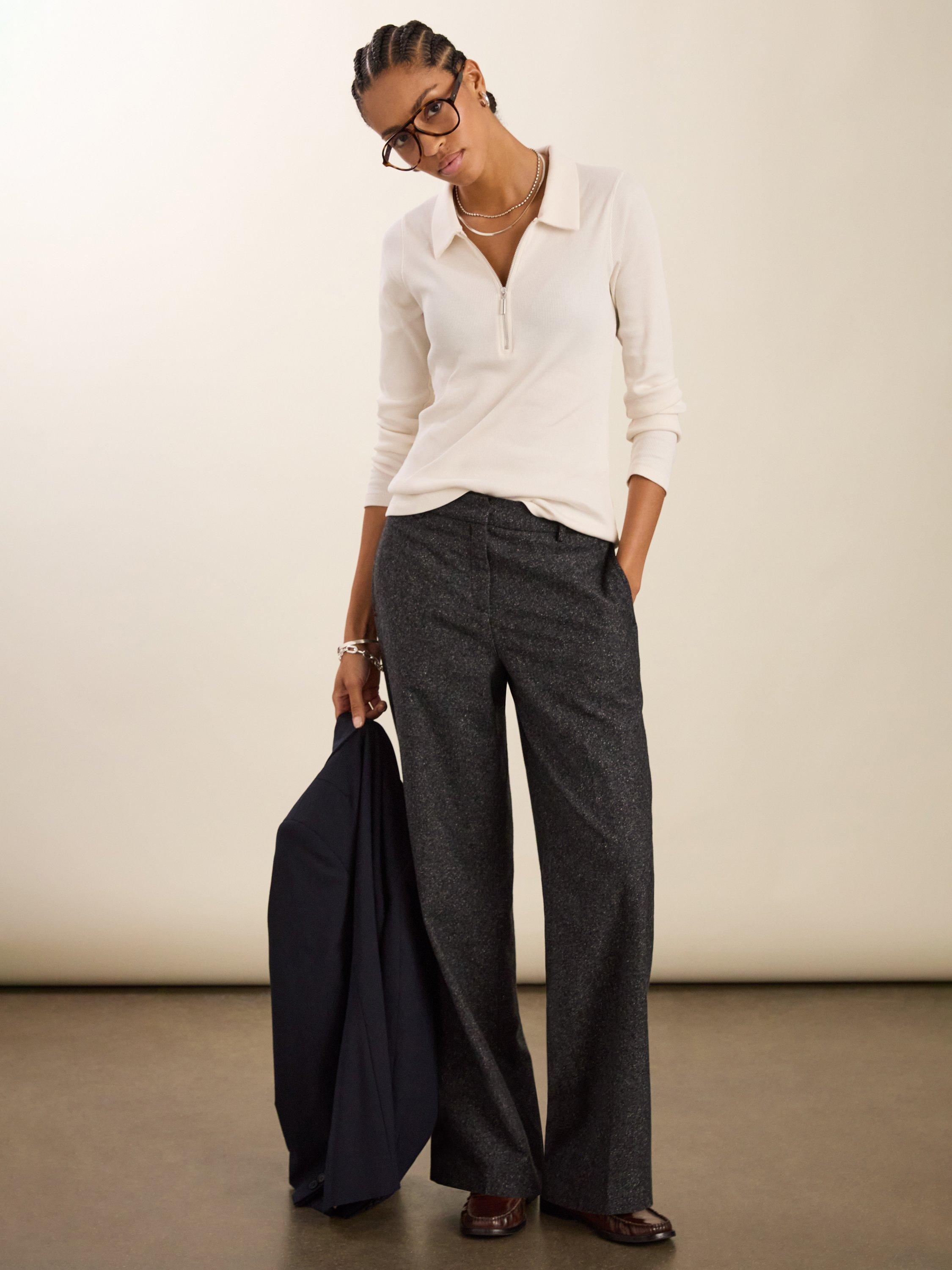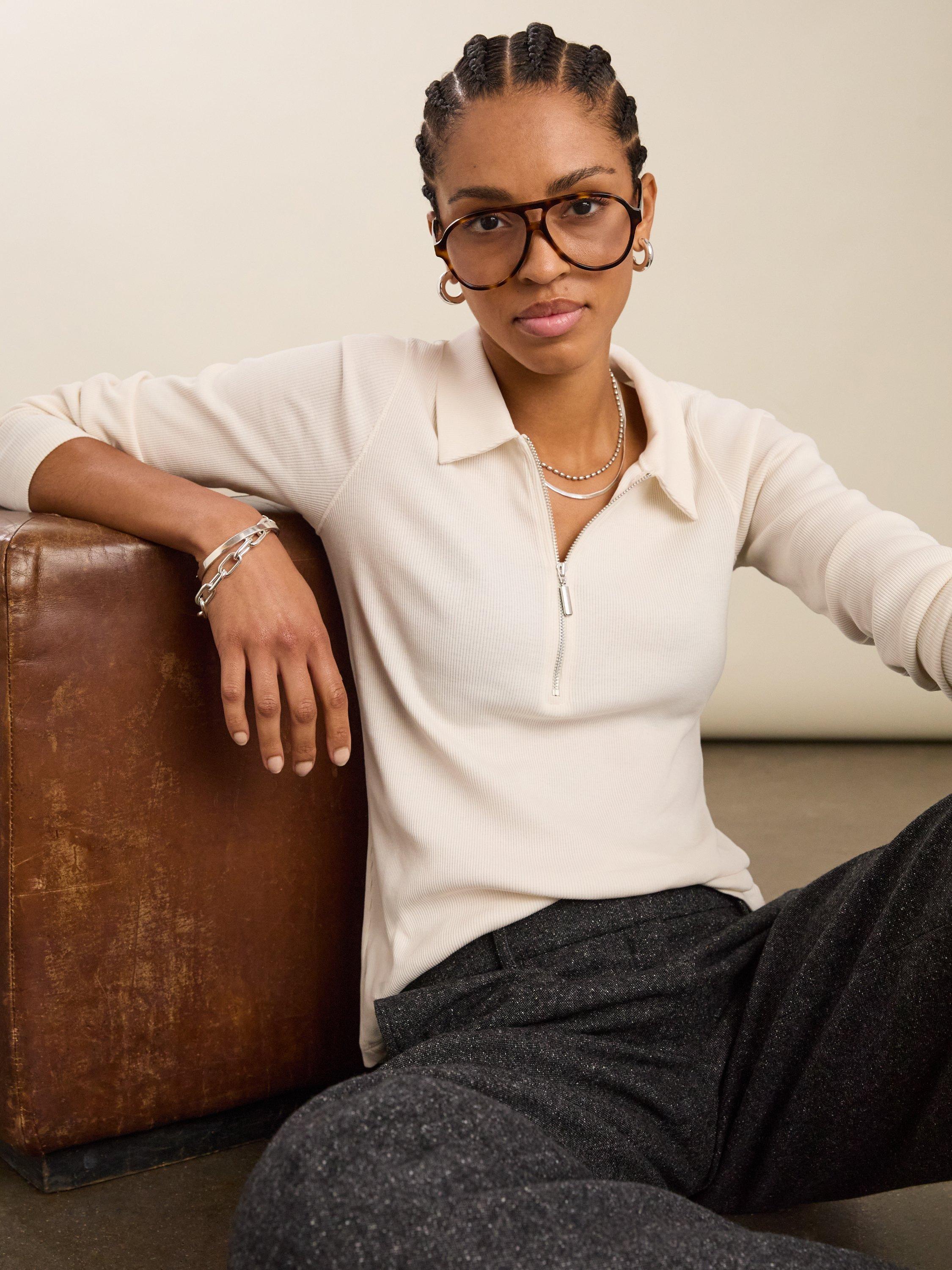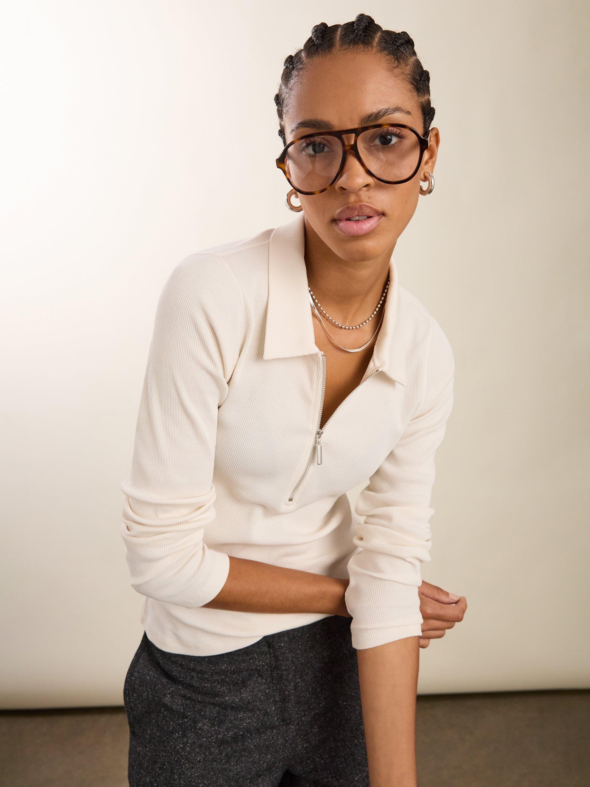 Well-designed, beautifully cut basics are the cornerstone of an easy and feel-good wardrobe. This simple style straddles the smart-casual balance effortlessly, thanks to its soft cotton rib fabric and neat collar detail. Its half-zip neckline provides a touch of modernity: wear it open to show off your favourite pendants or fully zipped for a preppy feel.