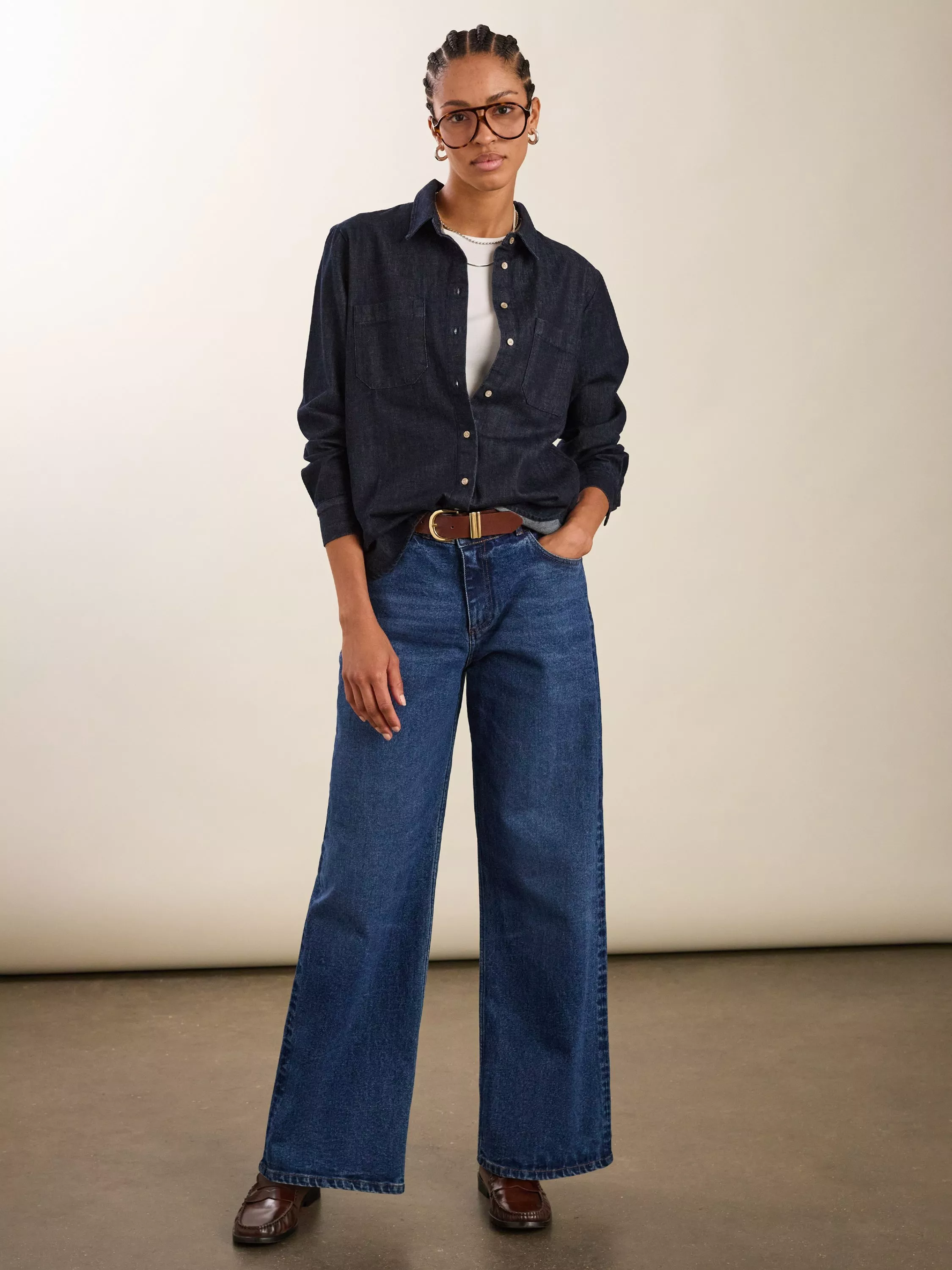 BaukjenWide Leg Slouch Jeans, Dark Indigo