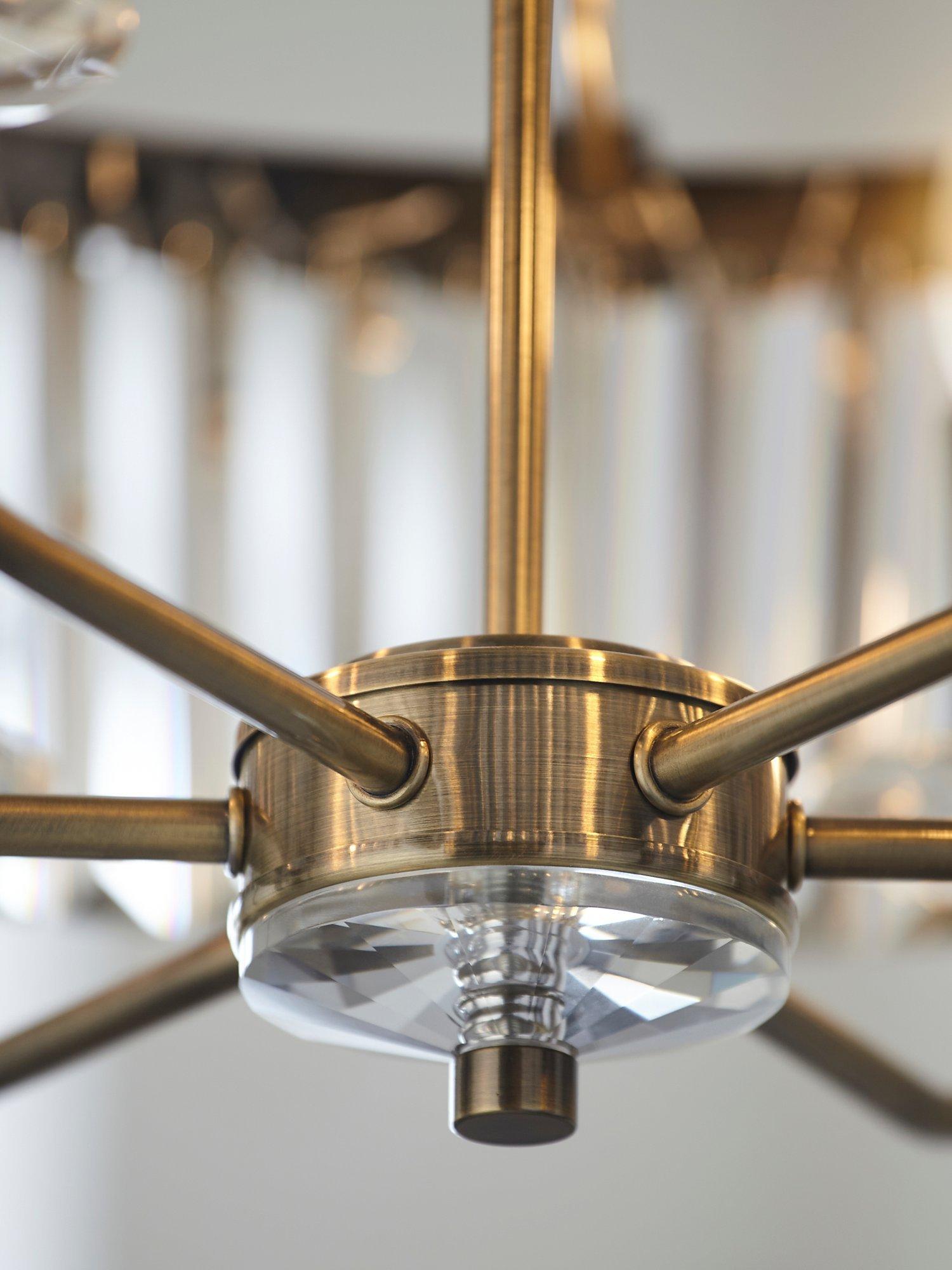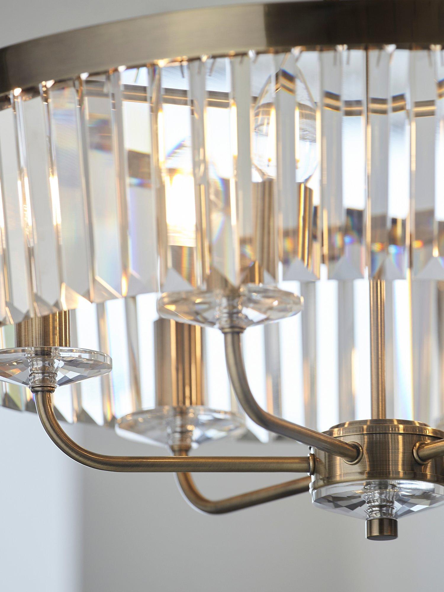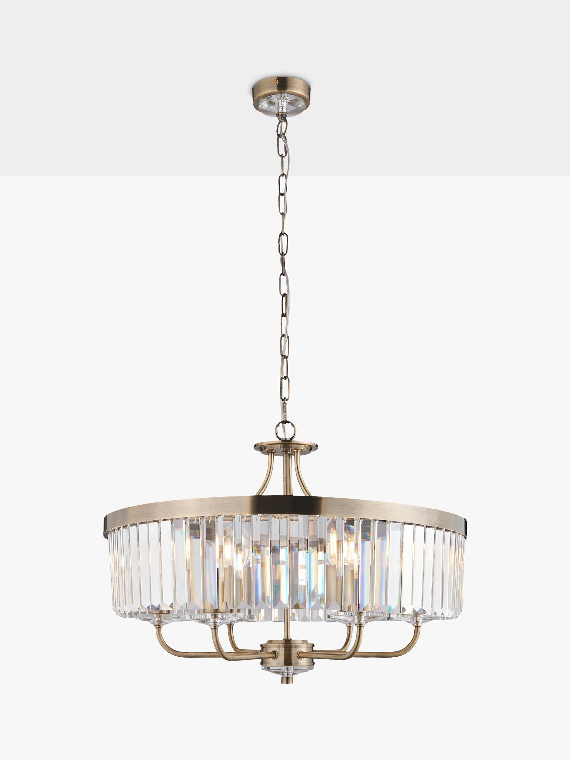 Style your home with this ceiling light finished with decorative, clear cut faceted glass. A striking pattern is created from this light and the warming tone of the antique brass metalwork compliments the glass to create a stunning centerpiece.
