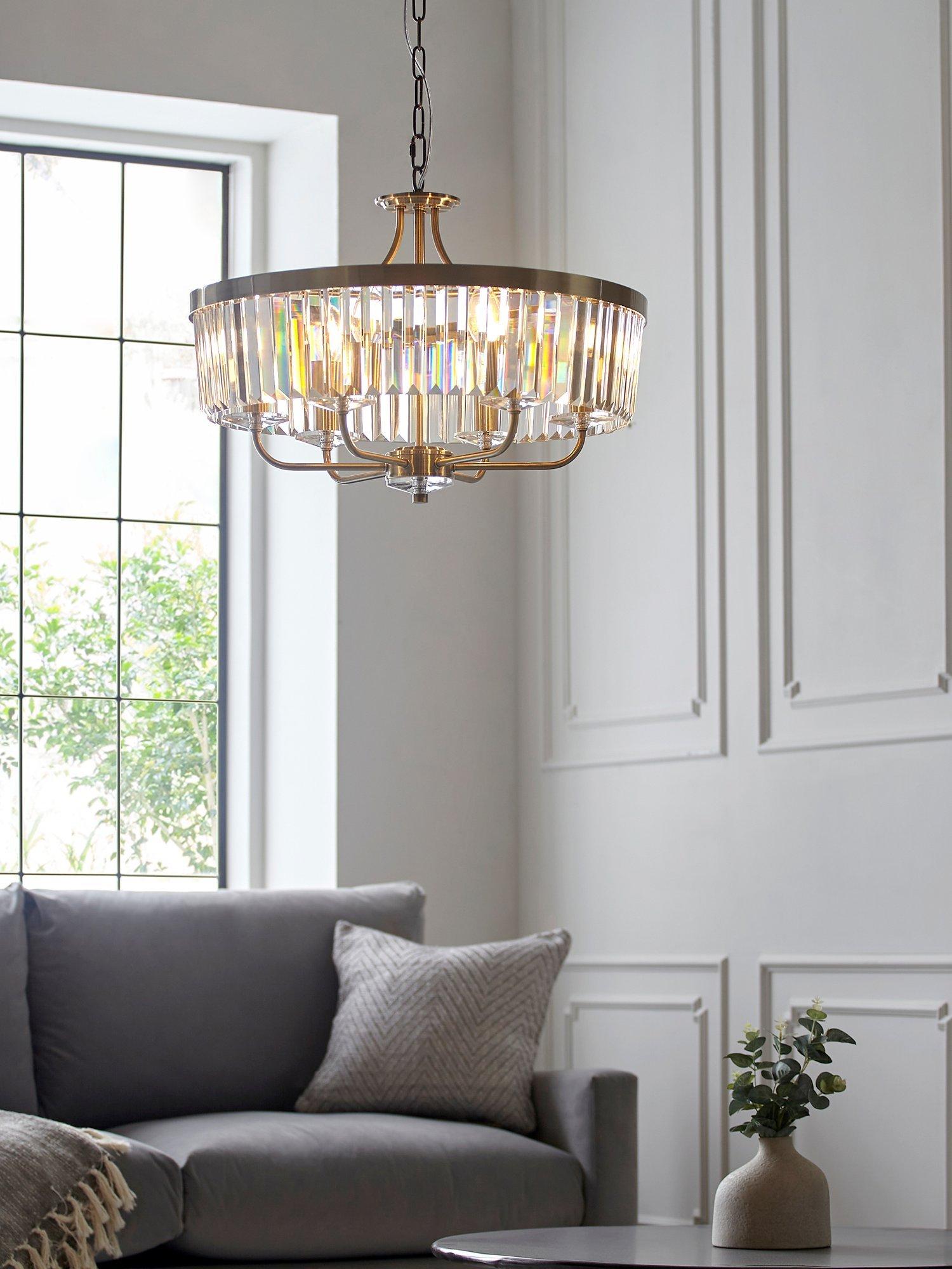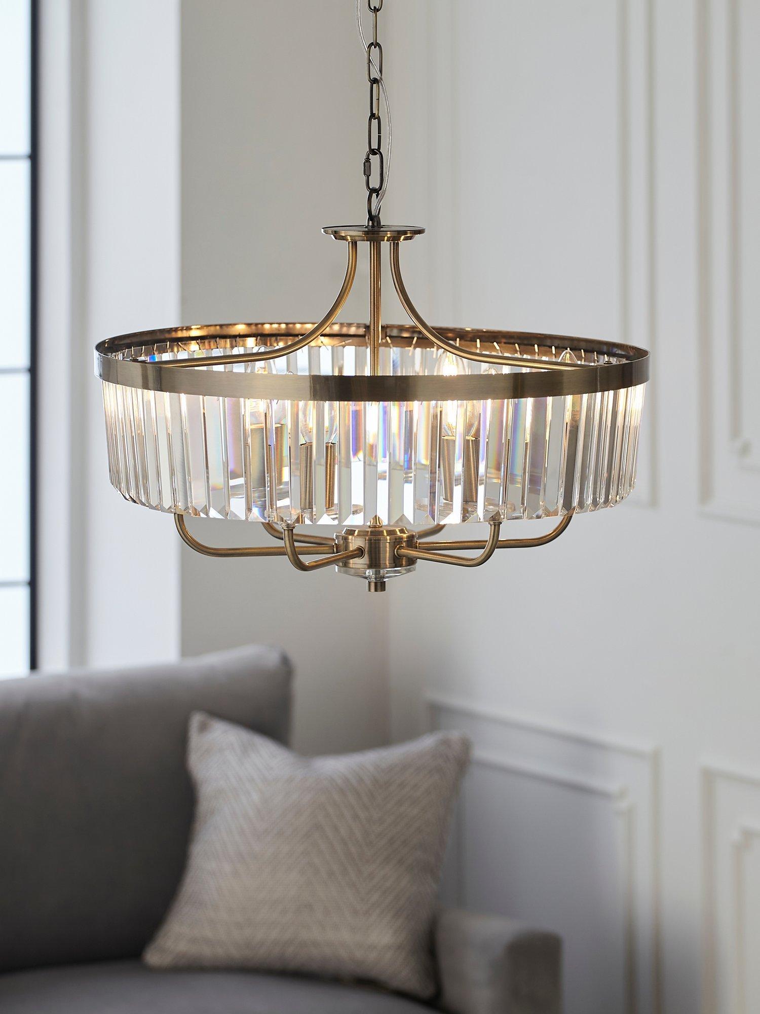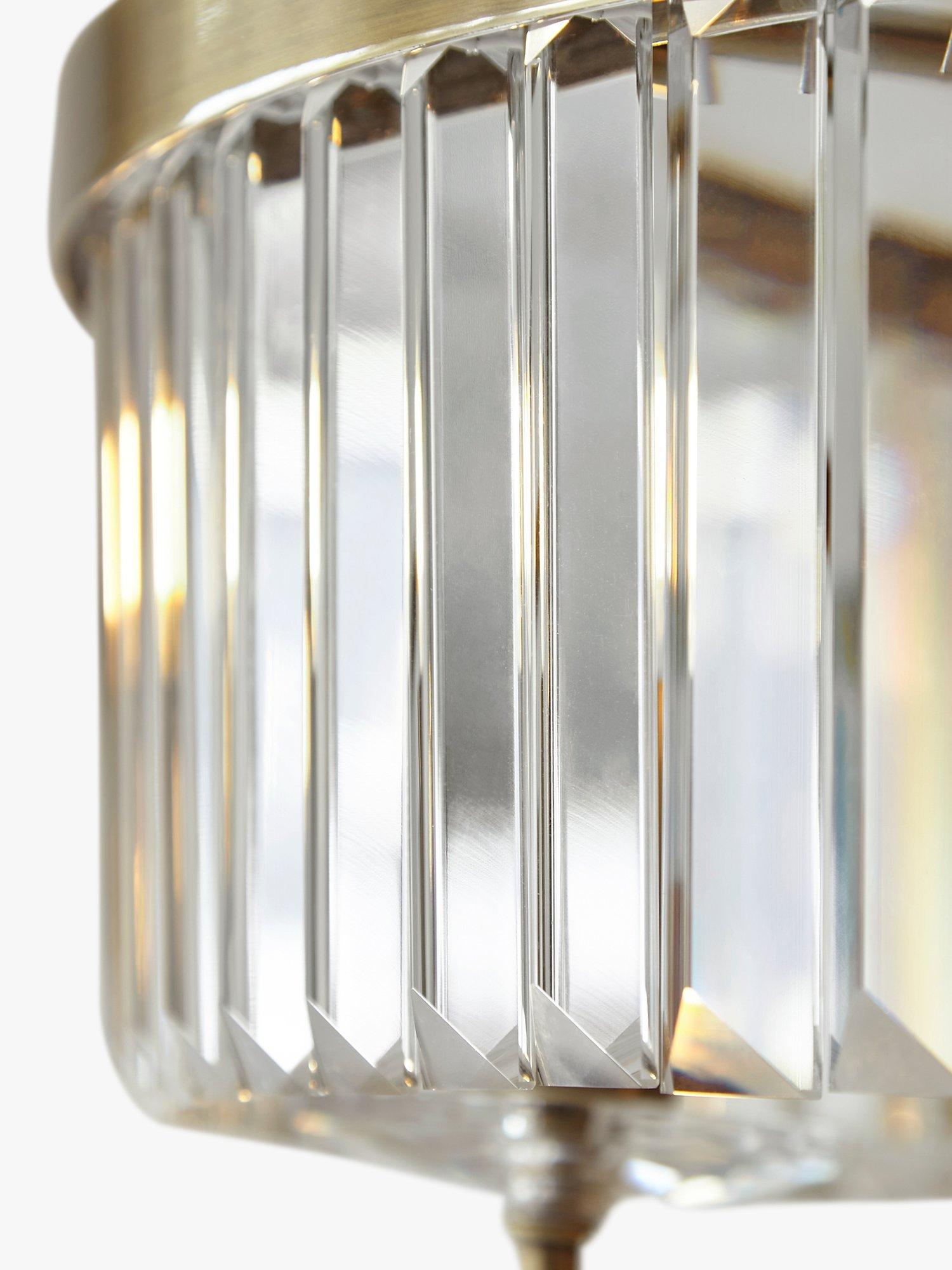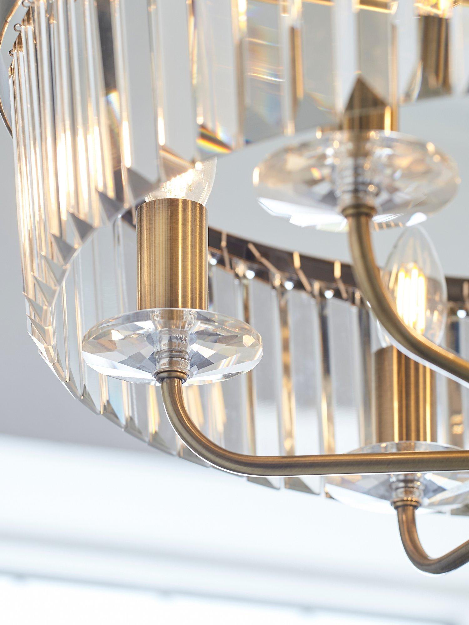 Style your home with this ceiling light finished with decorative, clear cut faceted glass. A striking pattern is created from this light and the warming tone of the antique brass metalwork compliments the glass to create a stunning centerpiece.