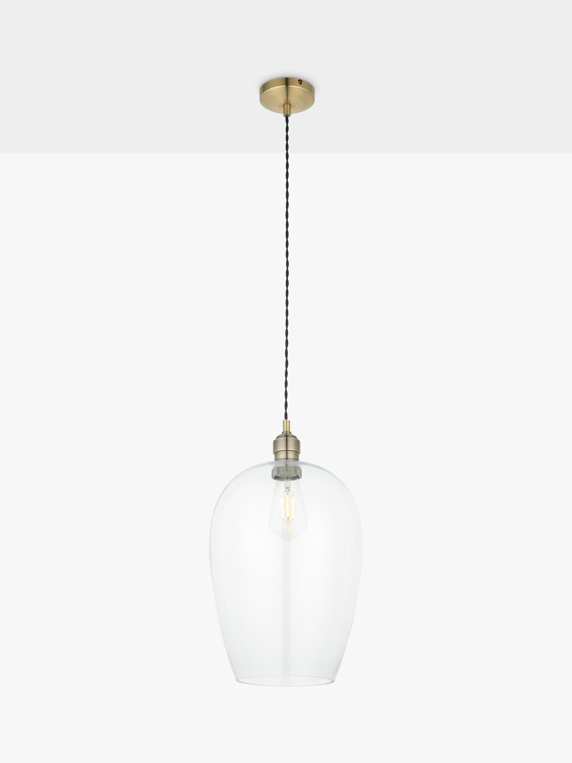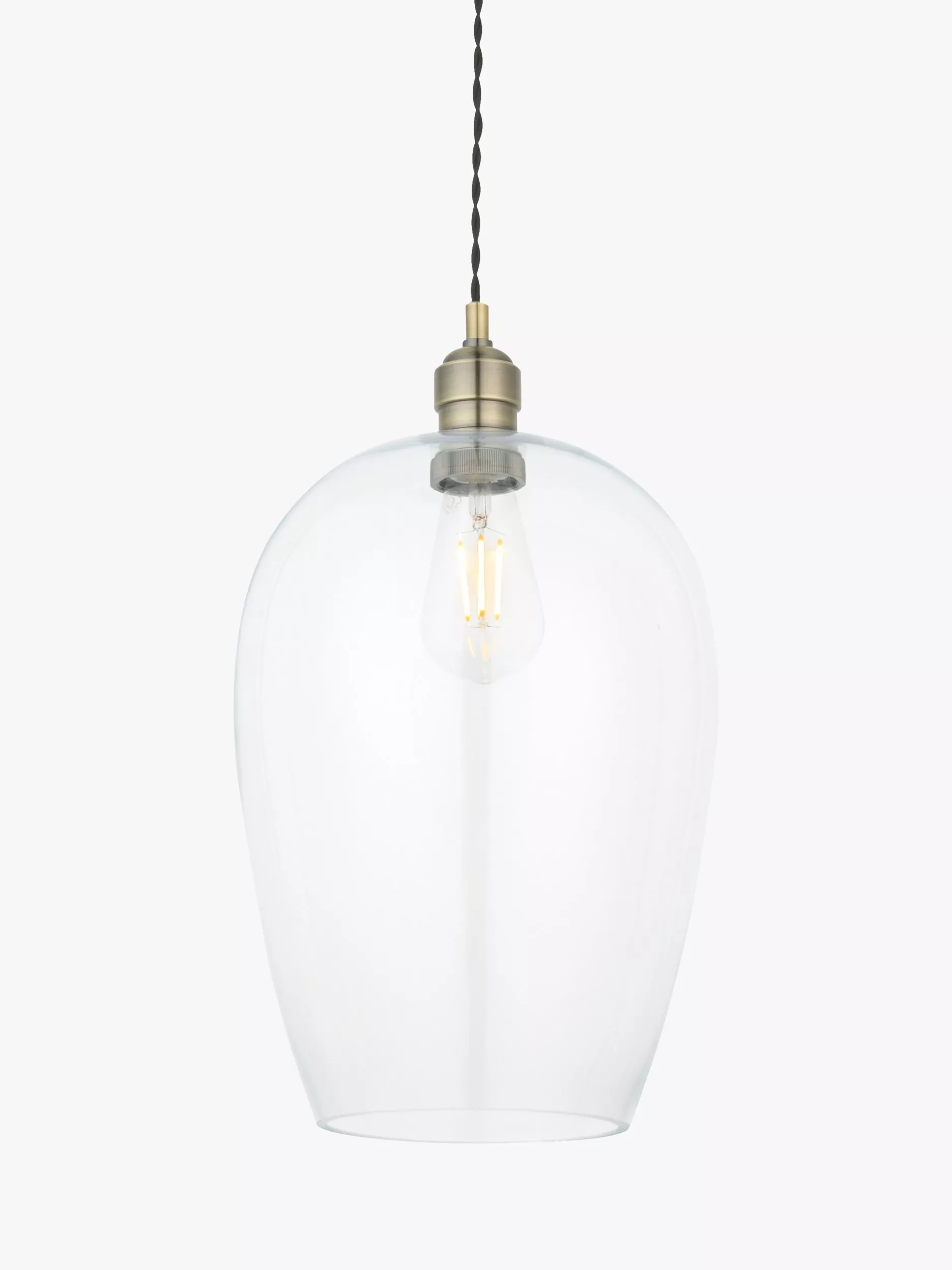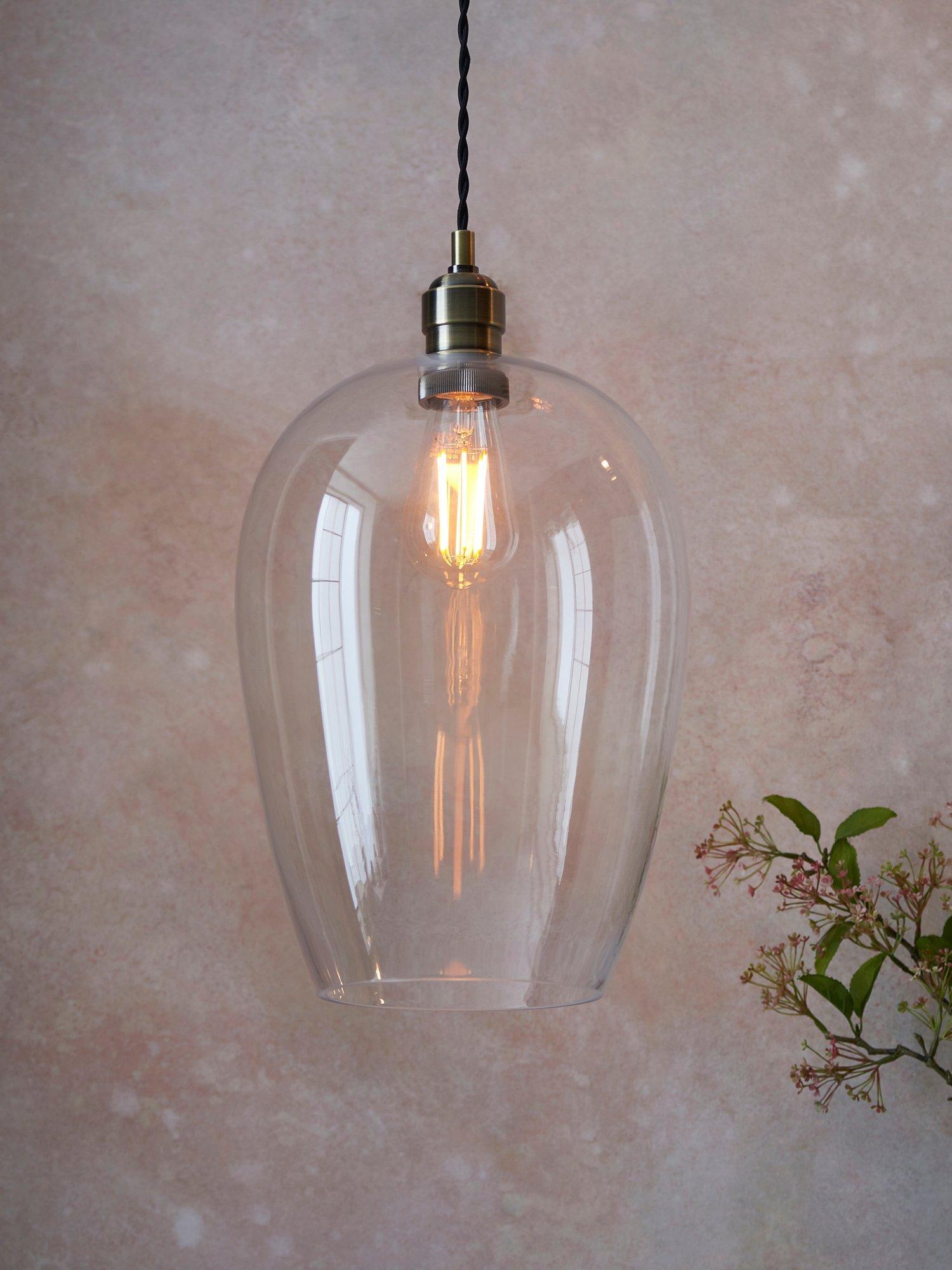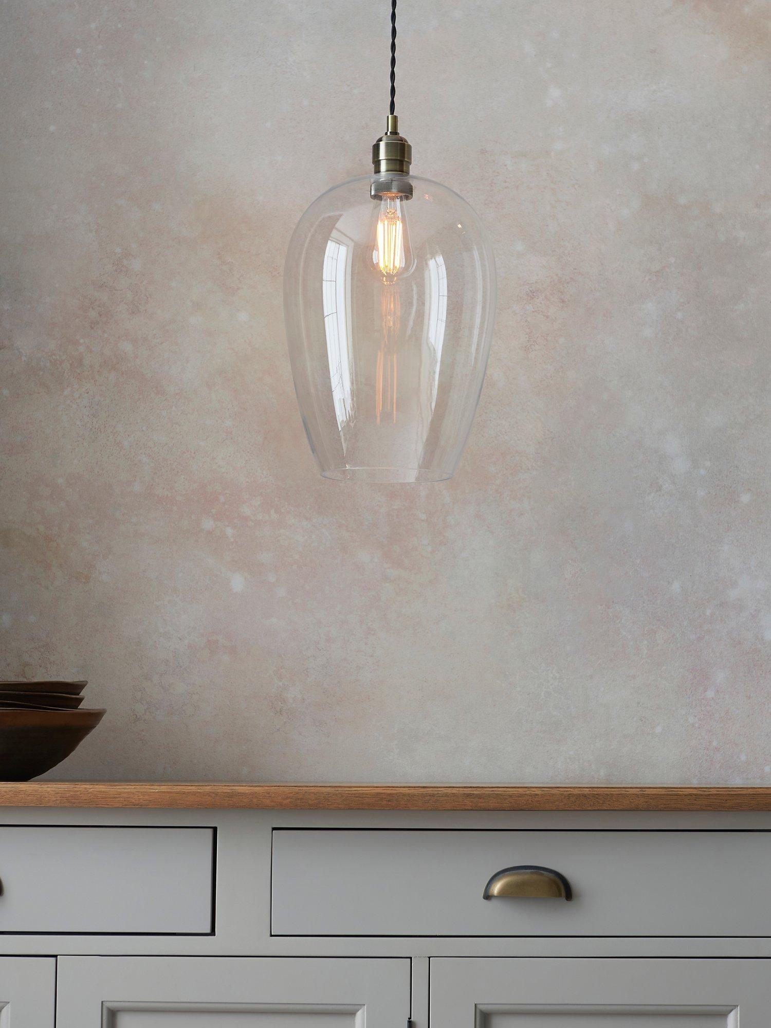 This versatile, smooth glass pendant light is able to blend in with minimal and modern styling as well as more traditional designs. The quality of this ceiling light is shown in the detailed finished metalwork.