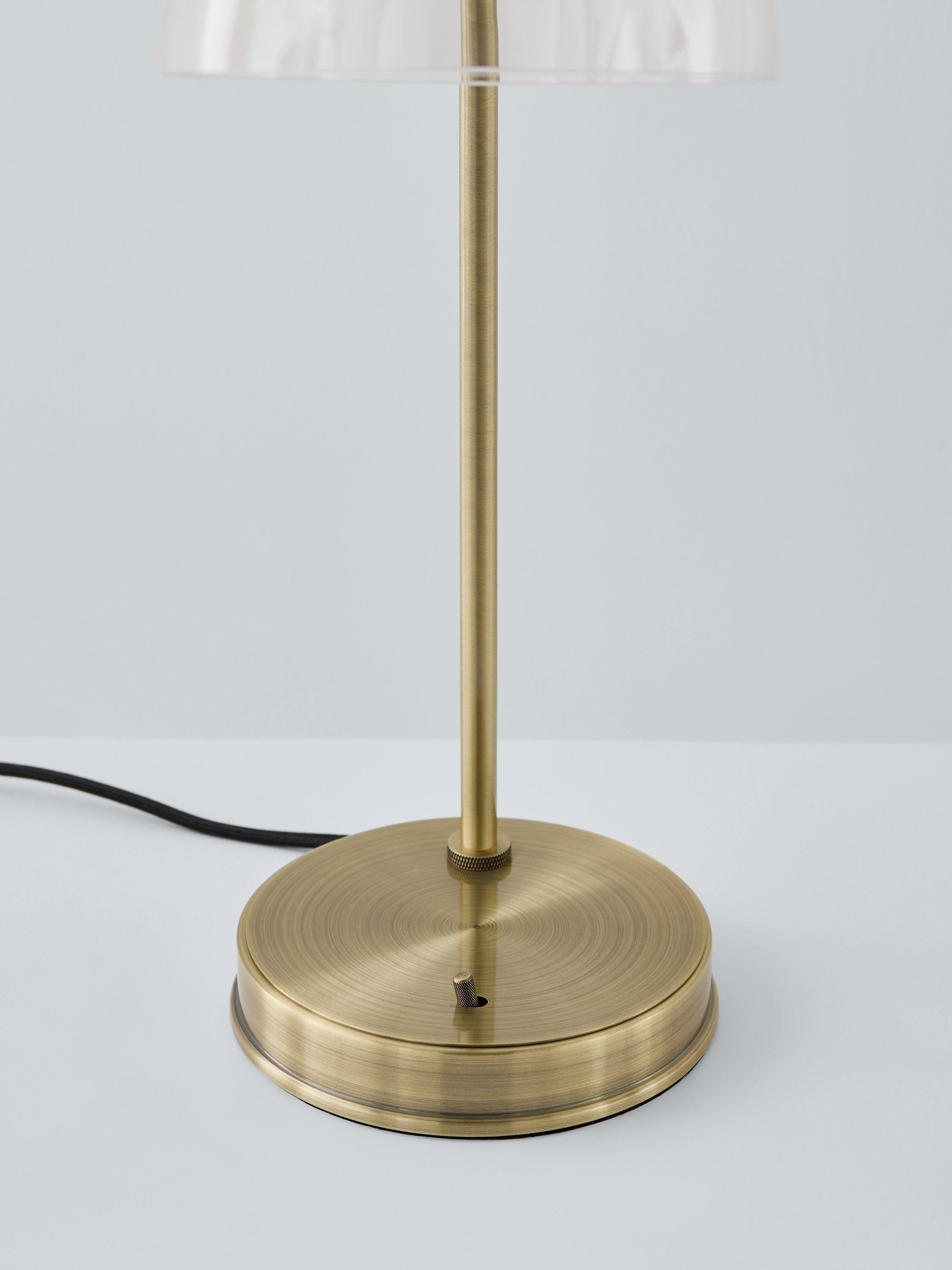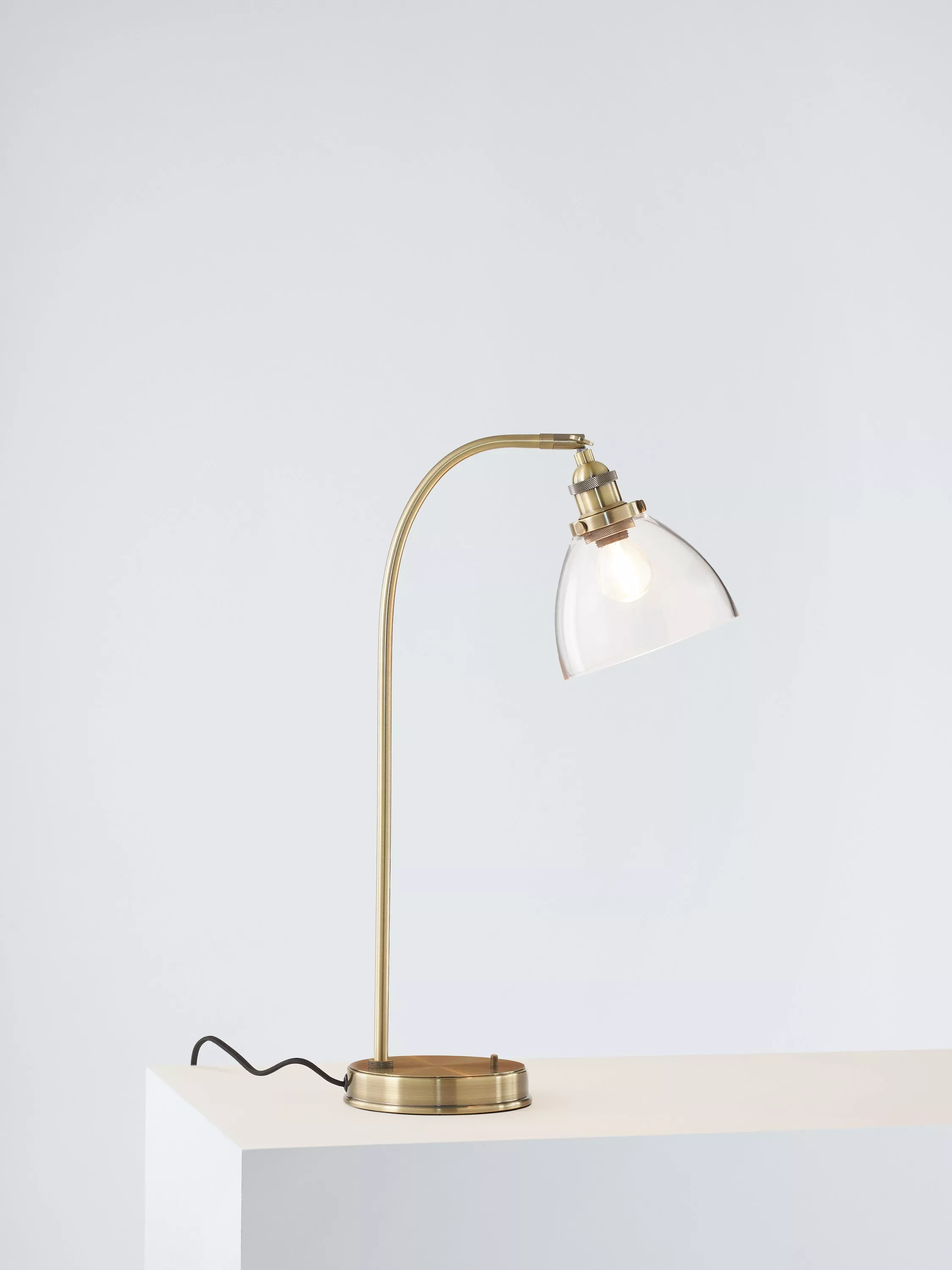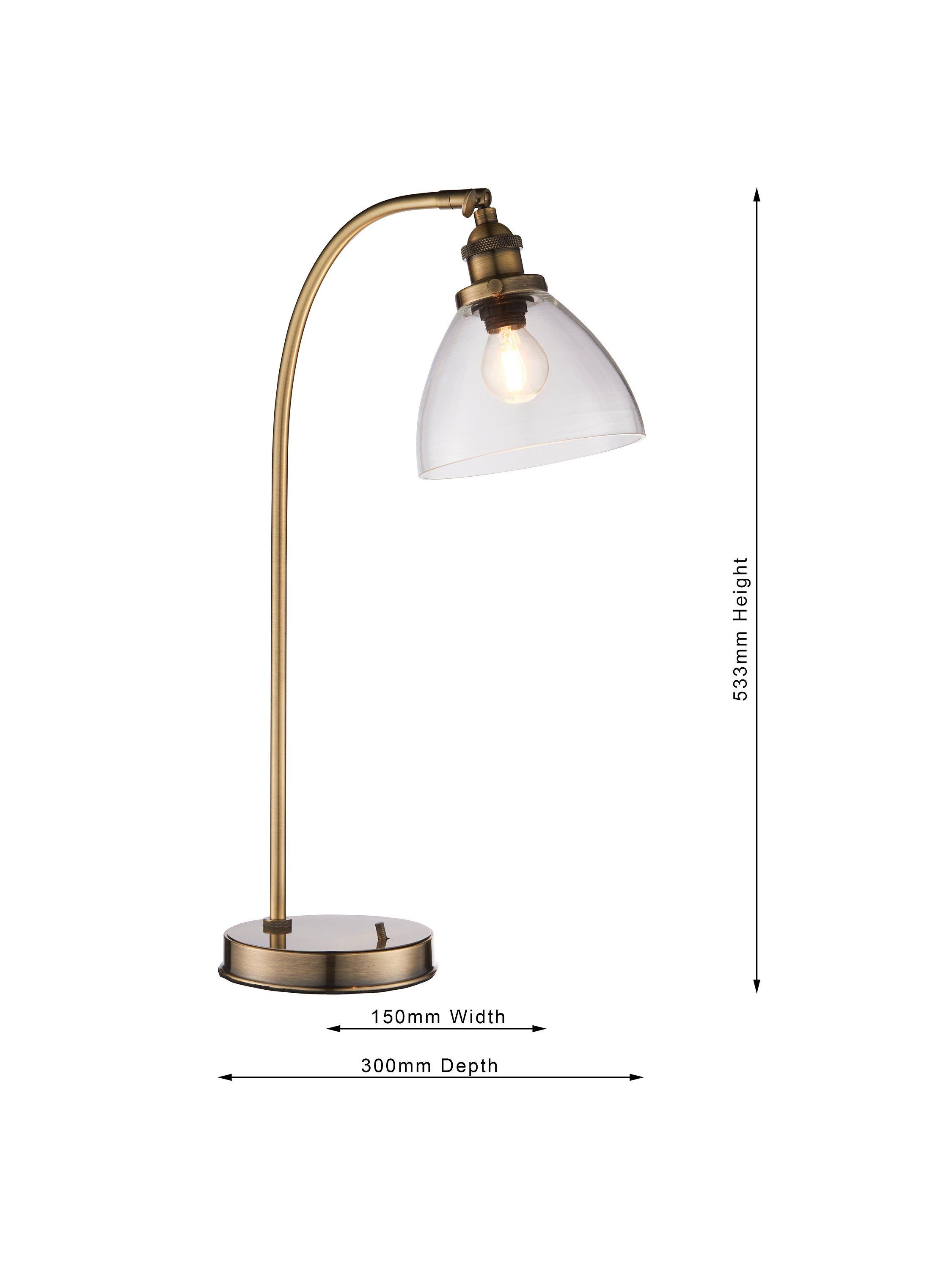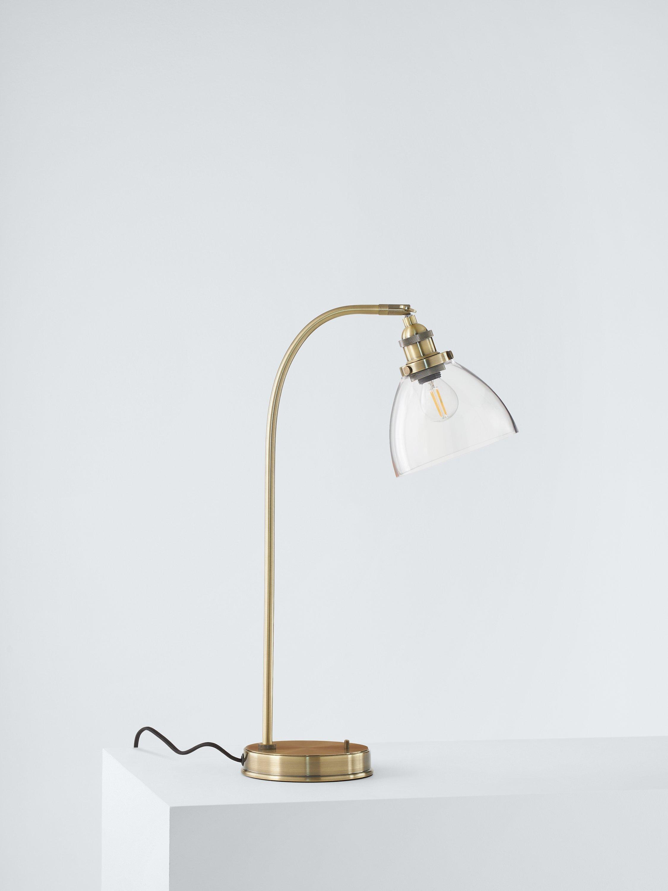 This functional desk lamp provides a warm wash of light exactly where you need it thanks to its adjustable head. With its combination of brushed, aged or antique finished metal and a dome-shaped, clear glass shade, it has a soft, industrial aesthetic and is best paired with an LED filament bulb. The on/off toggle switch ensures easy operation making it ideal for your desk at home.