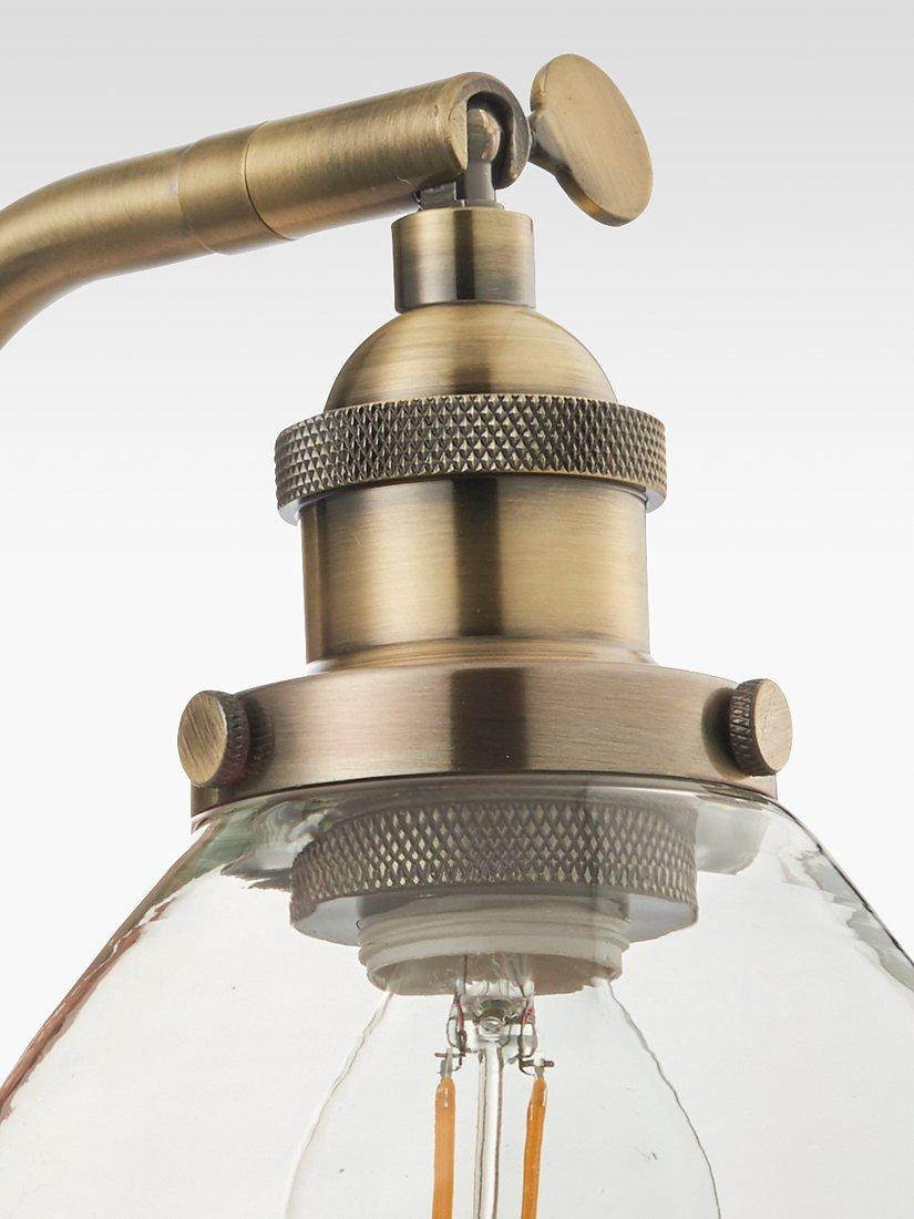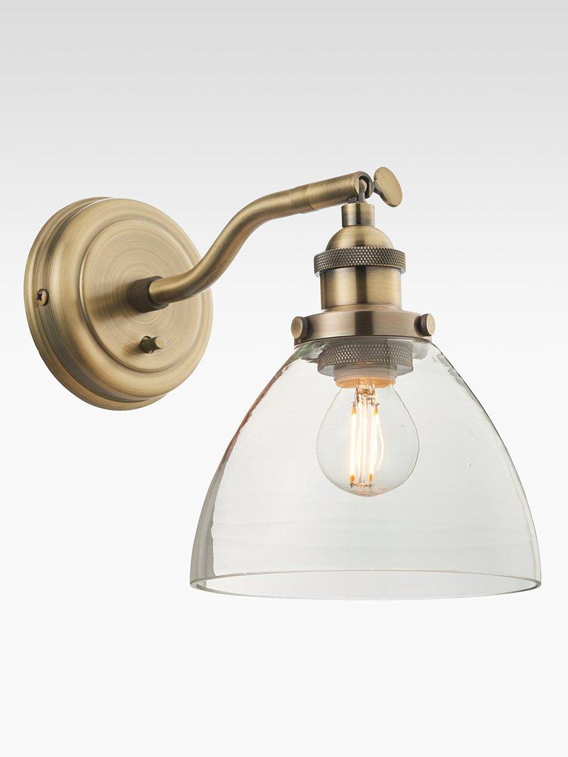 Made from sturdy steel with a dome-shaped, clear glass shade, this wall light has a soft, industrial aesthetic. The head is adjustable so you can direct light where you need it and it's best paired with an LED filament bulb to enhance a restorative look in your home. The Matt Nickel option has a brushed finish and the Brass option has an Antique finish.