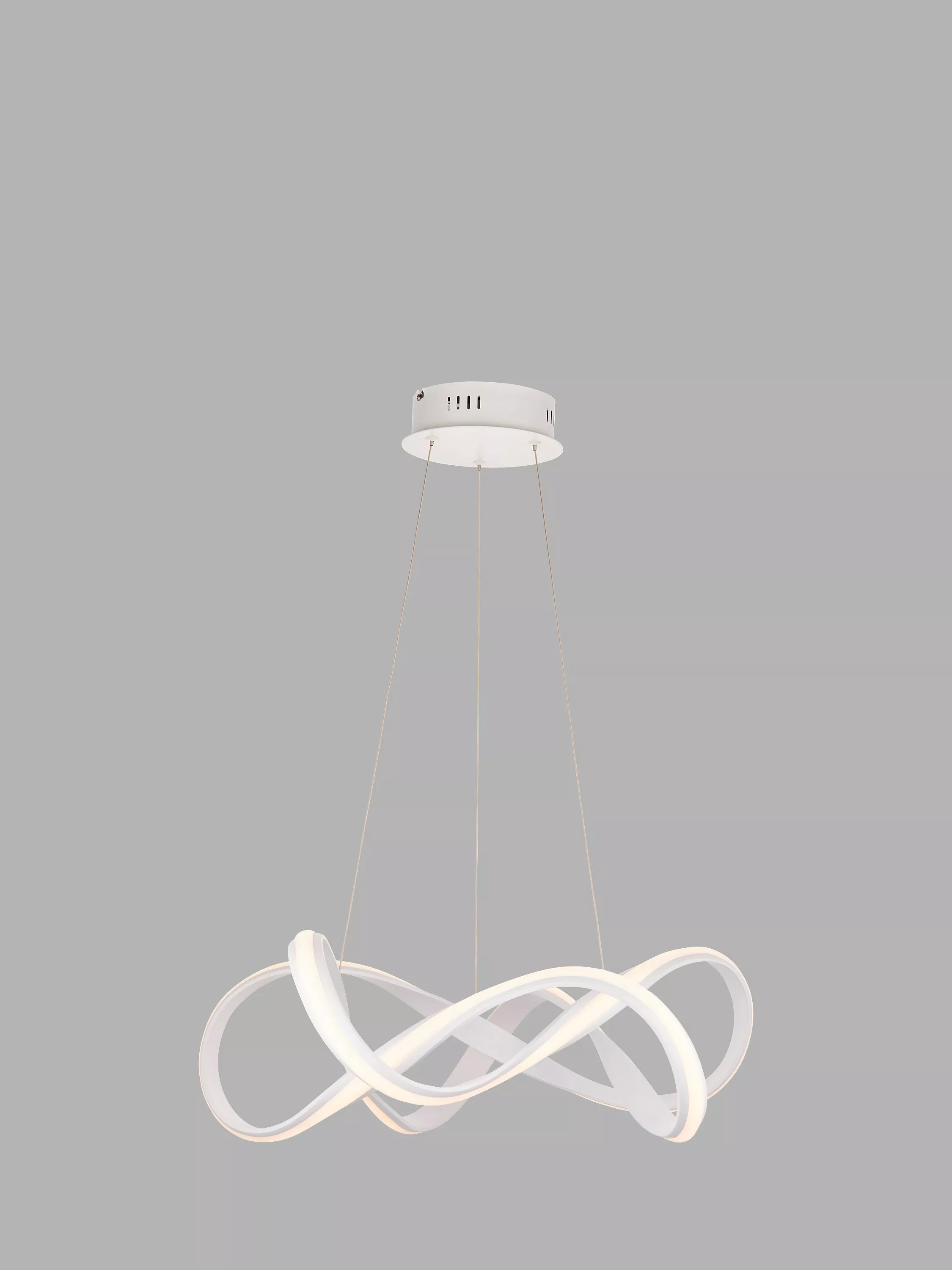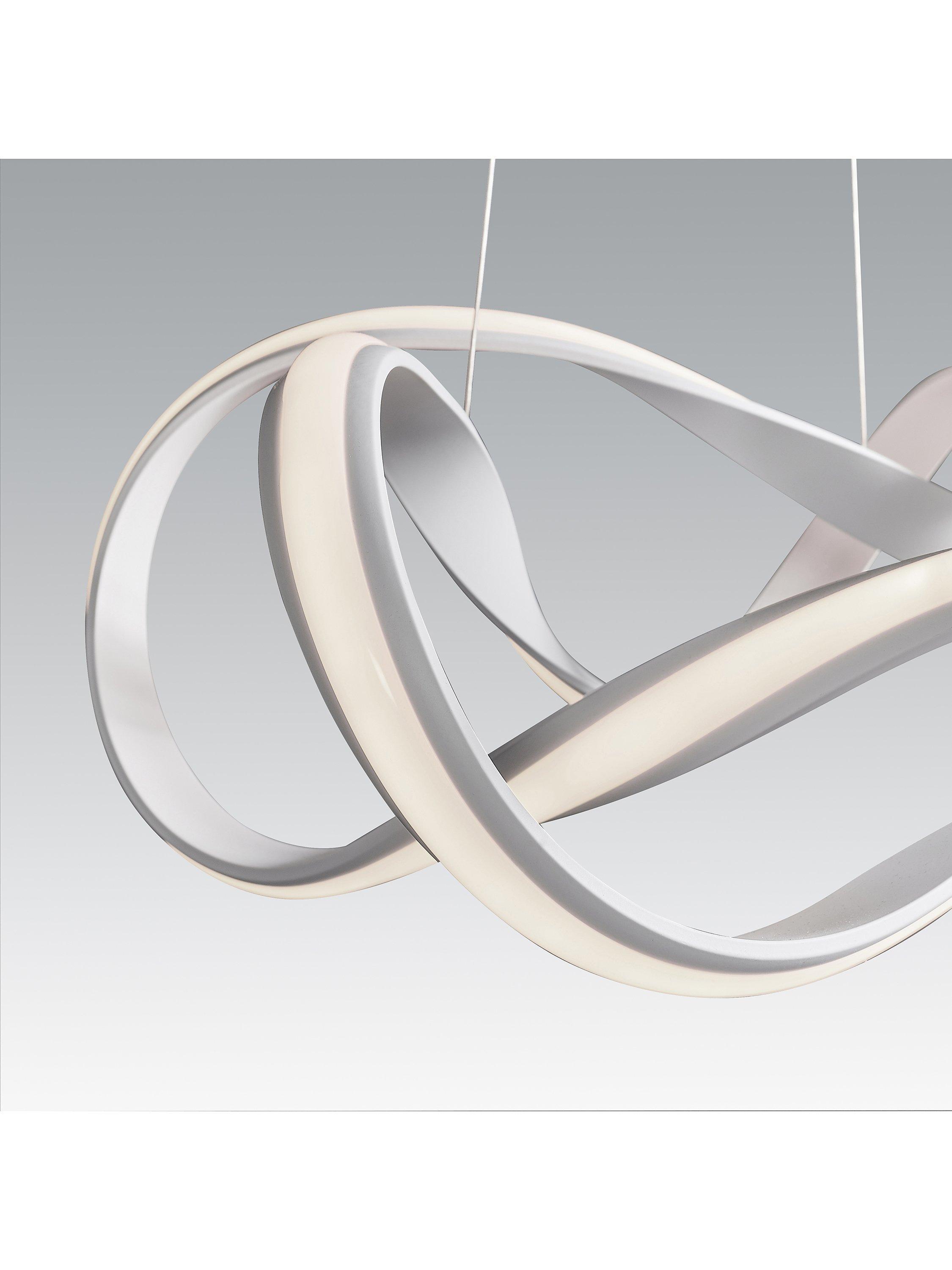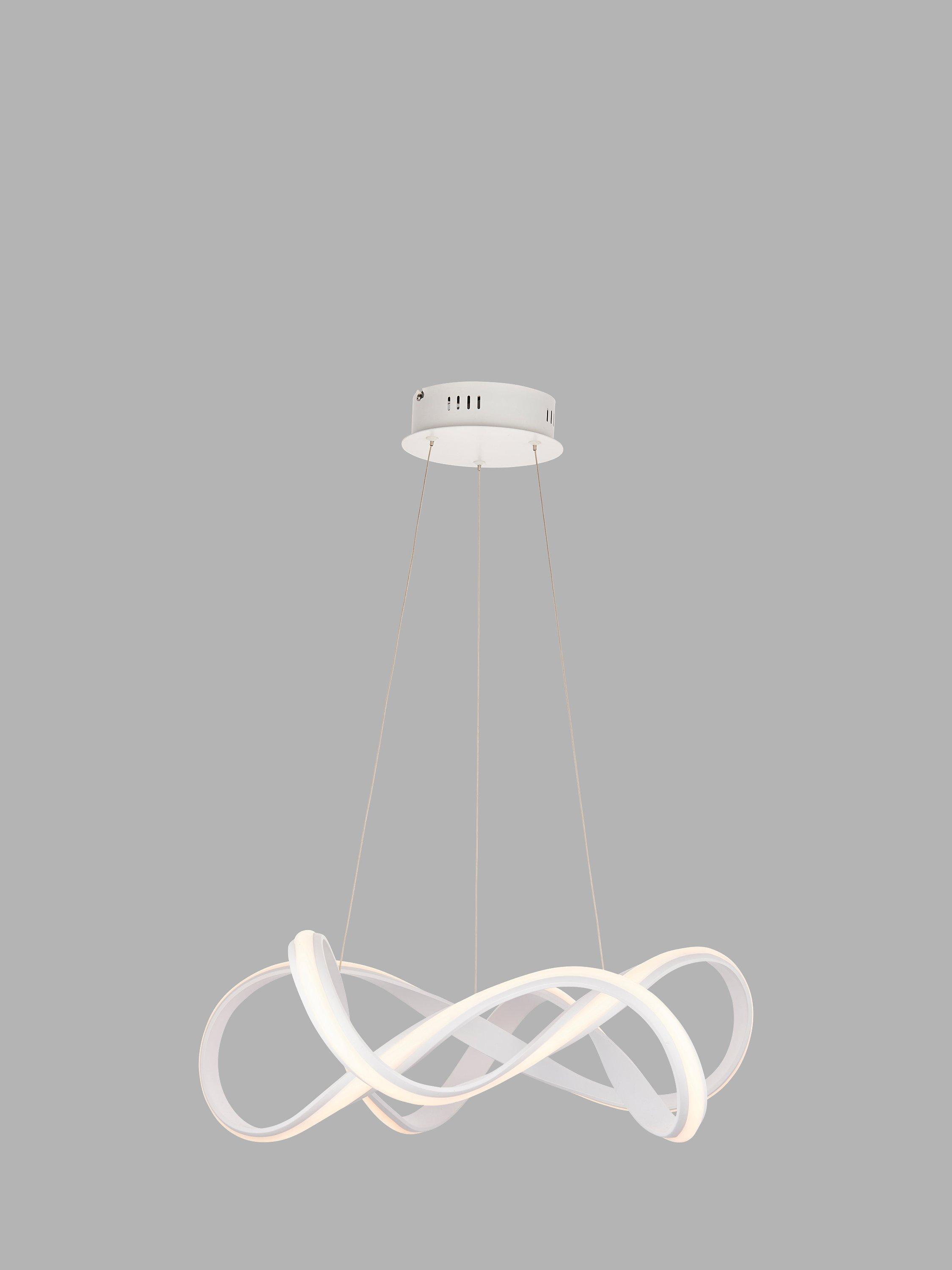 In a contemporary, fluid shape, this ceiling light will draw the eye in your space. It's suspended from subtle, height-adjustable wires and features a powerful integrated LED that provides a bright glow of light. Complete with a diffuser to soften the light output and available in two finishes.