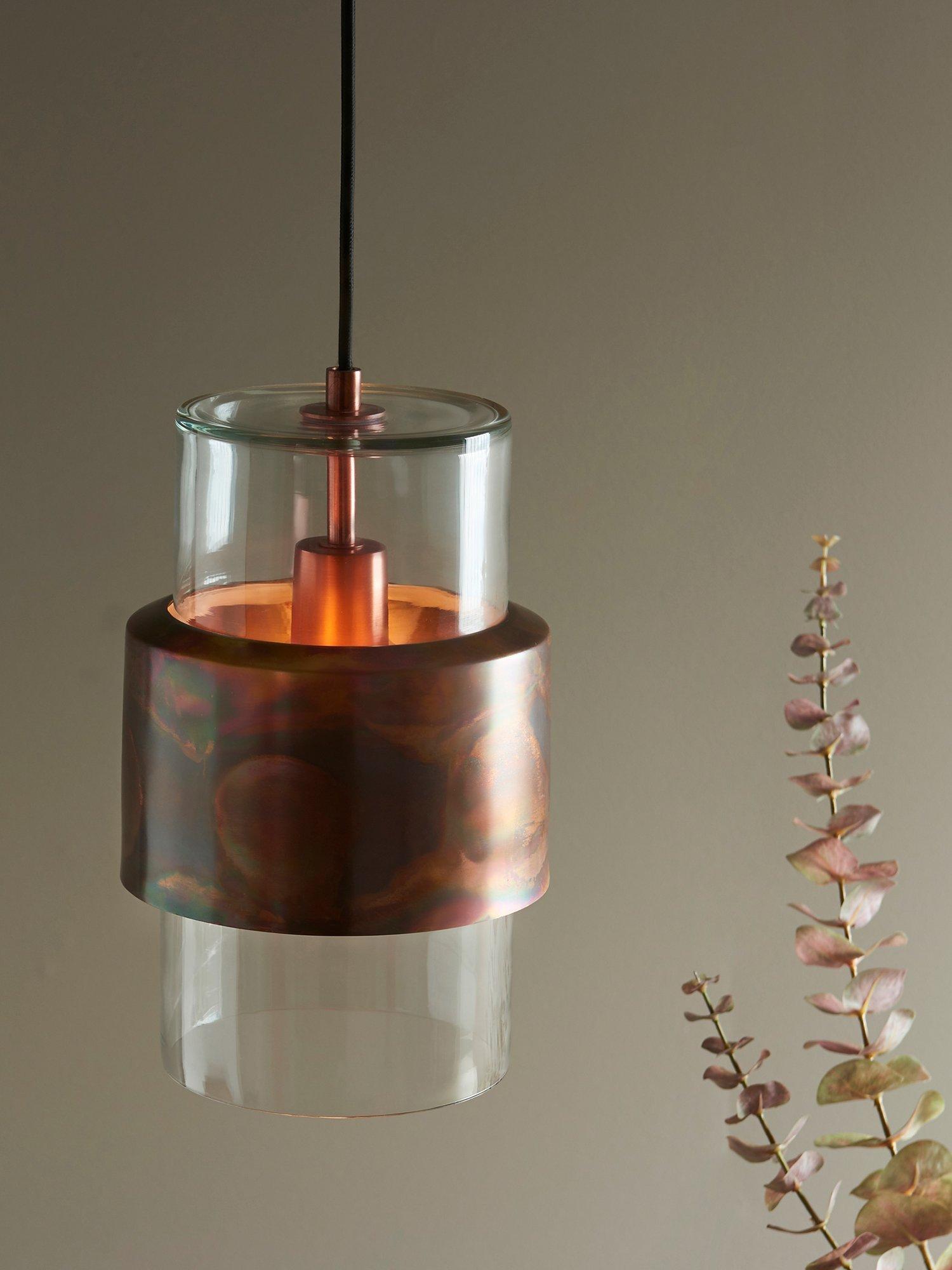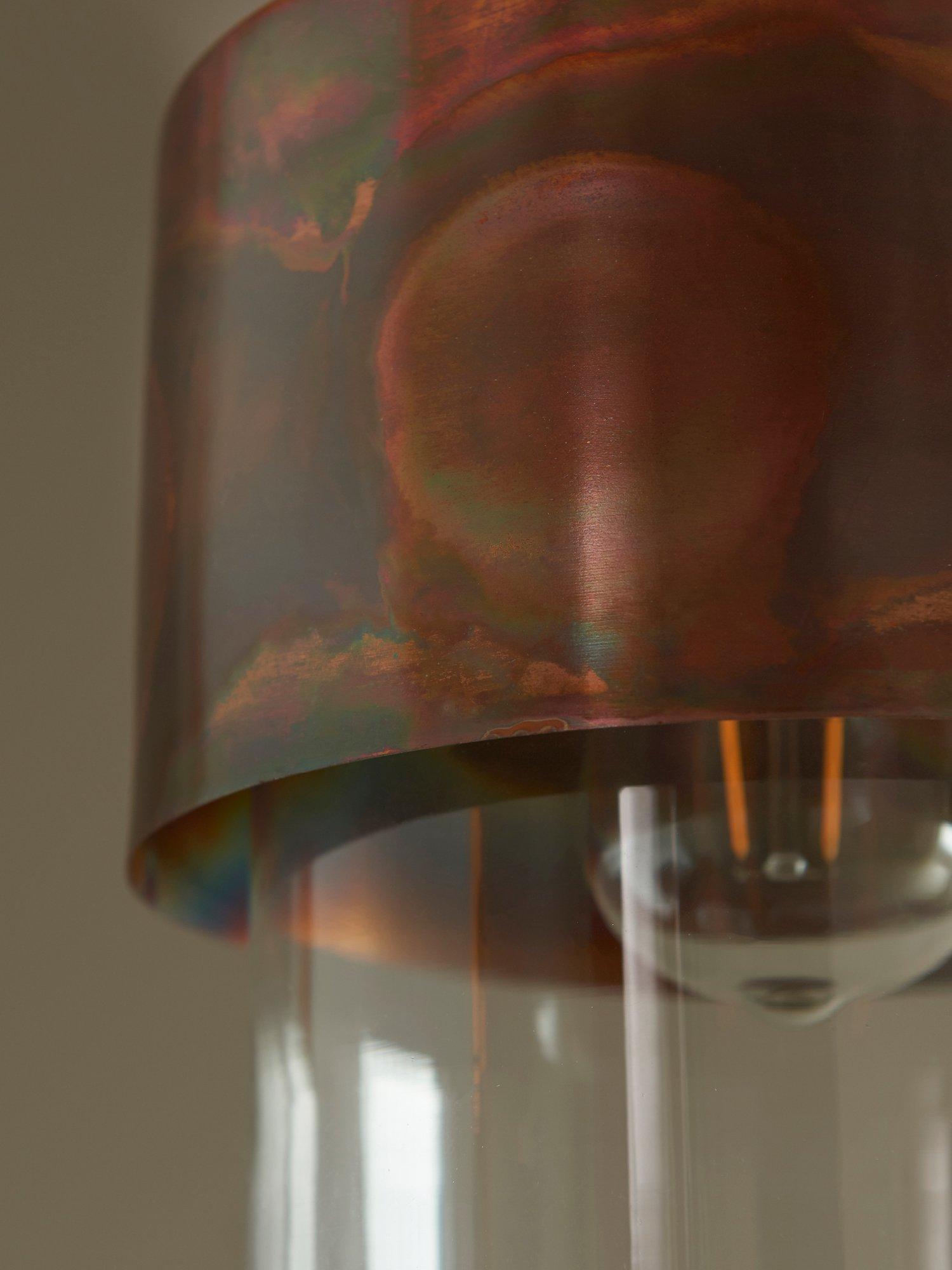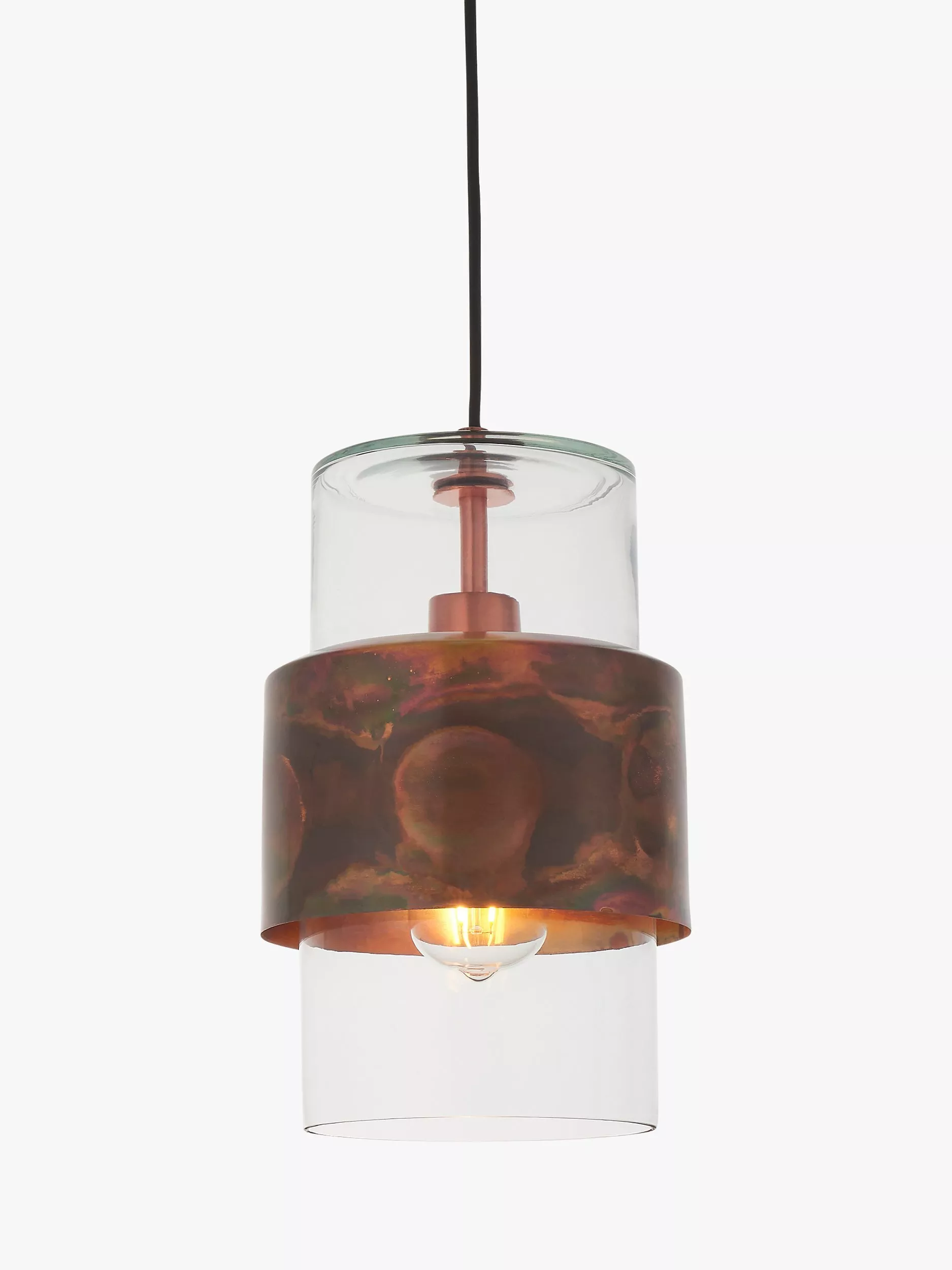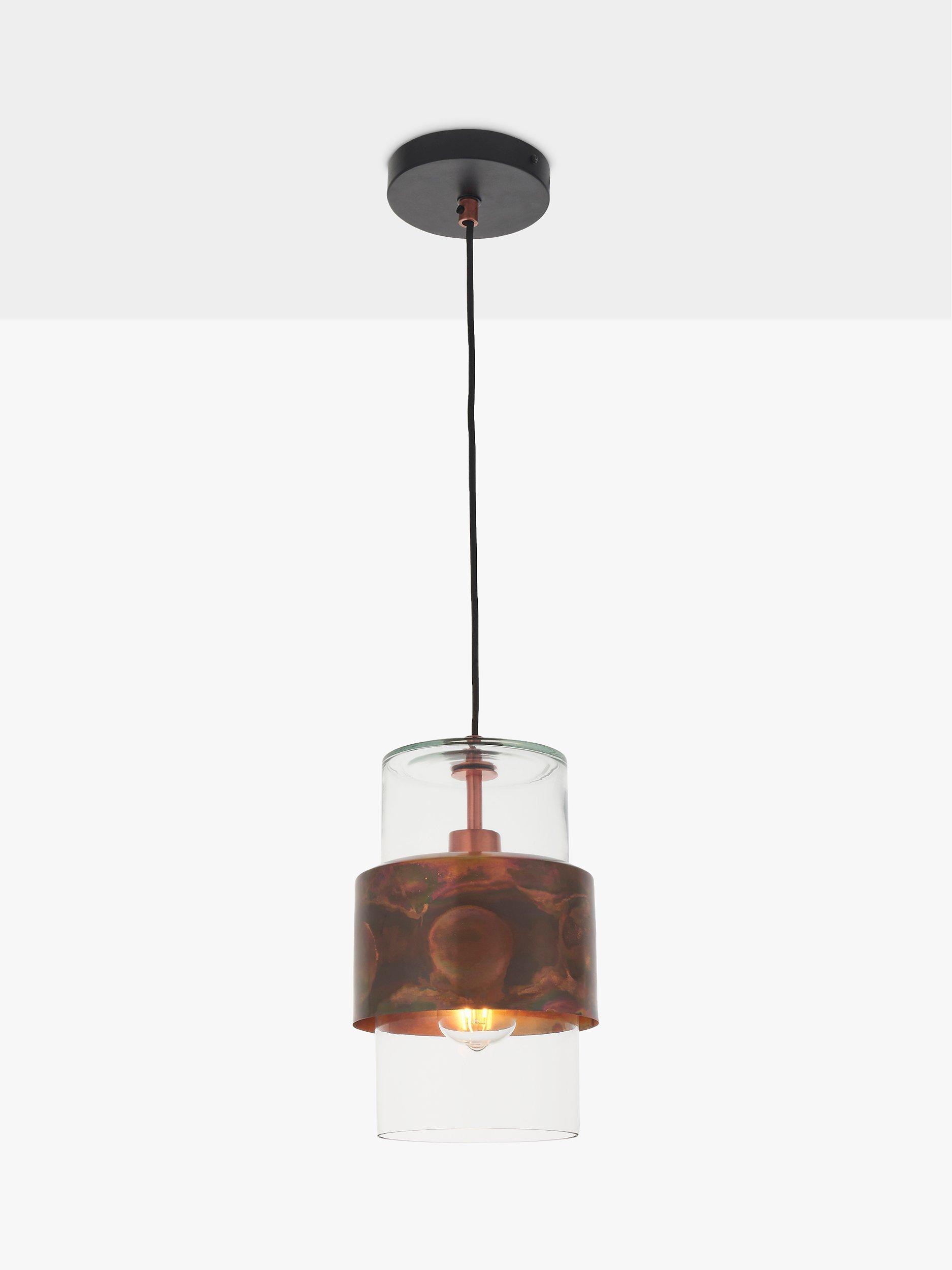 Bring the beauty of patina into your home with this single bulb light. Constructed with a copper patina plate and clear glass, there is no shortage of detail to admire from this pendant light.