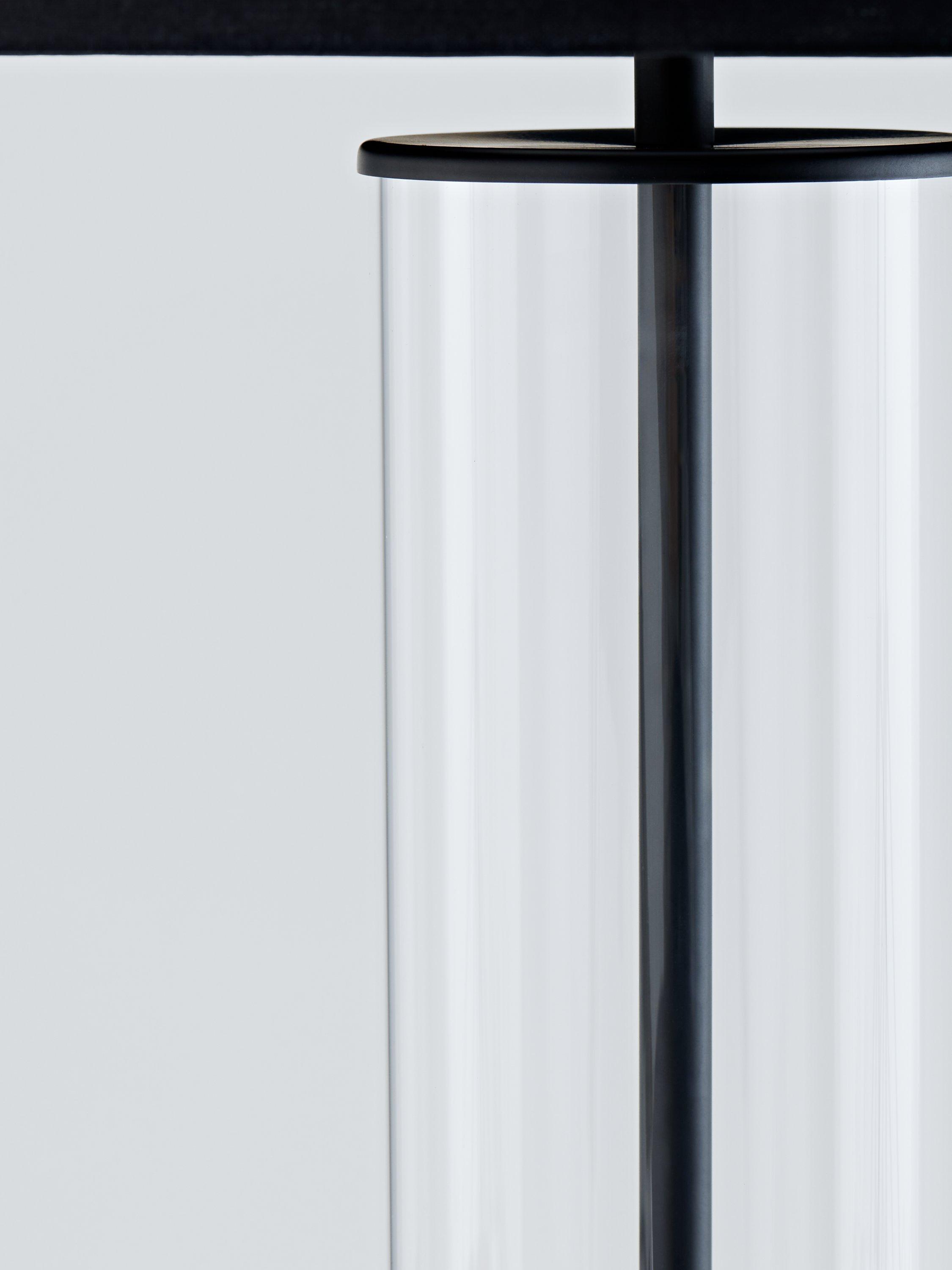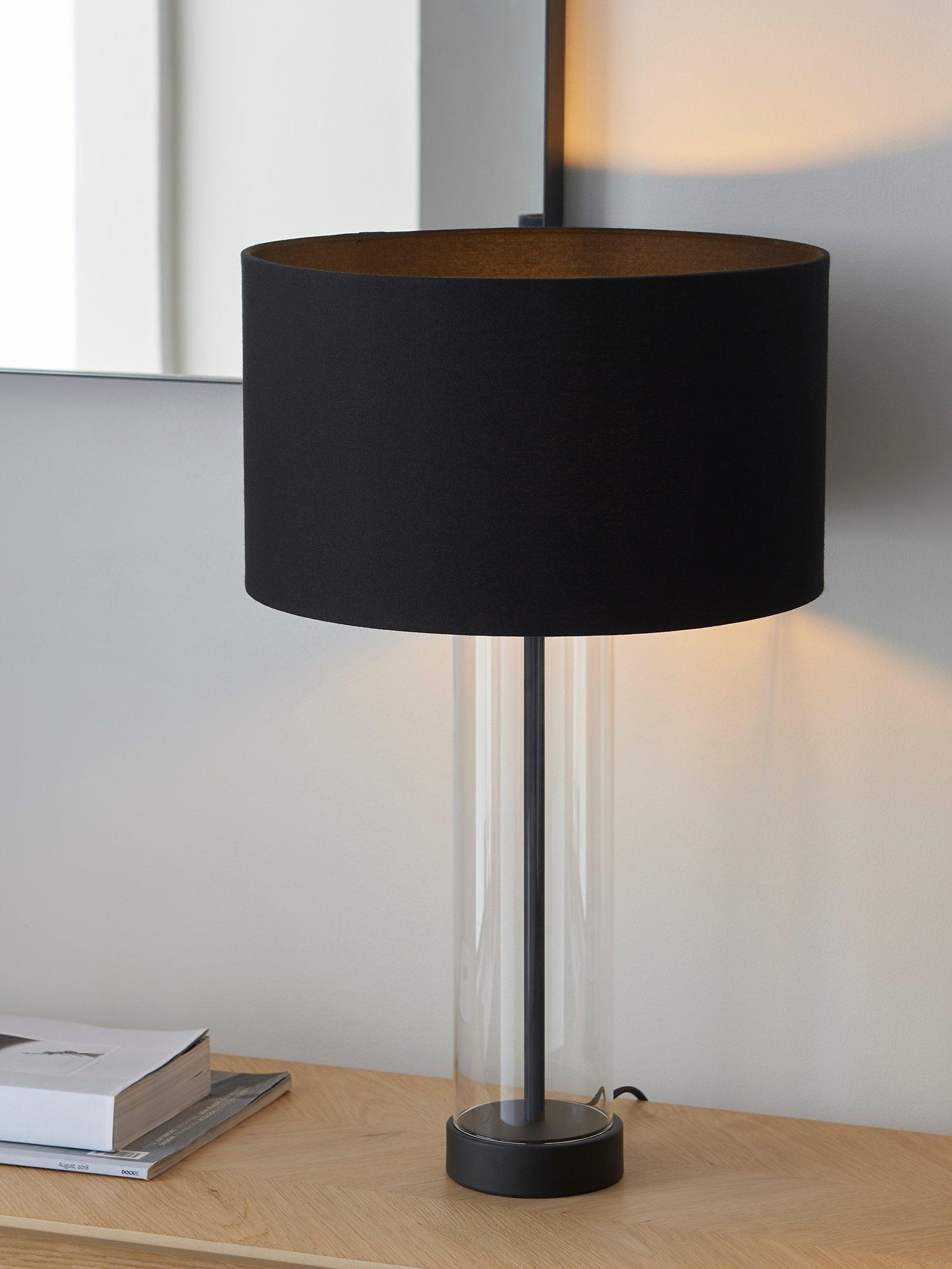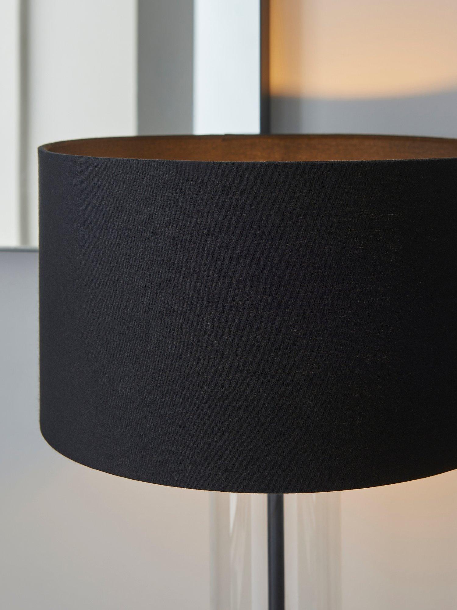 This table lamp is designed with a clever three-stage dimmer function, so you can enjoy a different light level throughout the day with a simple touch. The base is made from glass with a central metal stand and the fabric lampshade is has a faux silk effect for a premium finish.