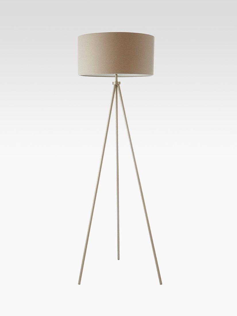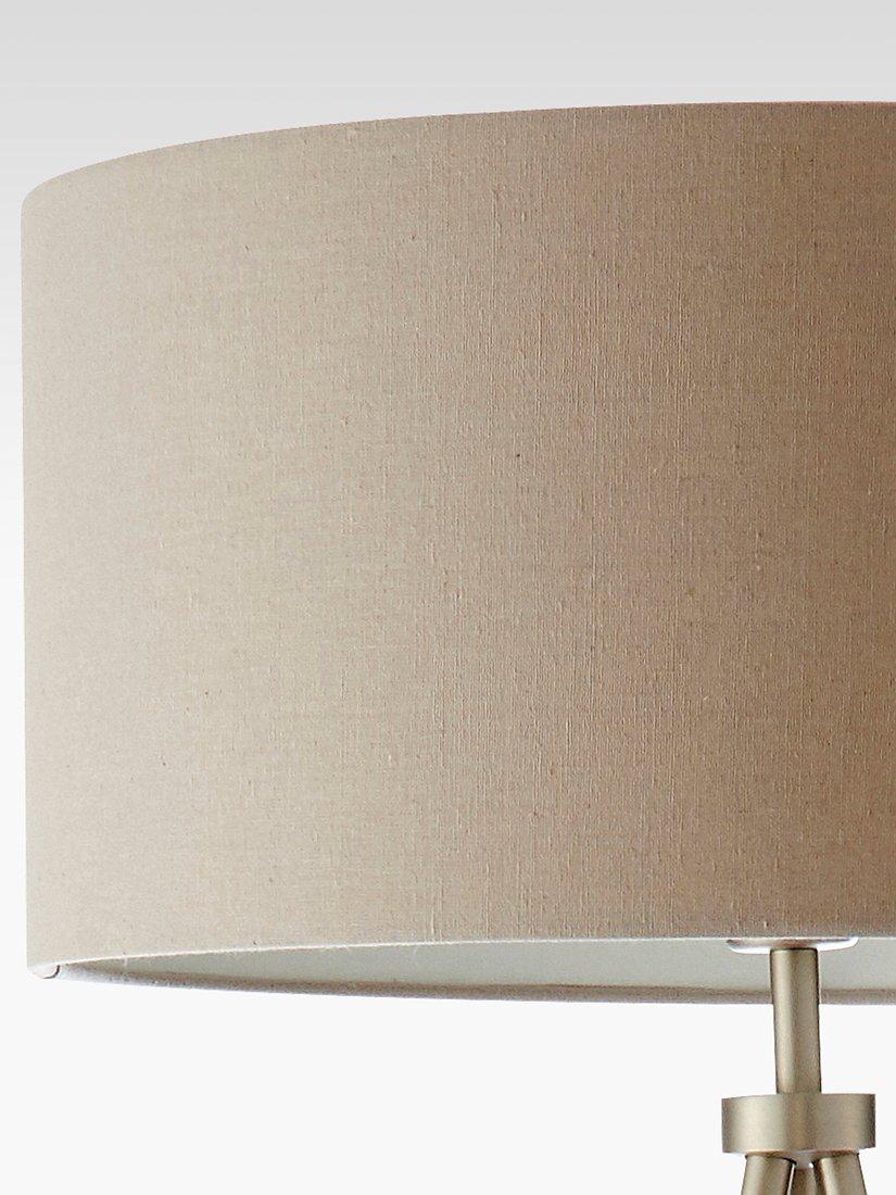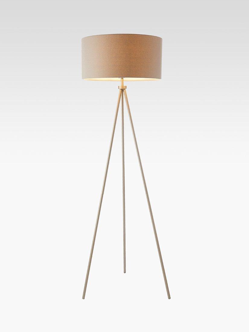 This stylish floor lamp has a minimalist, tripod stand, made from sturdy steel. It's paired with a linen-effect lampshade that enhances a warm glow of light.