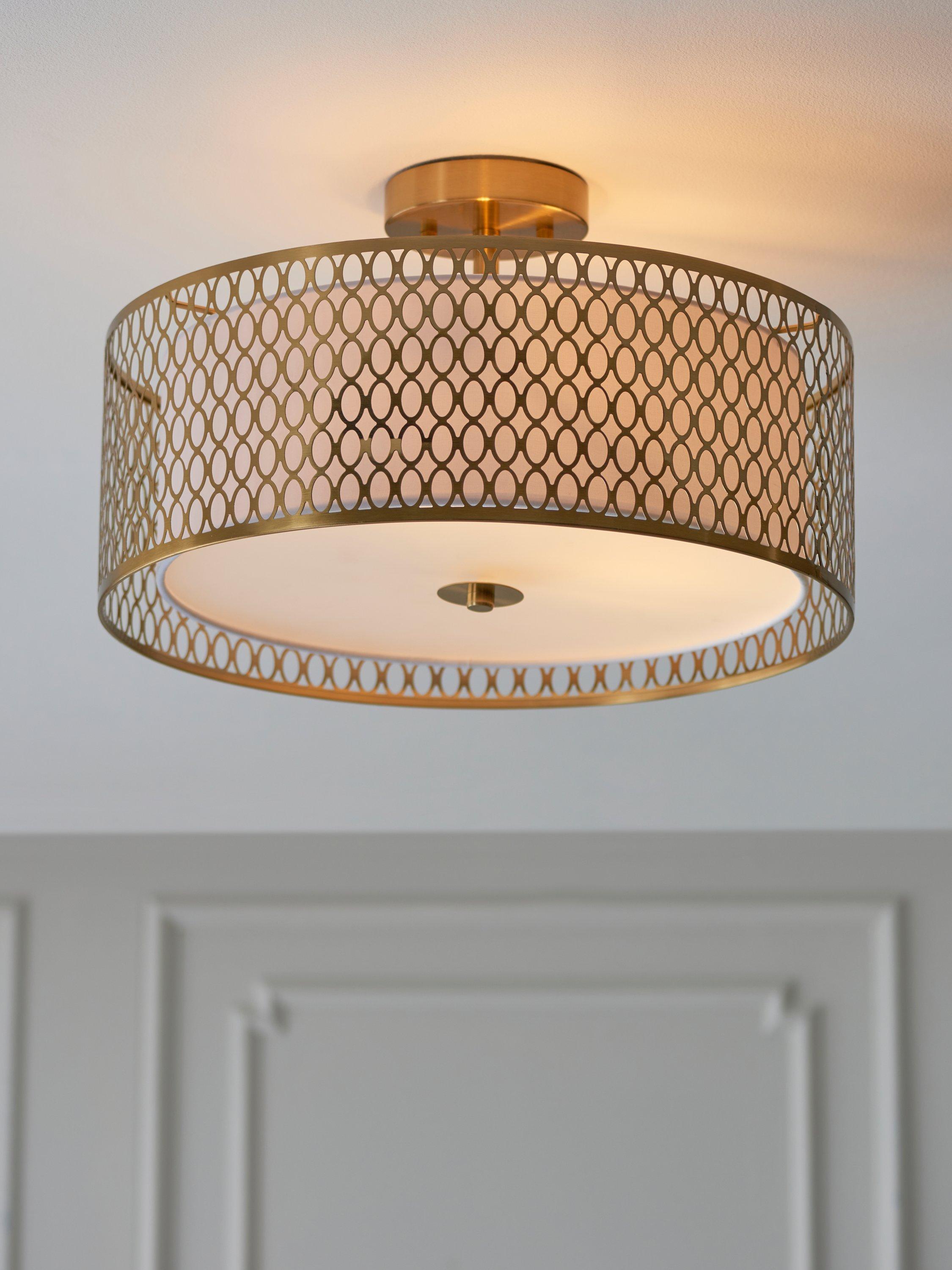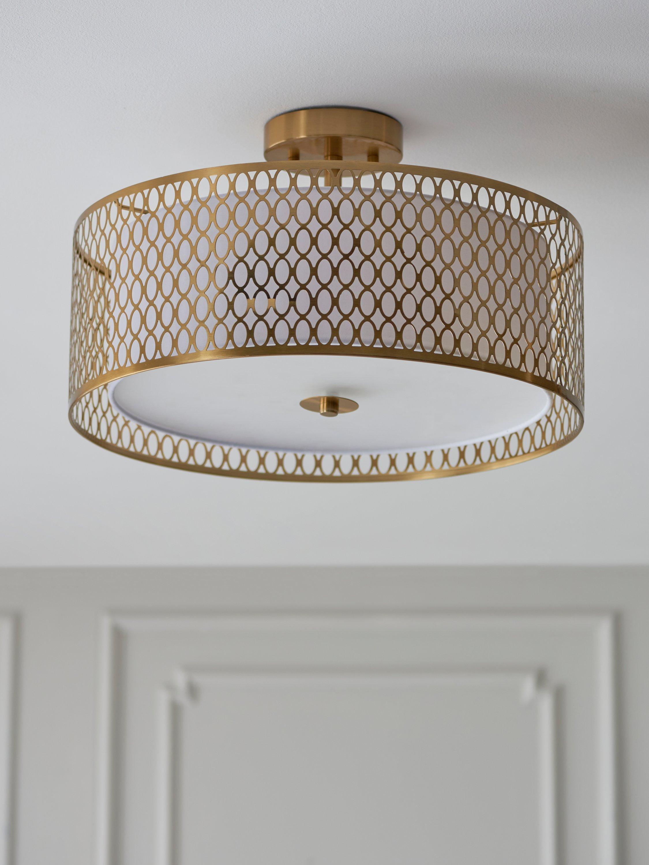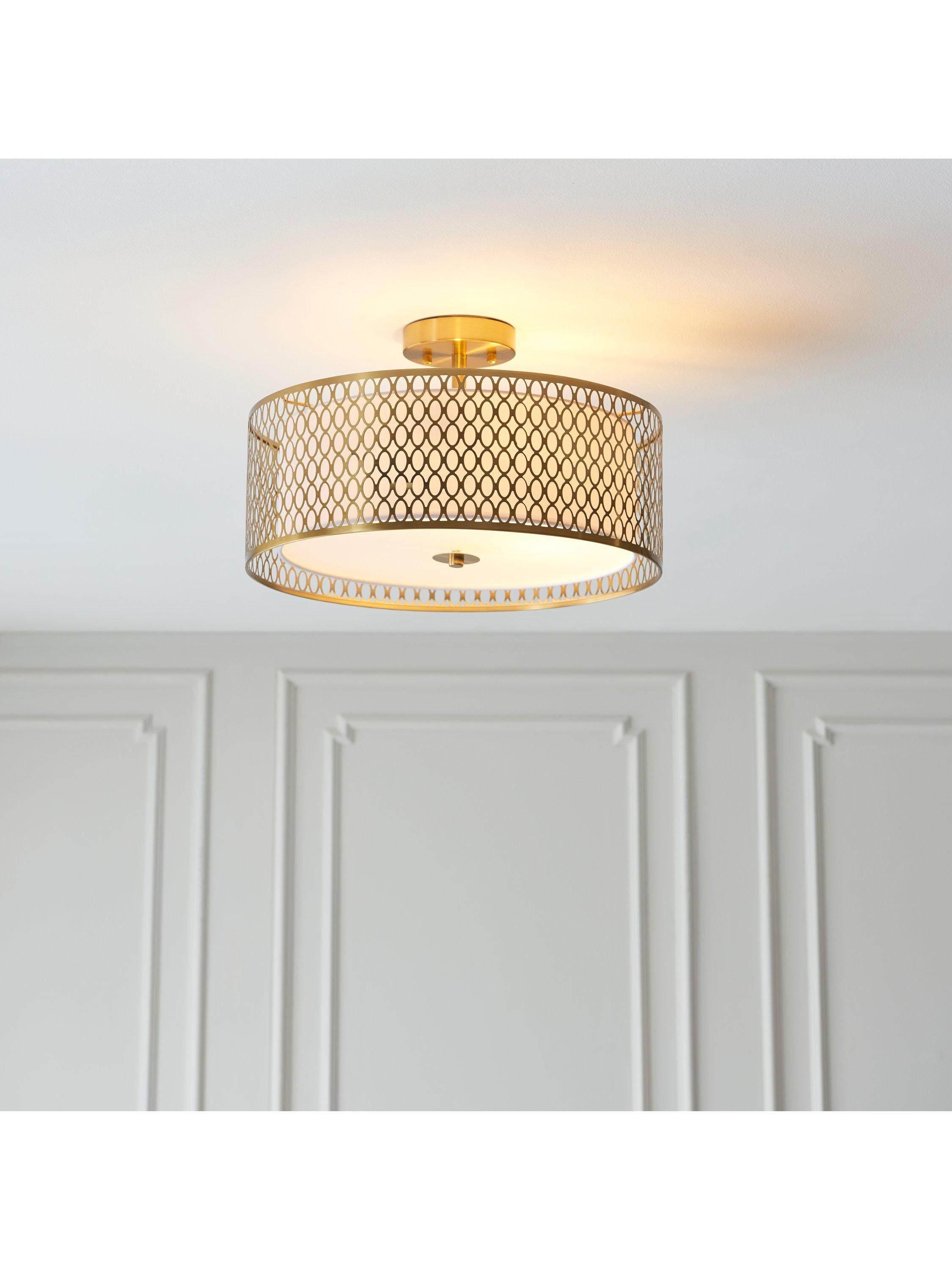Give your room an eye-catching design with this elegant semi flush ceiling light. The frosted glass diffuser softens the light, giving a calm and cosy feel to your home.