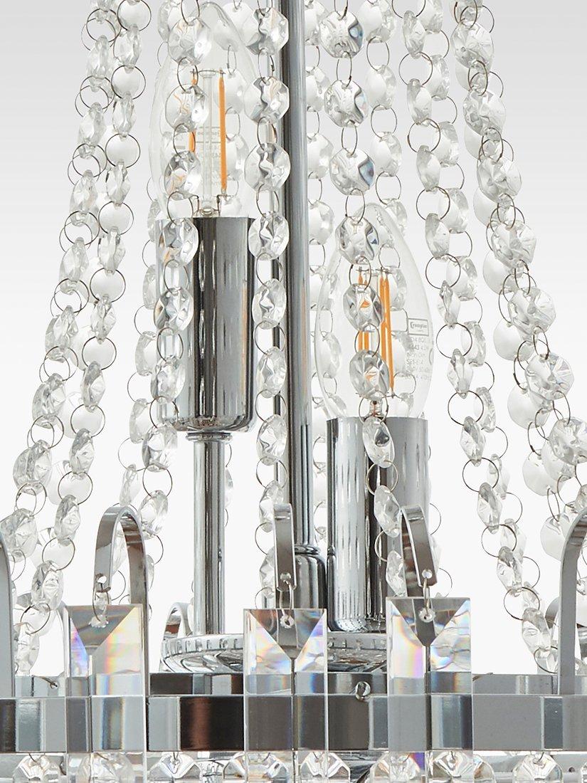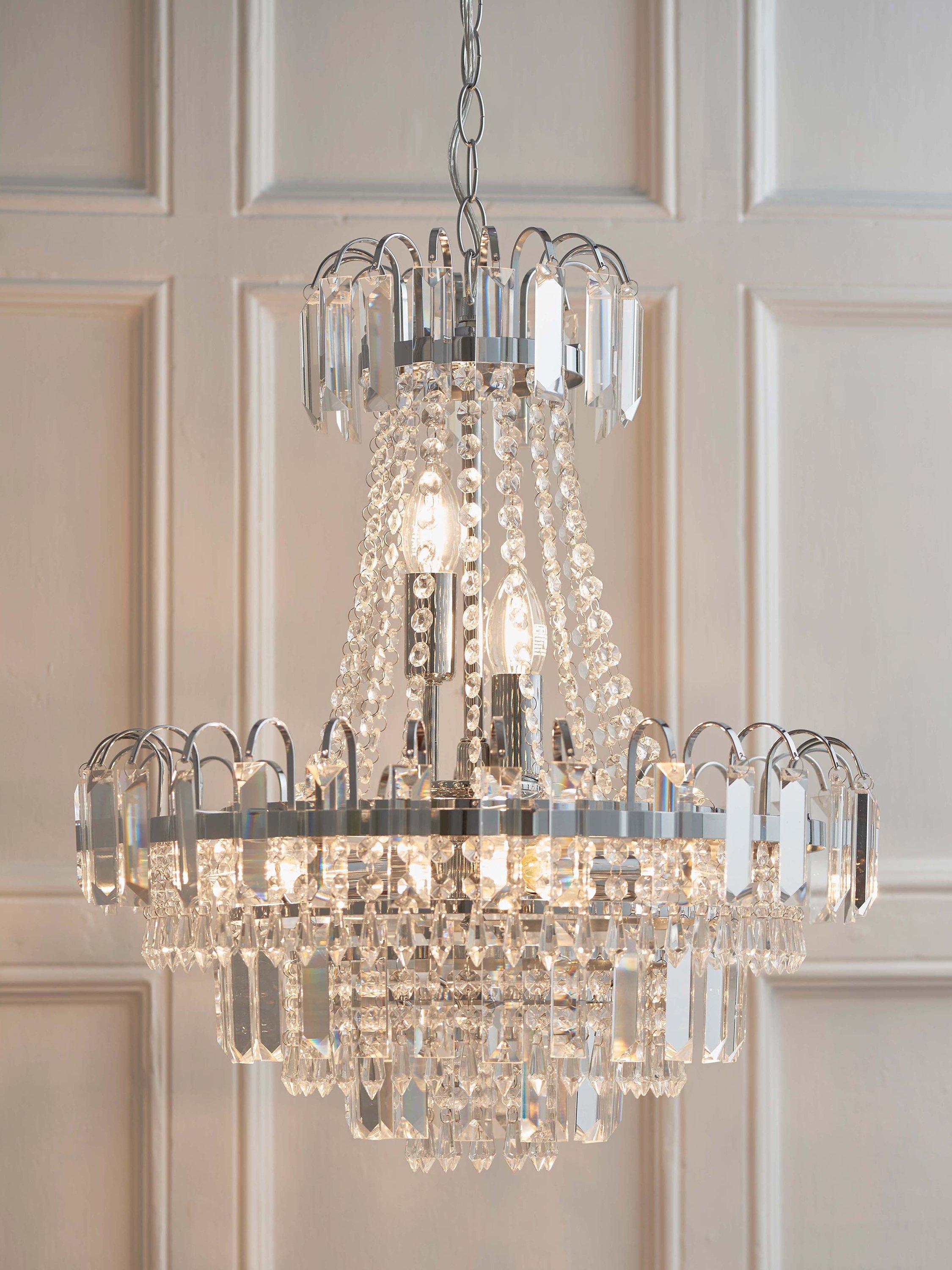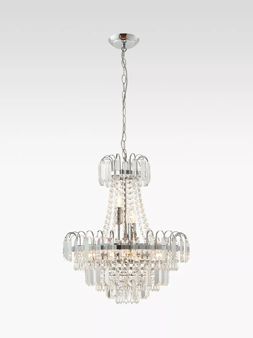 Formed from faceted glass crystals and beads, this traditional chandelier ceiling light will become the focal point of your room. It's suspended from a height-adjustable link chain cable and accented with a polished chrome ring.