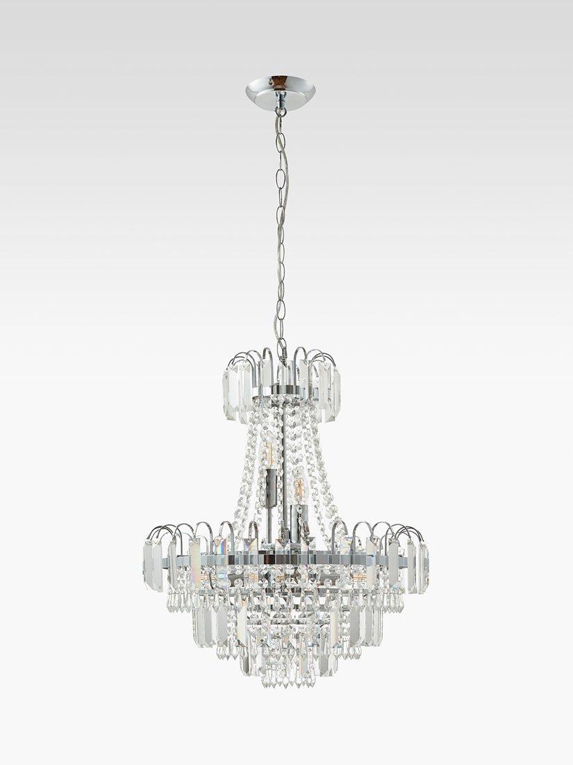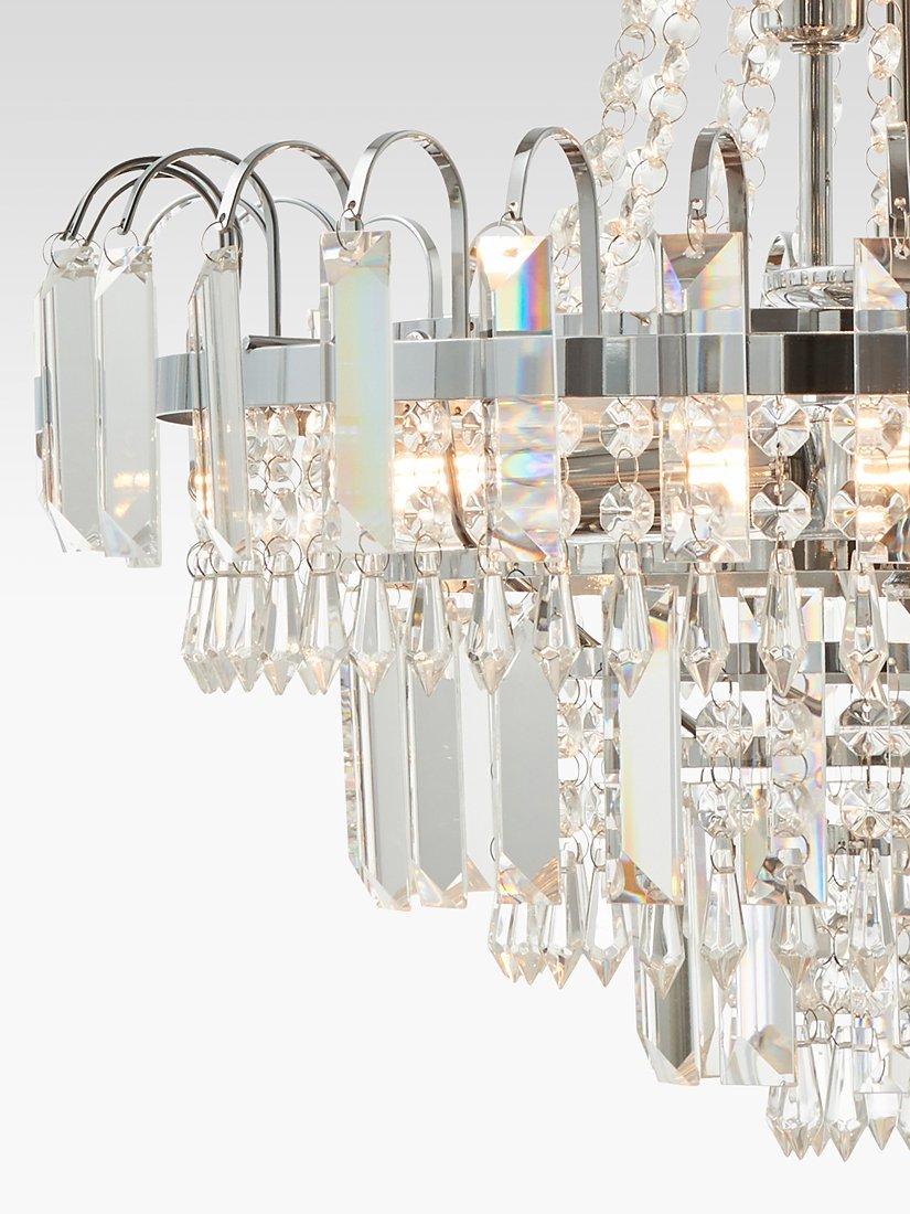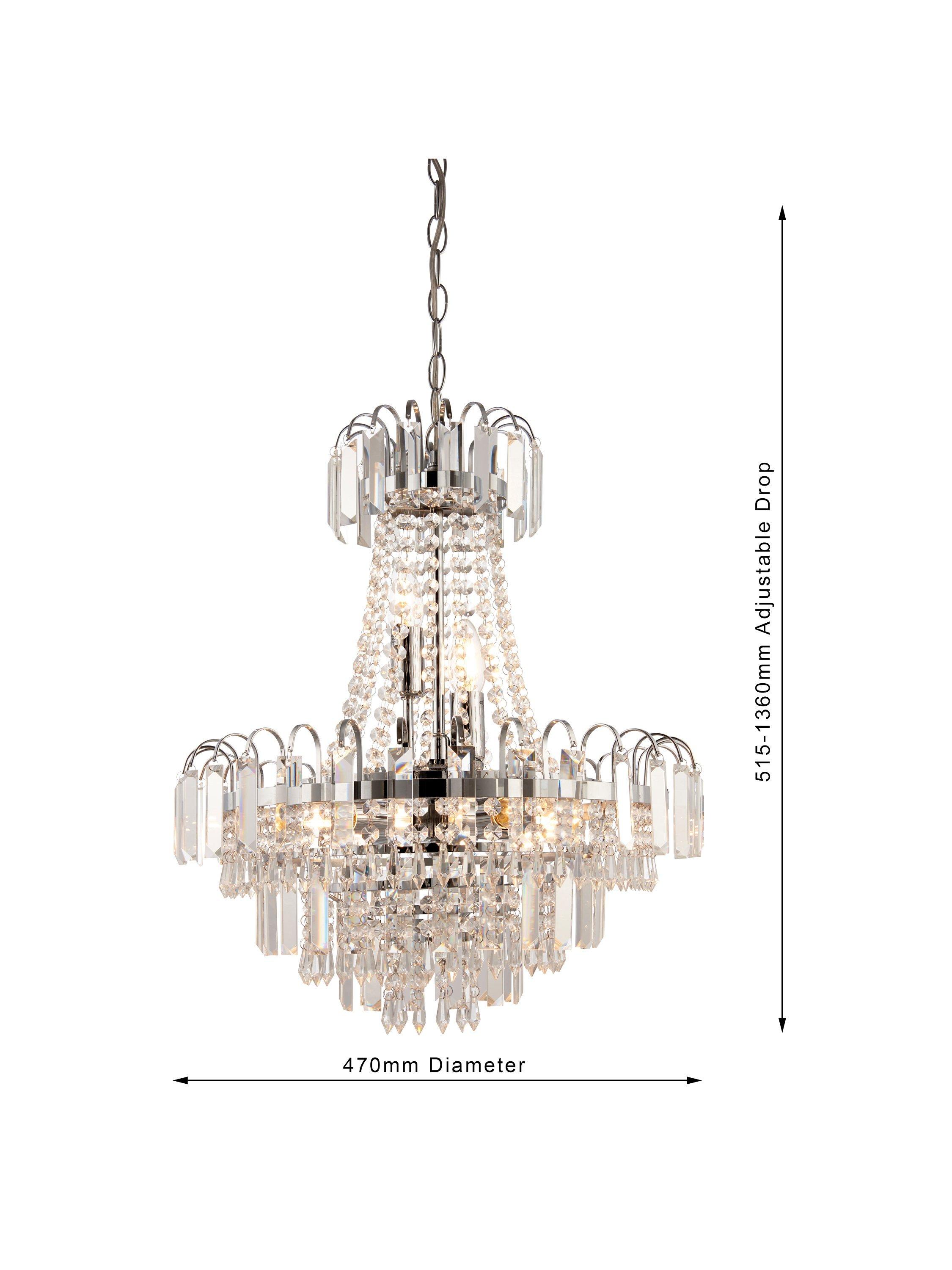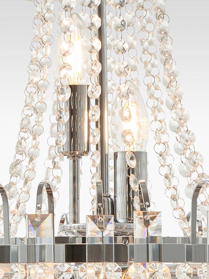 Formed from faceted glass crystals and beads, this traditional chandelier ceiling light will become the focal point of your room. It's suspended from a height-adjustable link chain cable and accented with a polished chrome ring.