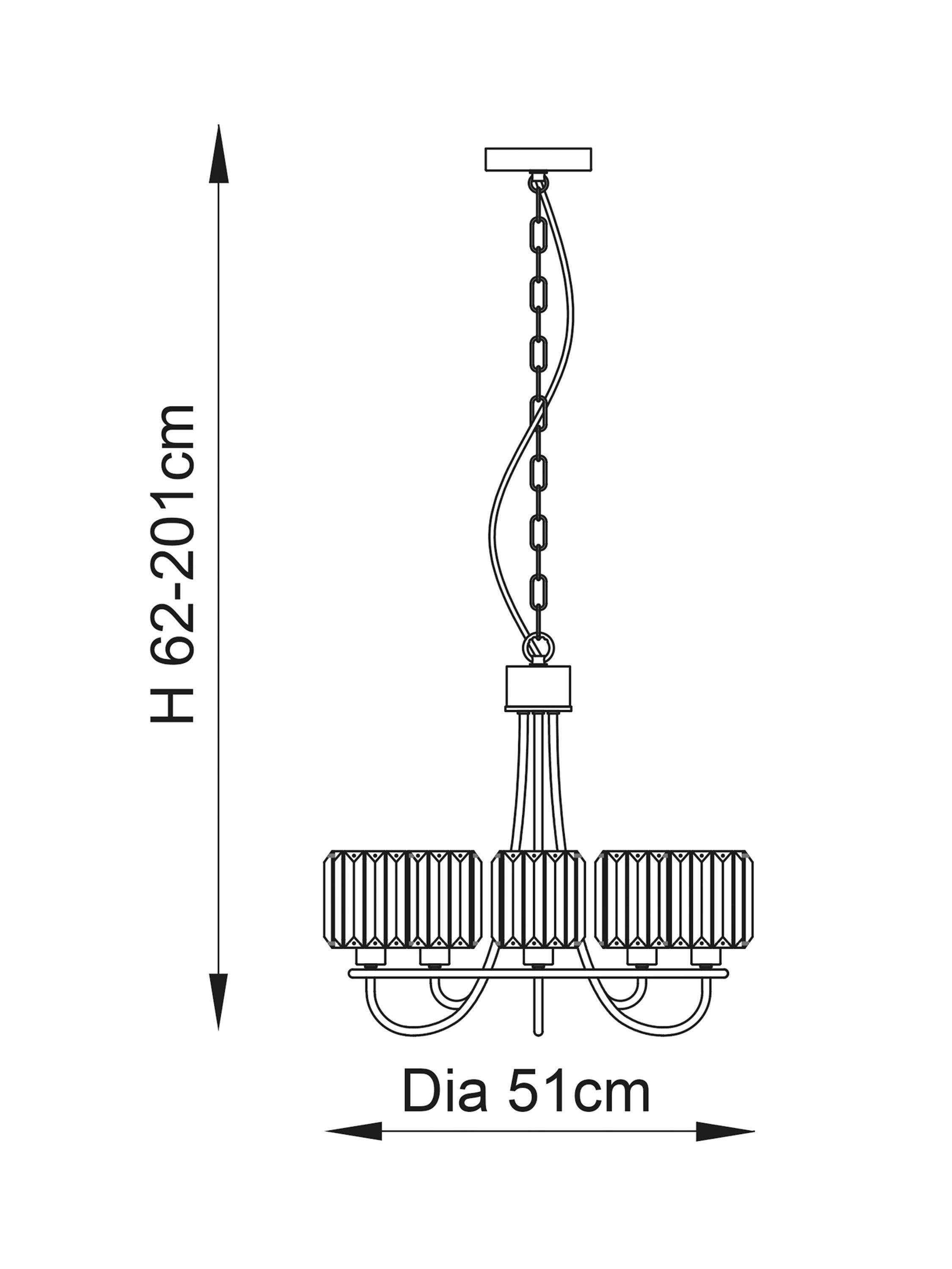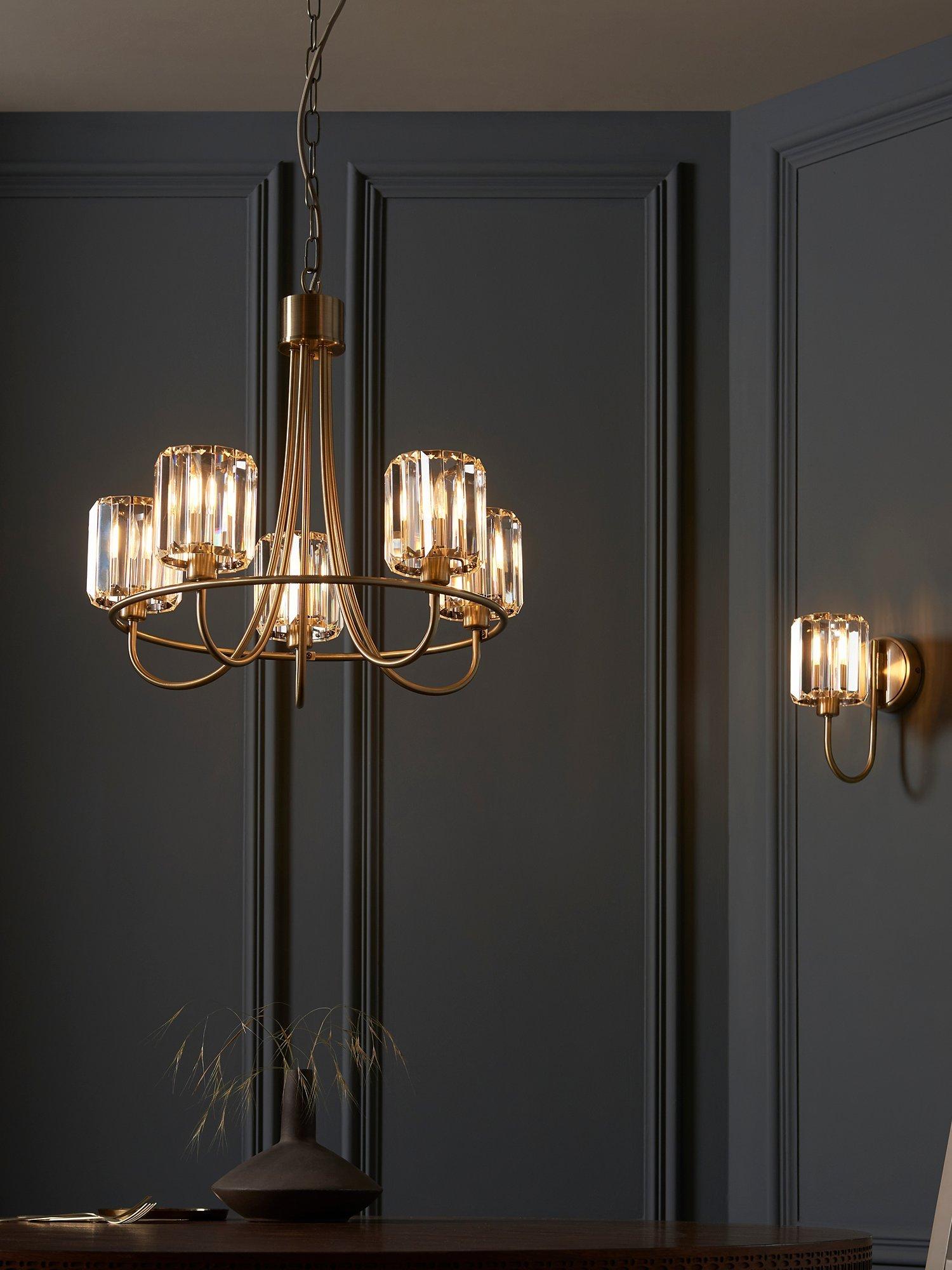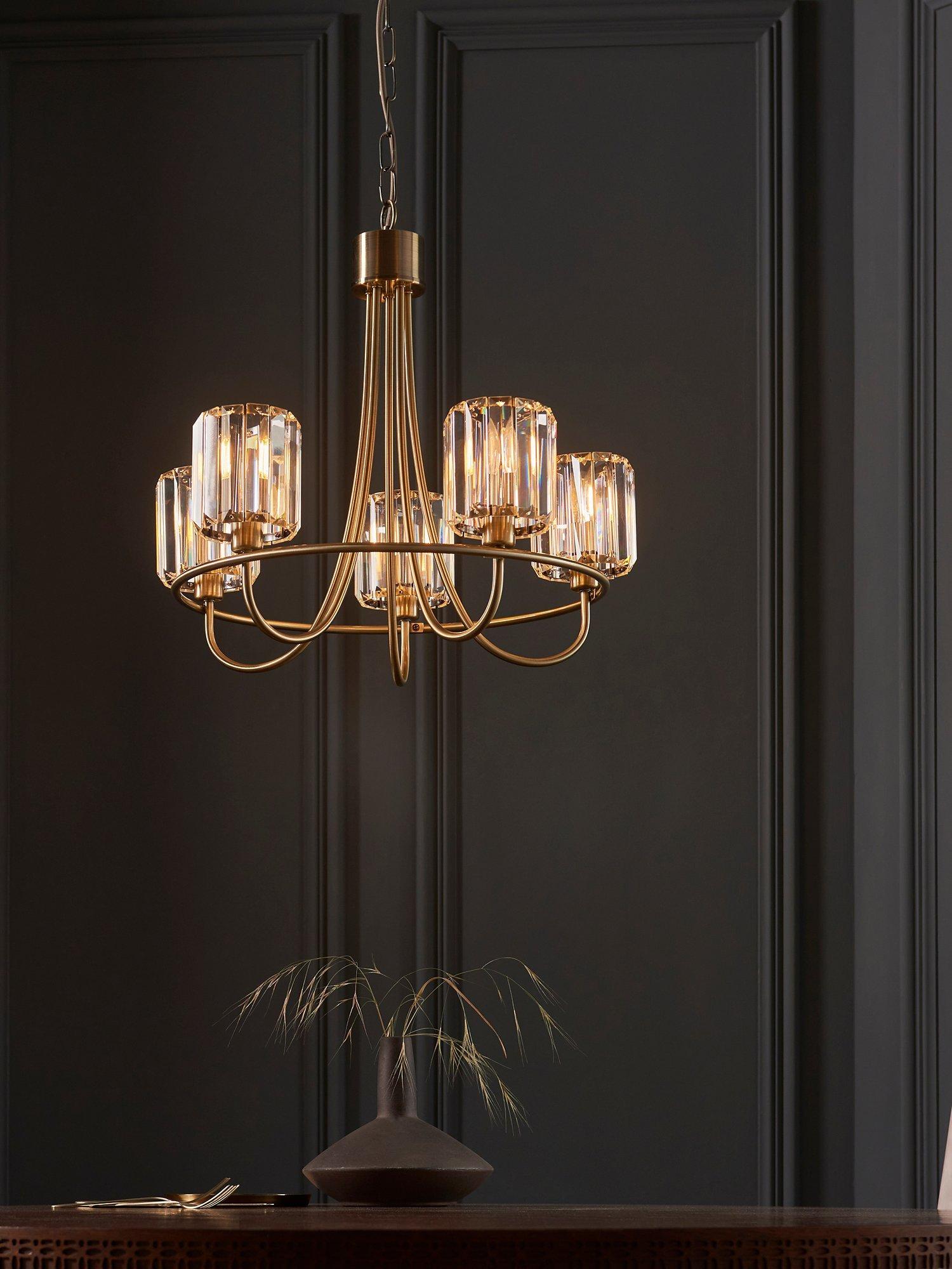 This sophisticated ceiling light is designed with decorative, clear cut faceted glass which disperses a dazzling display of light. With five elegant arms holding the glass shades, this eye catching design will blend with traditional interiors or add a unique touch to contemporary designs.