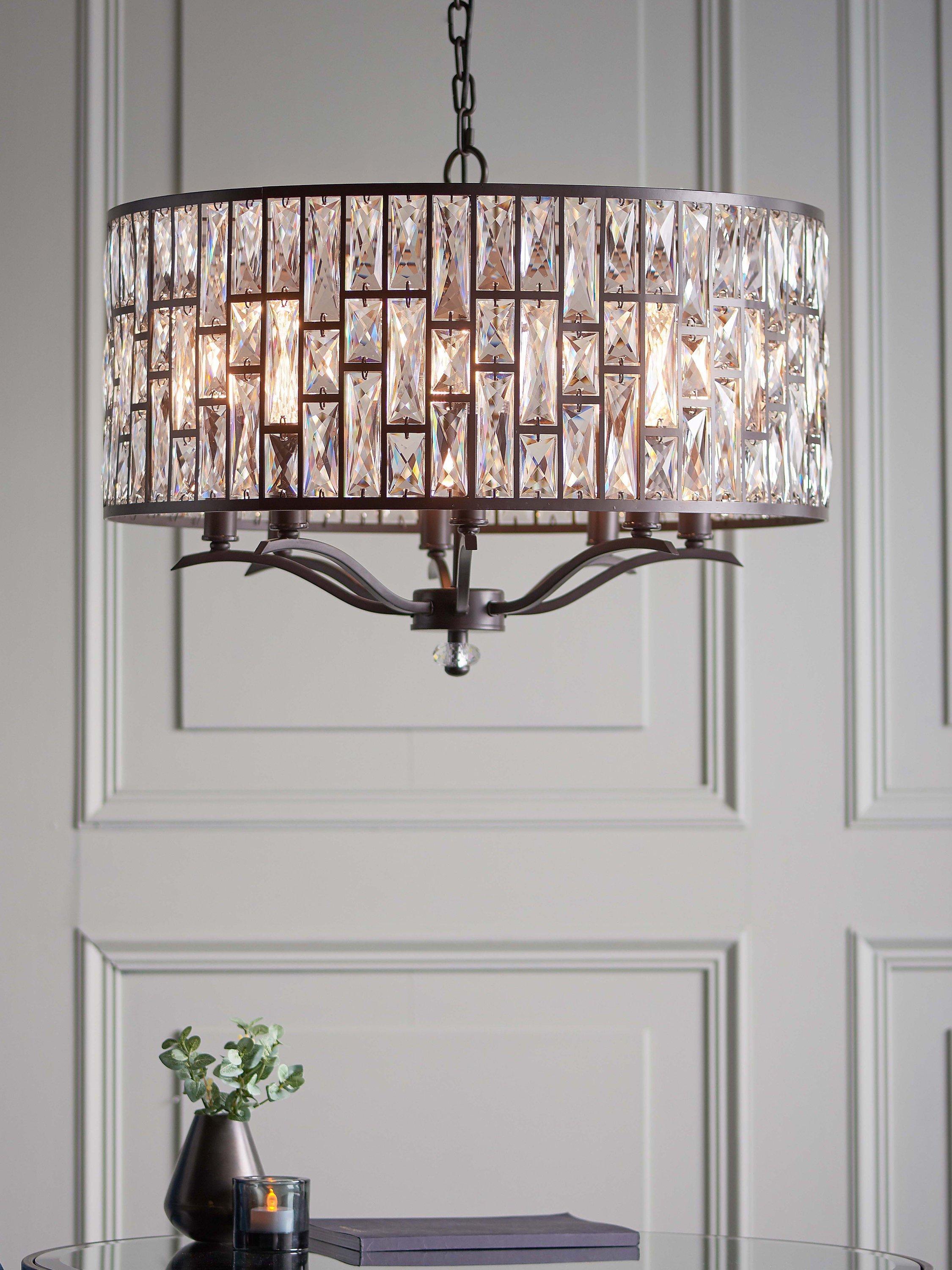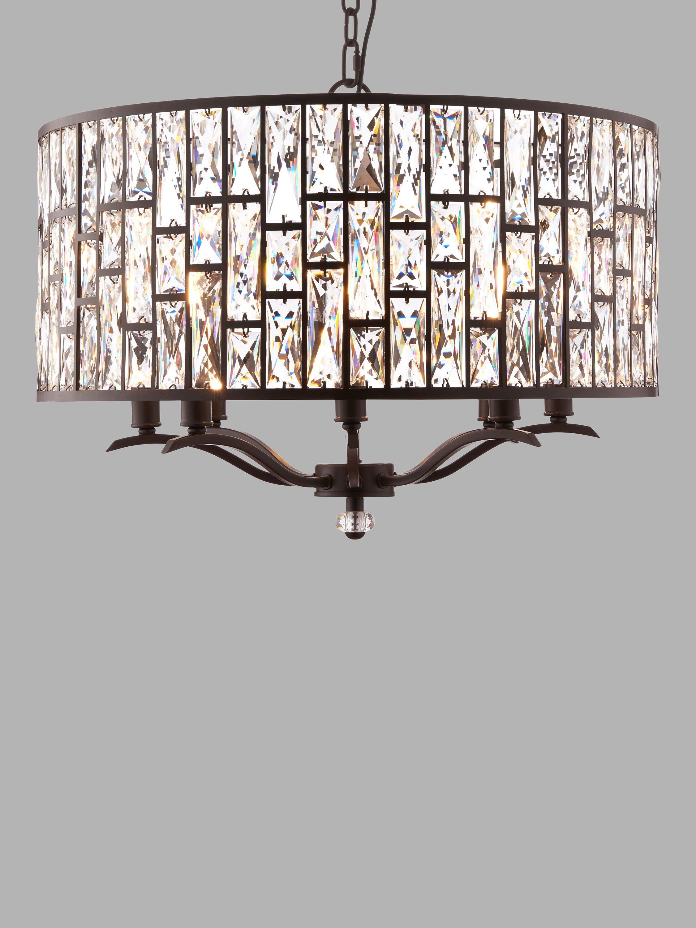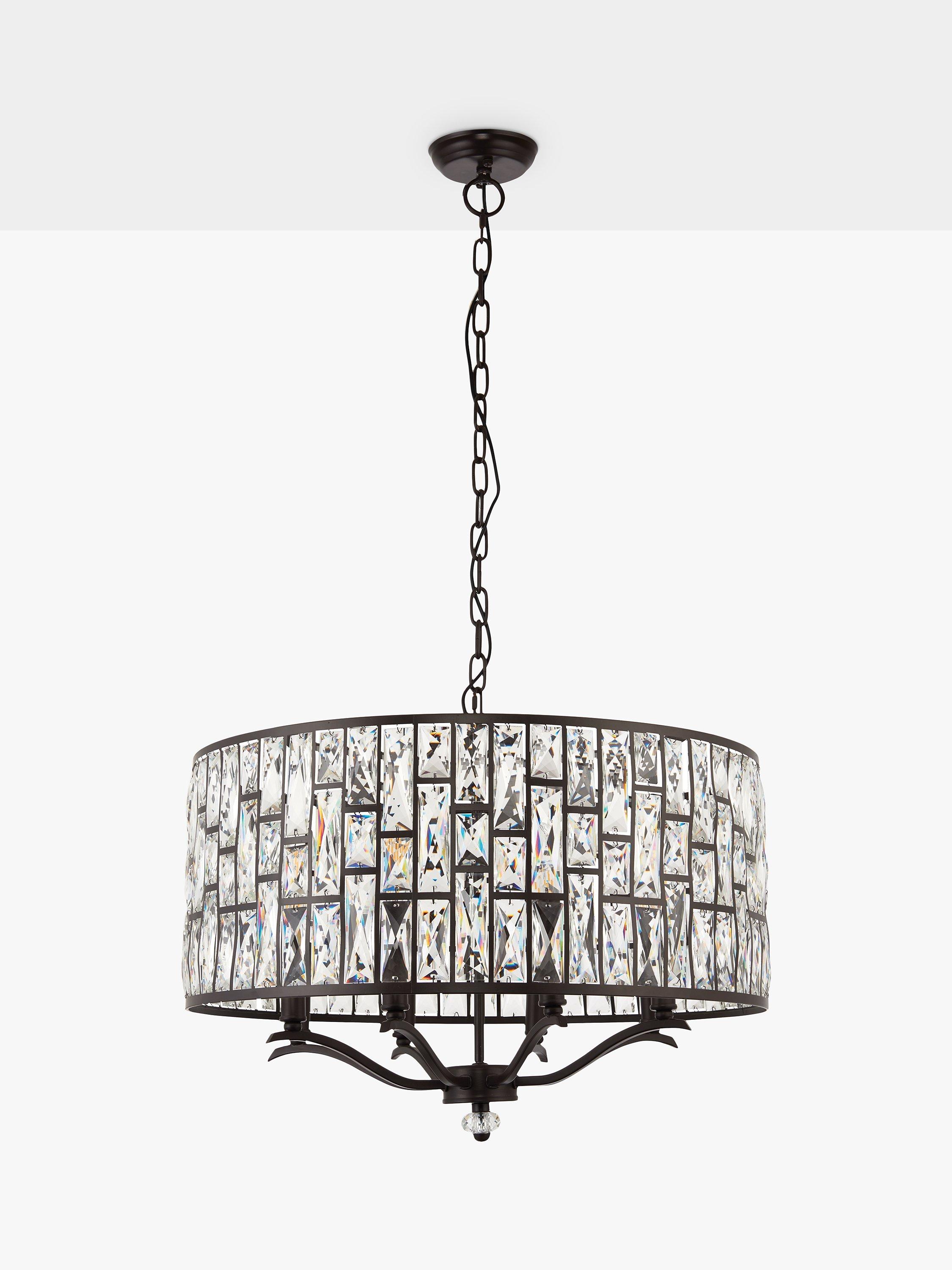 This impressive ceiling light is made from faceted glass crystals that are encased within a sturdy metal frame in a bronze finish. When illuminated, light bounces off each crystal to create an intensified, decorative lighting effect. Available in this larger size, it's a timeless and distinctive option, and especially well-suited in the centre of living rooms, as it's suspended from a height-adjustable chain.