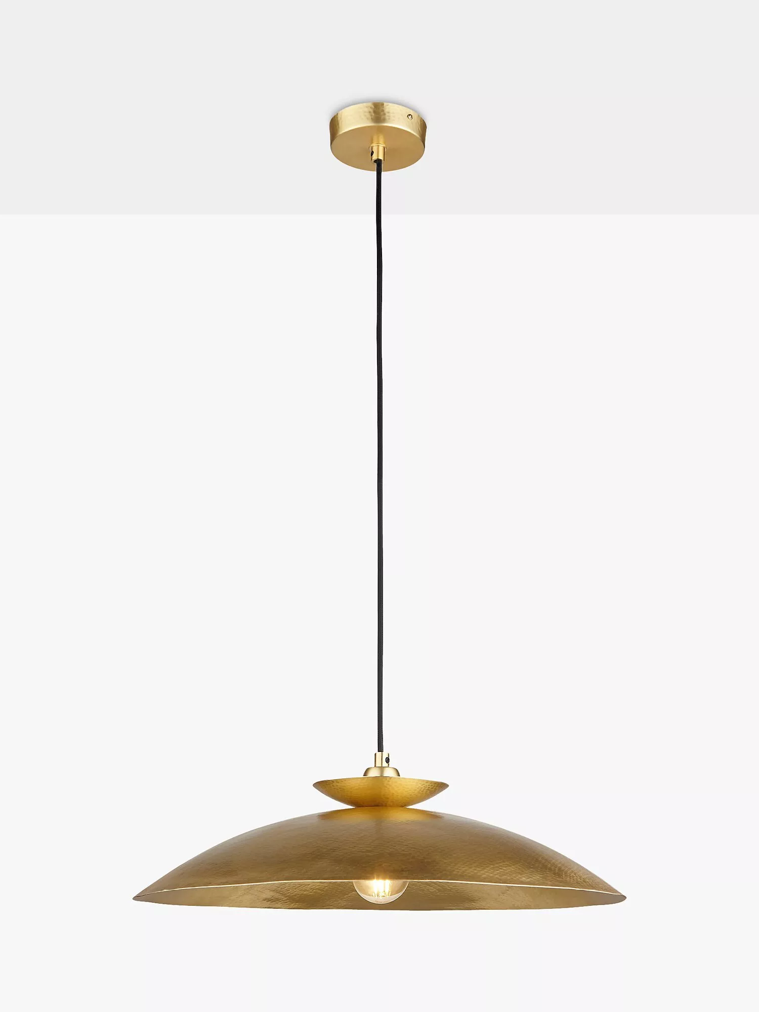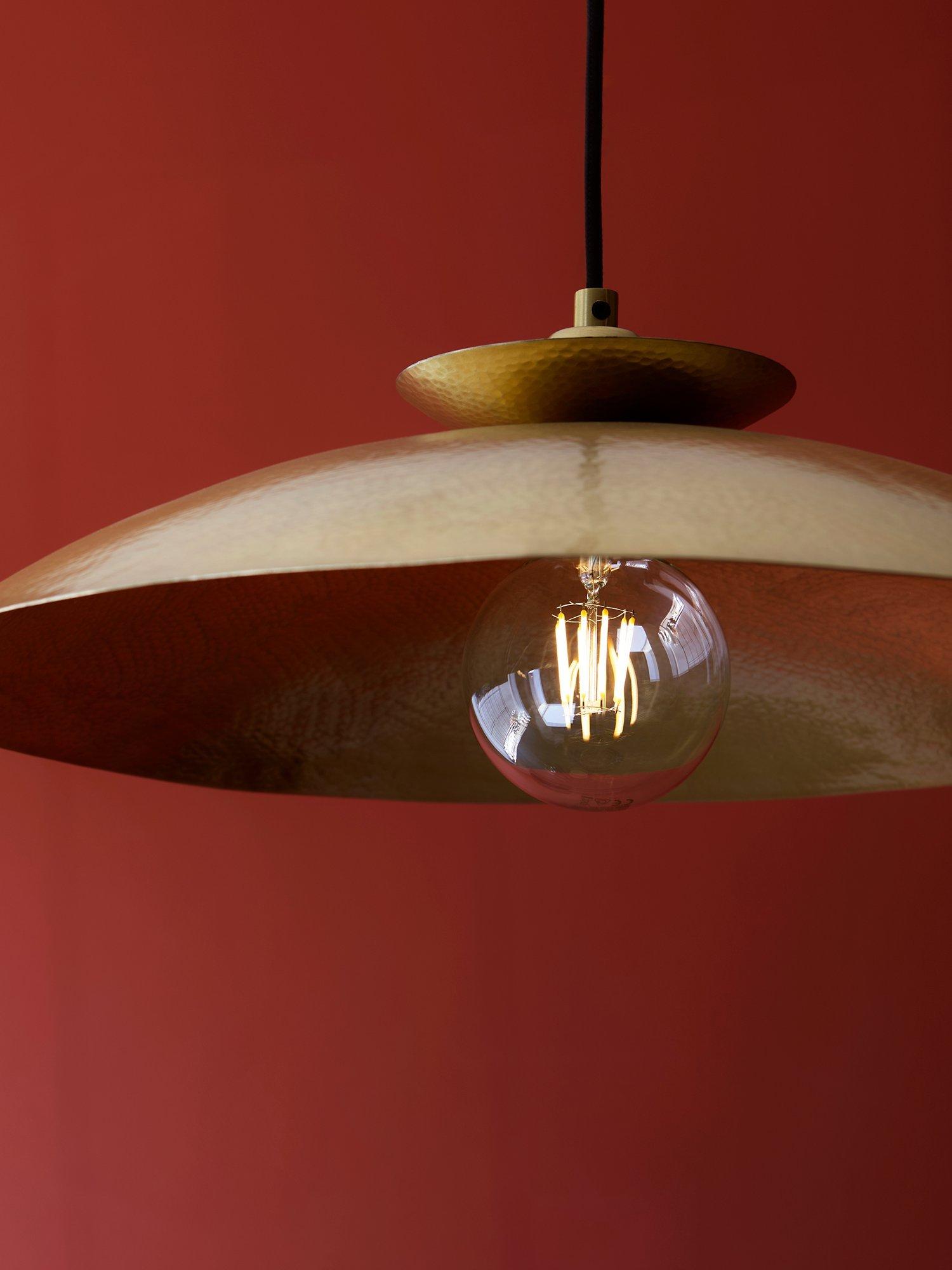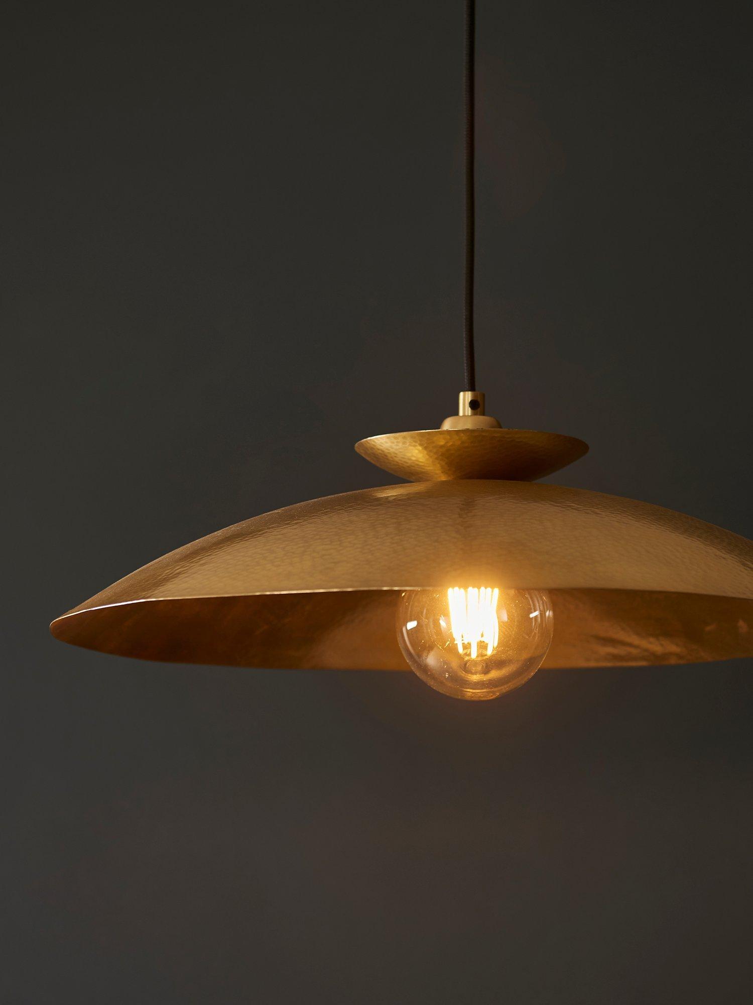Elevate your lighting with this contemporary hammered metal pendant. This handcrafted, curved fitting is the ideal size even for a modest space.
