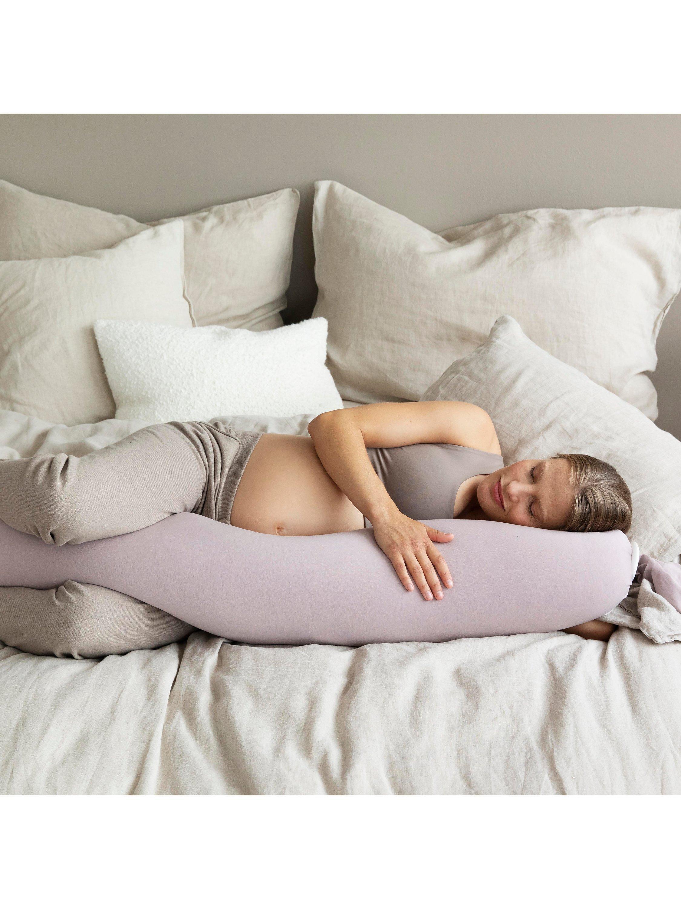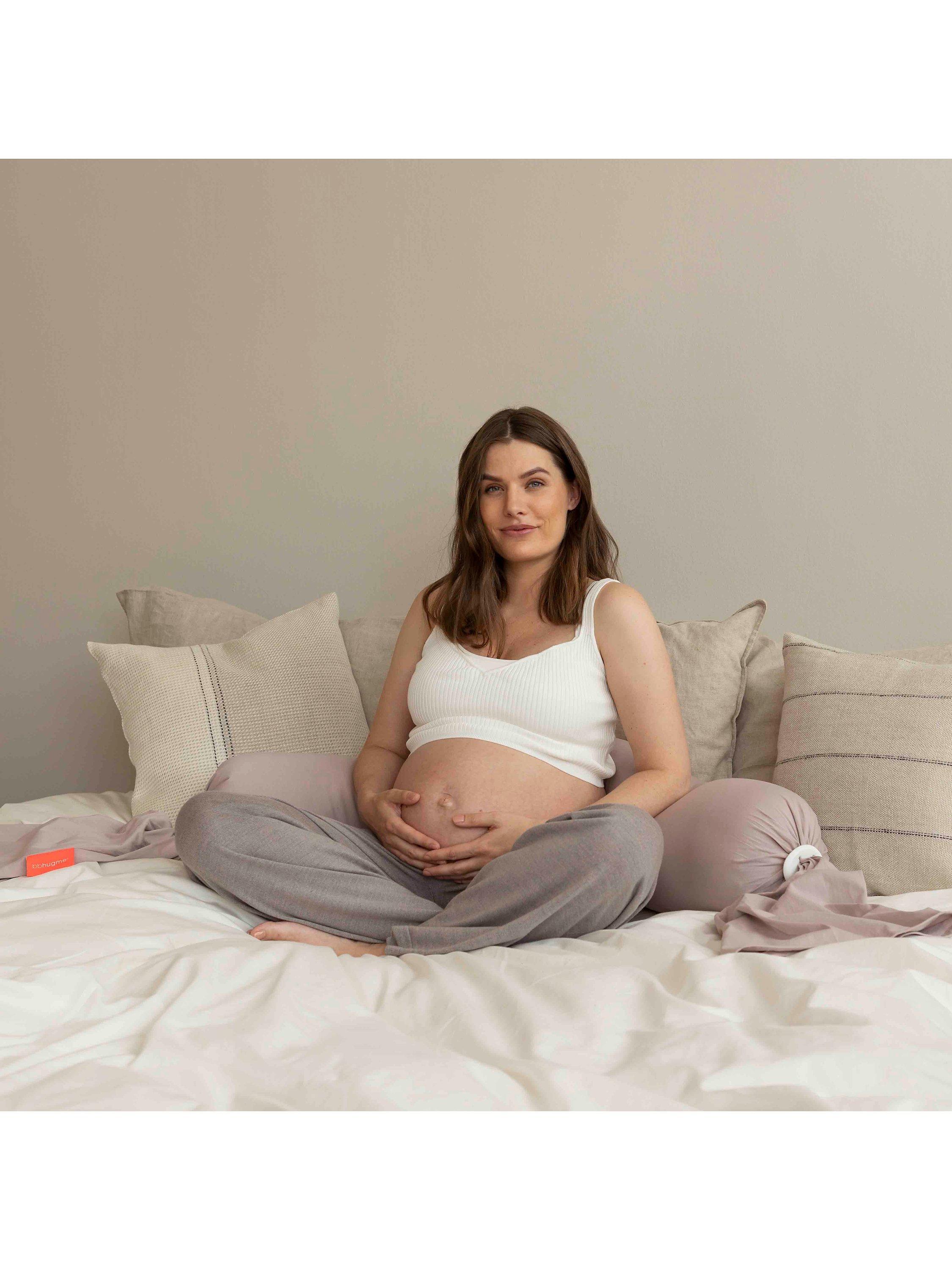 The kit is made up of a bbhugme® inner pillow, two pebbles to secure and adjust each end, and a cover. This enables you to easily adjust the firmness of the pillow. The pillow moulds to your body, ensuring maximum comfort for you and support for your growing bump.
