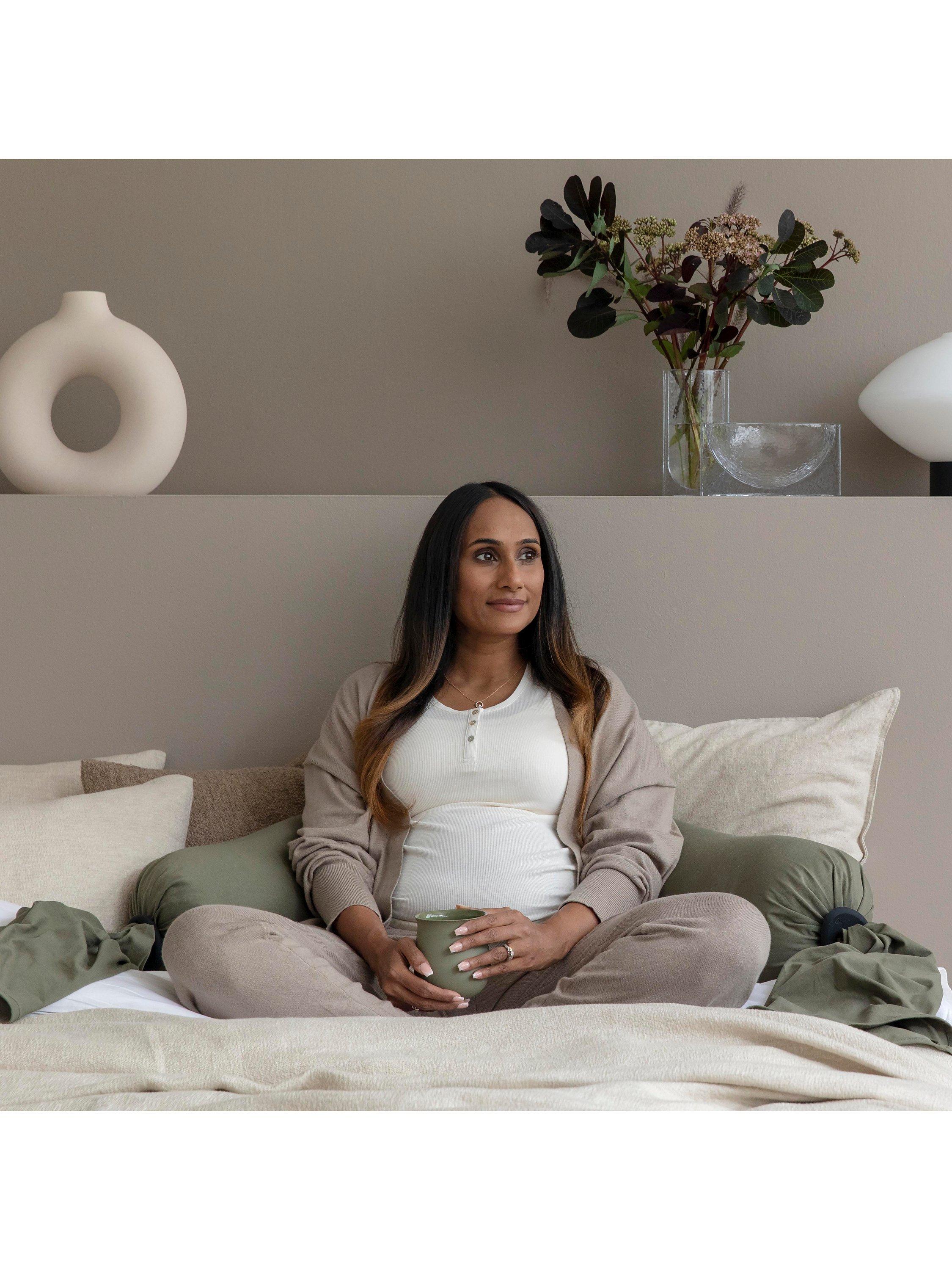 The kit is made up of a bbhugme® inner pillow, two pebbles to secure and adjust each end, and a cover. This enables you to easily adjust the firmness of the pillow. The pillow moulds to your body, ensuring maximum comfort for you and support for your growing bump.