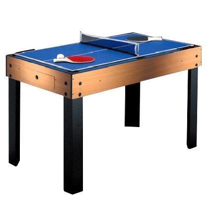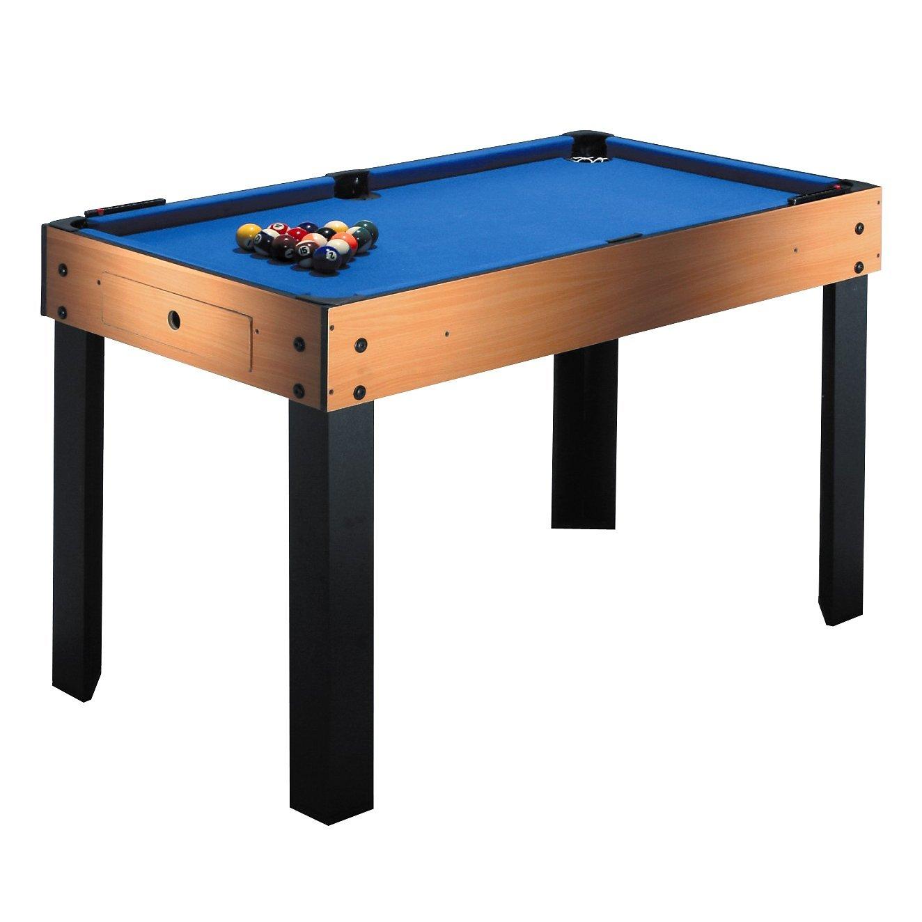 This great value versatile games table has 4 playing surfaces for pool, air hockey, table tennis and table football. With beech laminate sides and bolt-on leg system for sturdy play, it’s smart and safe too, and will provide hours of fun!