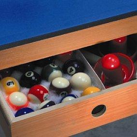 Includes 2x cues, pool balls, chalk, brush, 2x pushers, 2x pucks, 2x bats, net, table tennis balls, 2x footballs plus 240v fan motor.