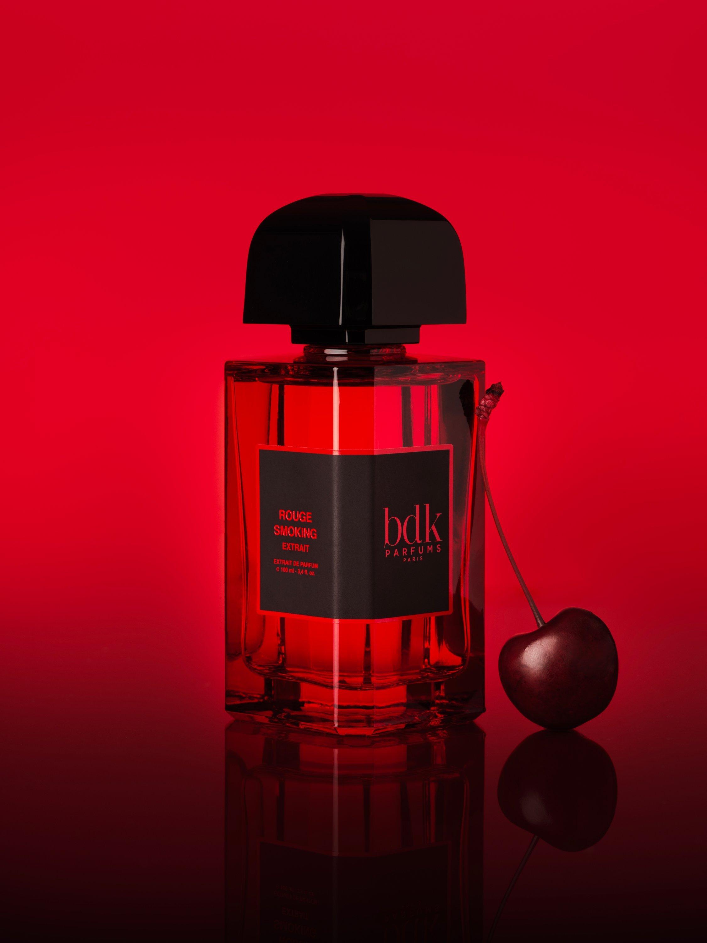 Intensely sensual and captivating, Rouge Smoking Extrait draws its inspiration from the vibrant energy of Paris' Pigalle district. With a 30% concentration, this fragrance reimagines the cherry, amber, and tonka bean accord with depth and intensity.