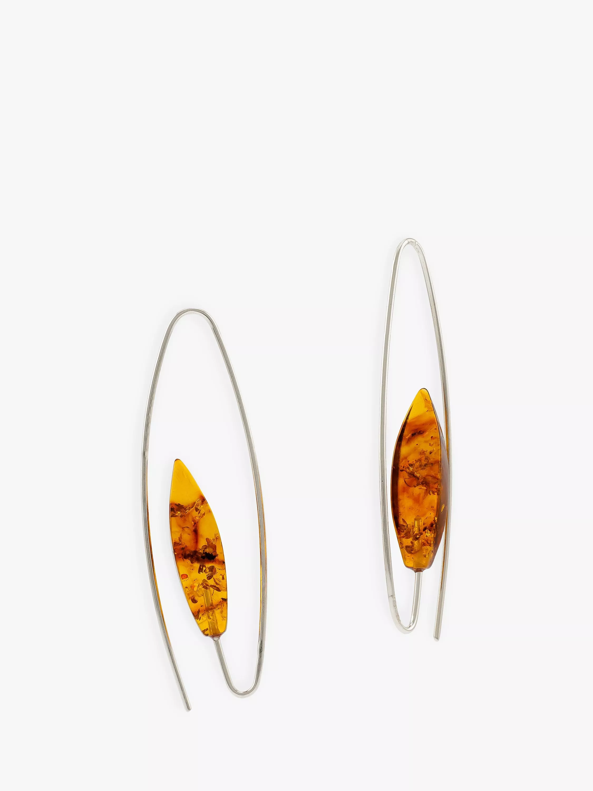 With an open oval design, the pair offers an off-beat modern look. The smooth Baltic amber stone gives more texture and sophistication to the earrings. The earrings are made for pierced ears only.