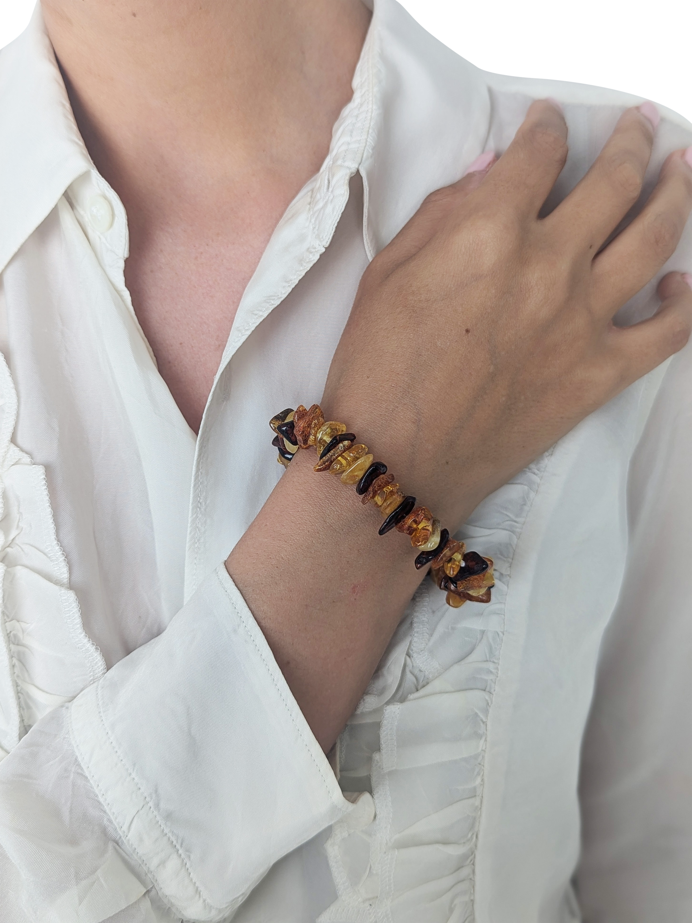 The versatile bracelet comes with a comfortable stretch design that will adapt to most wrists. It comes with beautiful amber stones in warm and beautiful hues of cognac, cherry and lemon.