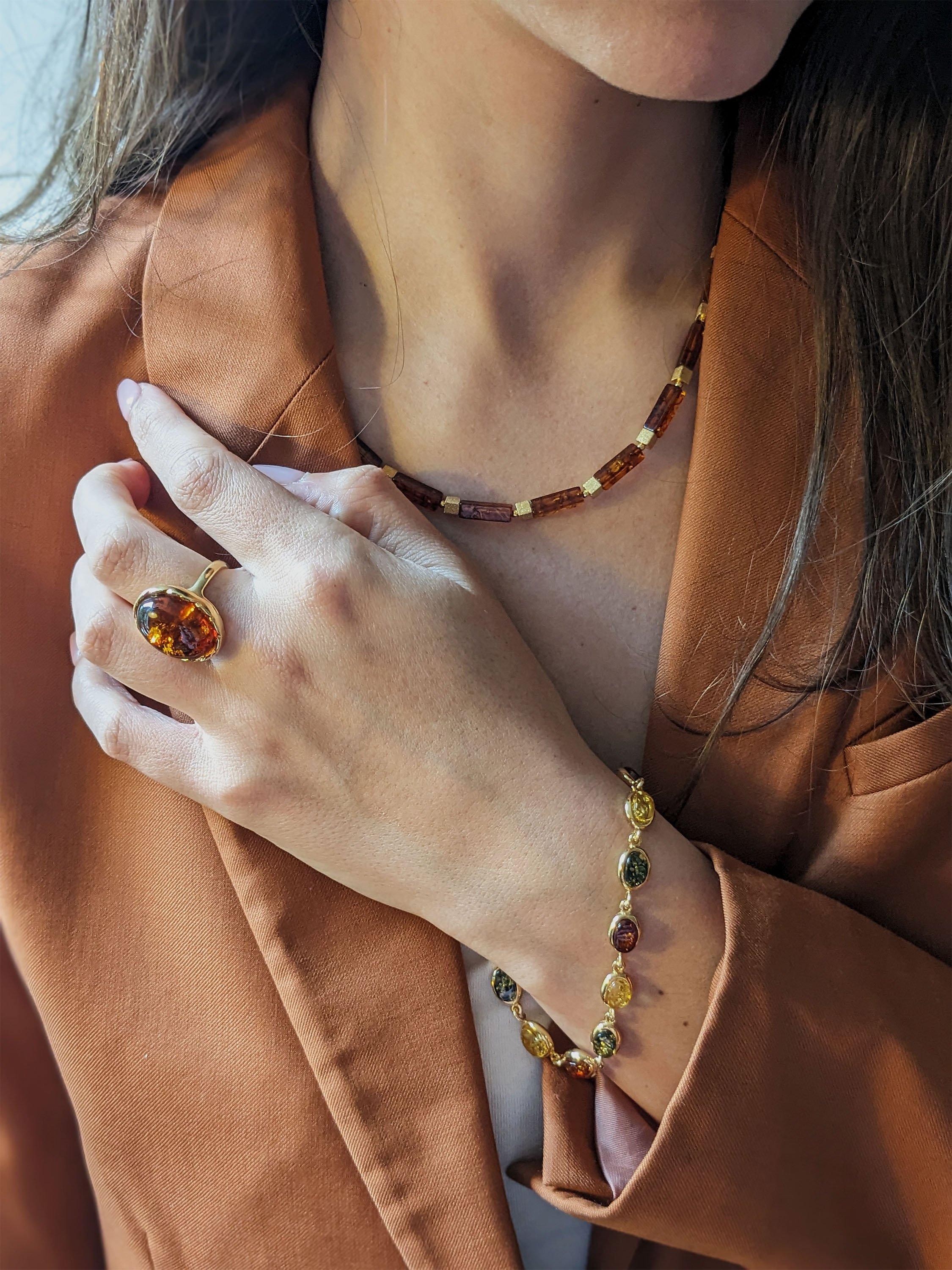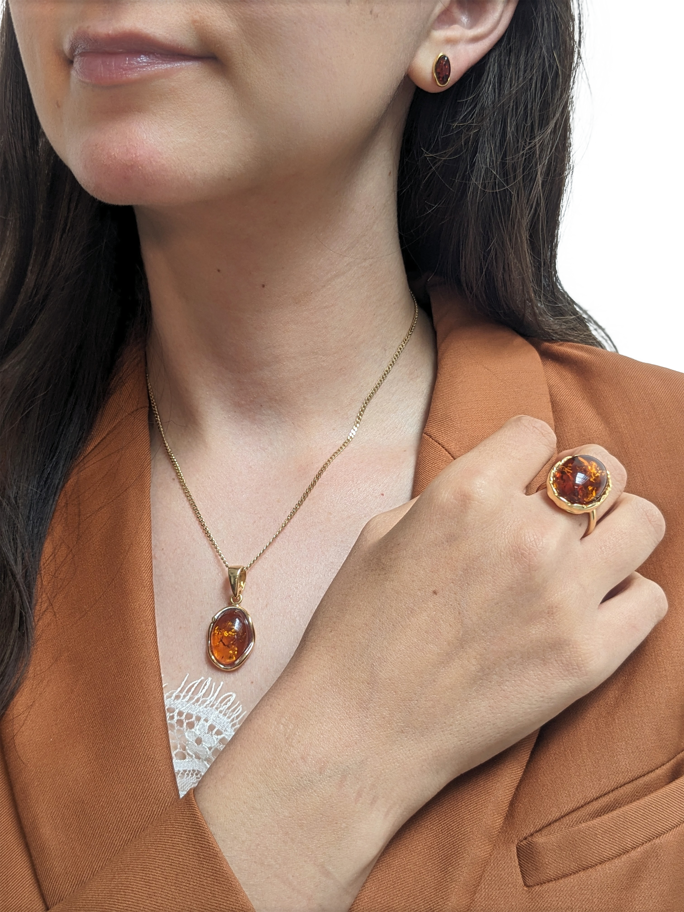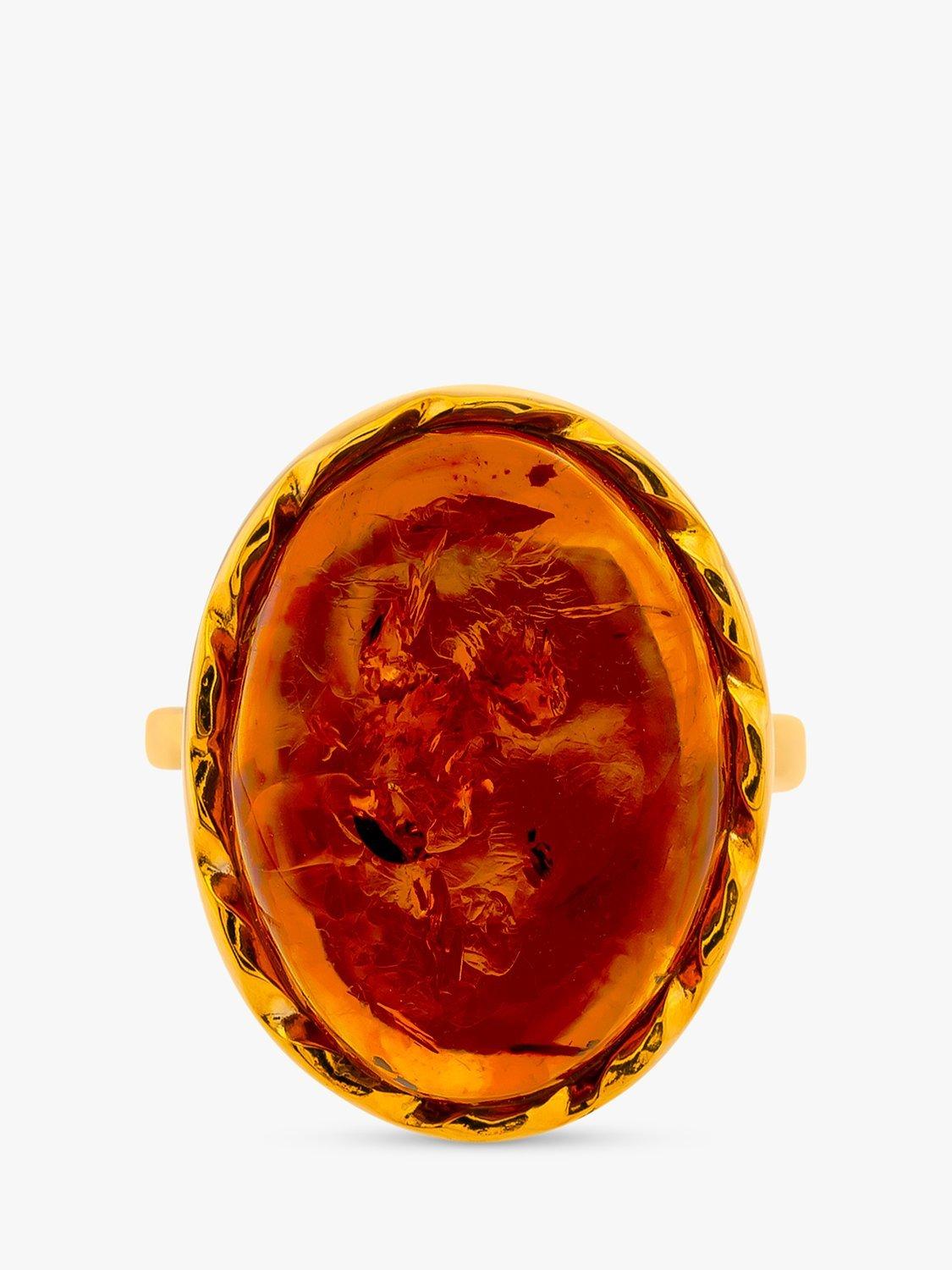 Be-JewelledLimited Edition Baltic Amber Oval Cabochon Ring, Gold/Cognac