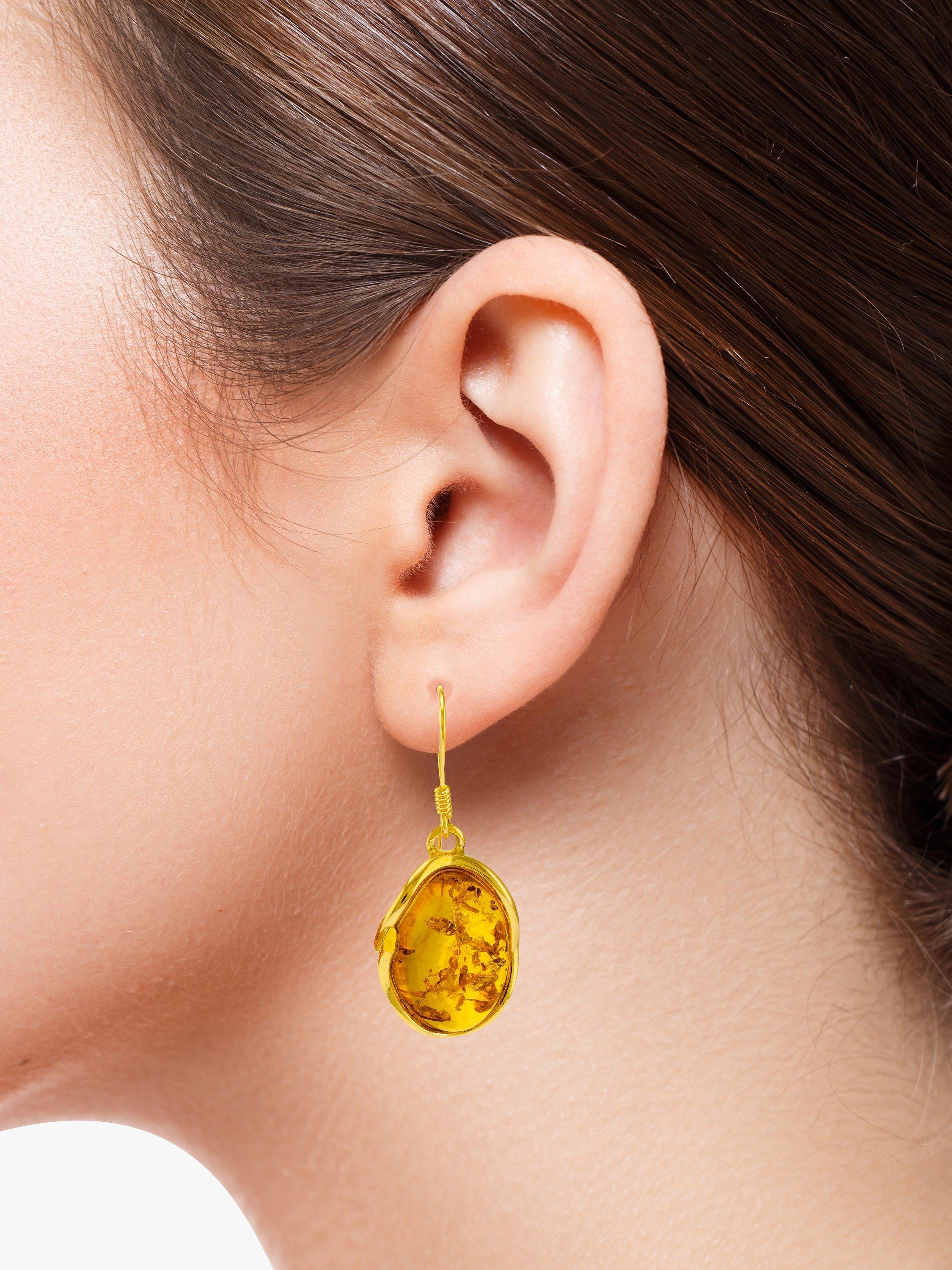 A signature feature for the brand, the Baltic amber is presented in an organic rub-over setting with these earrings. The drop design comes with traditional hook fittings are for pierced ears only.