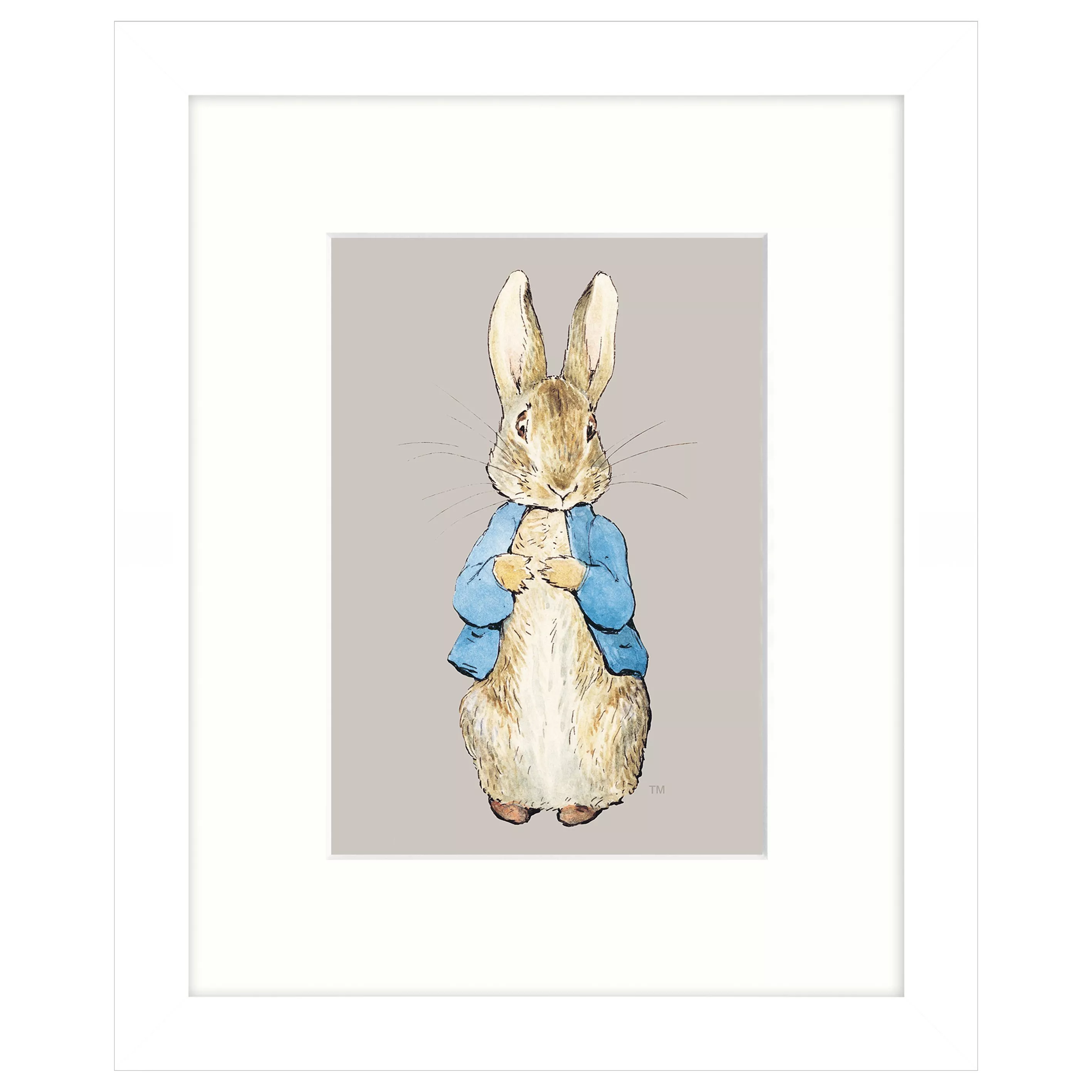 Filled with imagination, this classic Beatrix Potter print features the loveable animal character Peter Rabbit. This charming digital print comes presented in a white wooden frame and is ideal for hanging in a playroom or nursery.