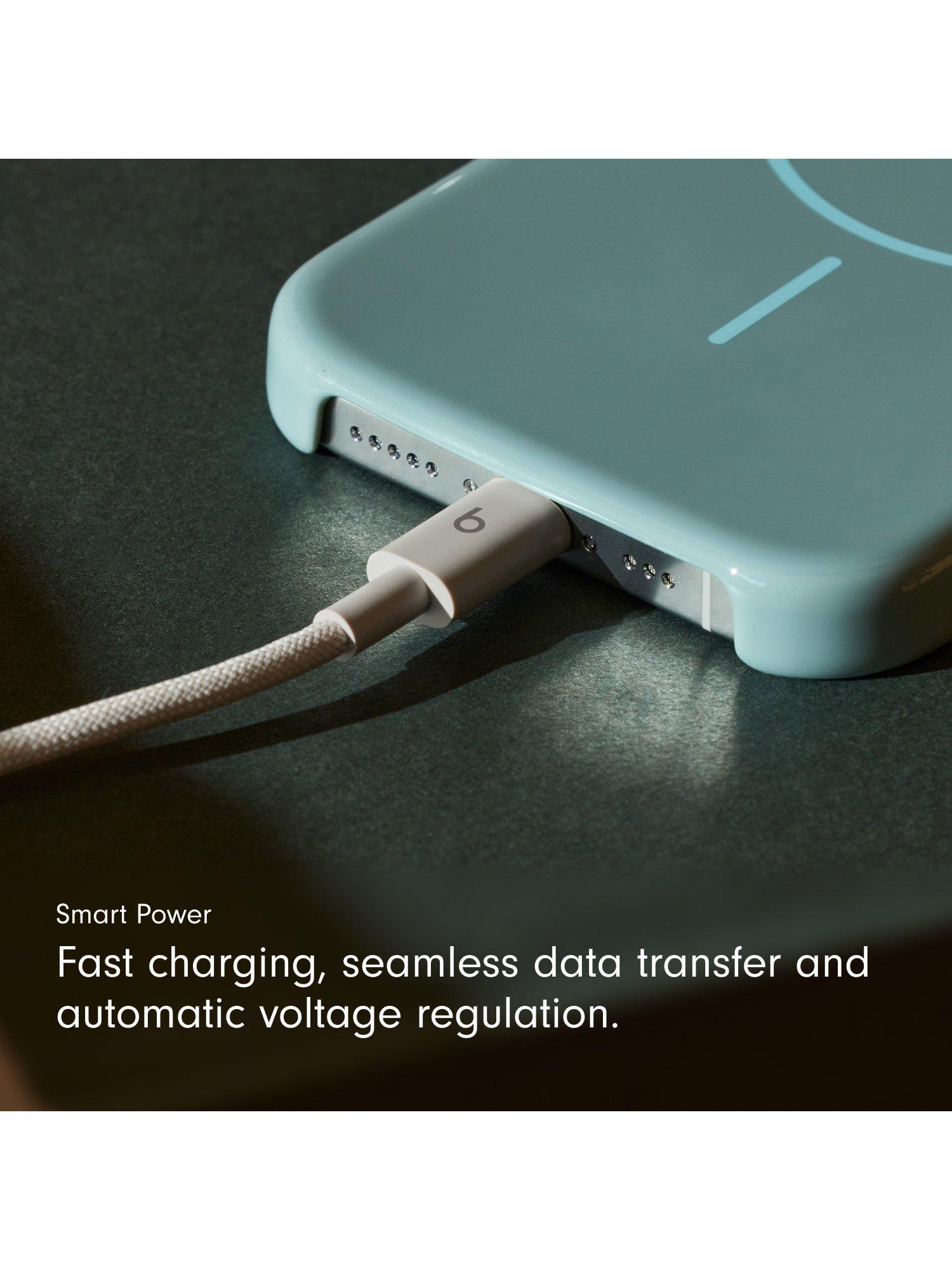 The cable lets you charge USB-C compatible Beats headphones or speakers while you listen to audio or stream lossless audio. It supports fast charging of up to 60 watts and can transfer data at USB 2.0 rates. For fast, efficient charging, pair the USB-C cable with a USB-C power adapter and conveniently charge your compatible iPhone or other devices from a wall socket.