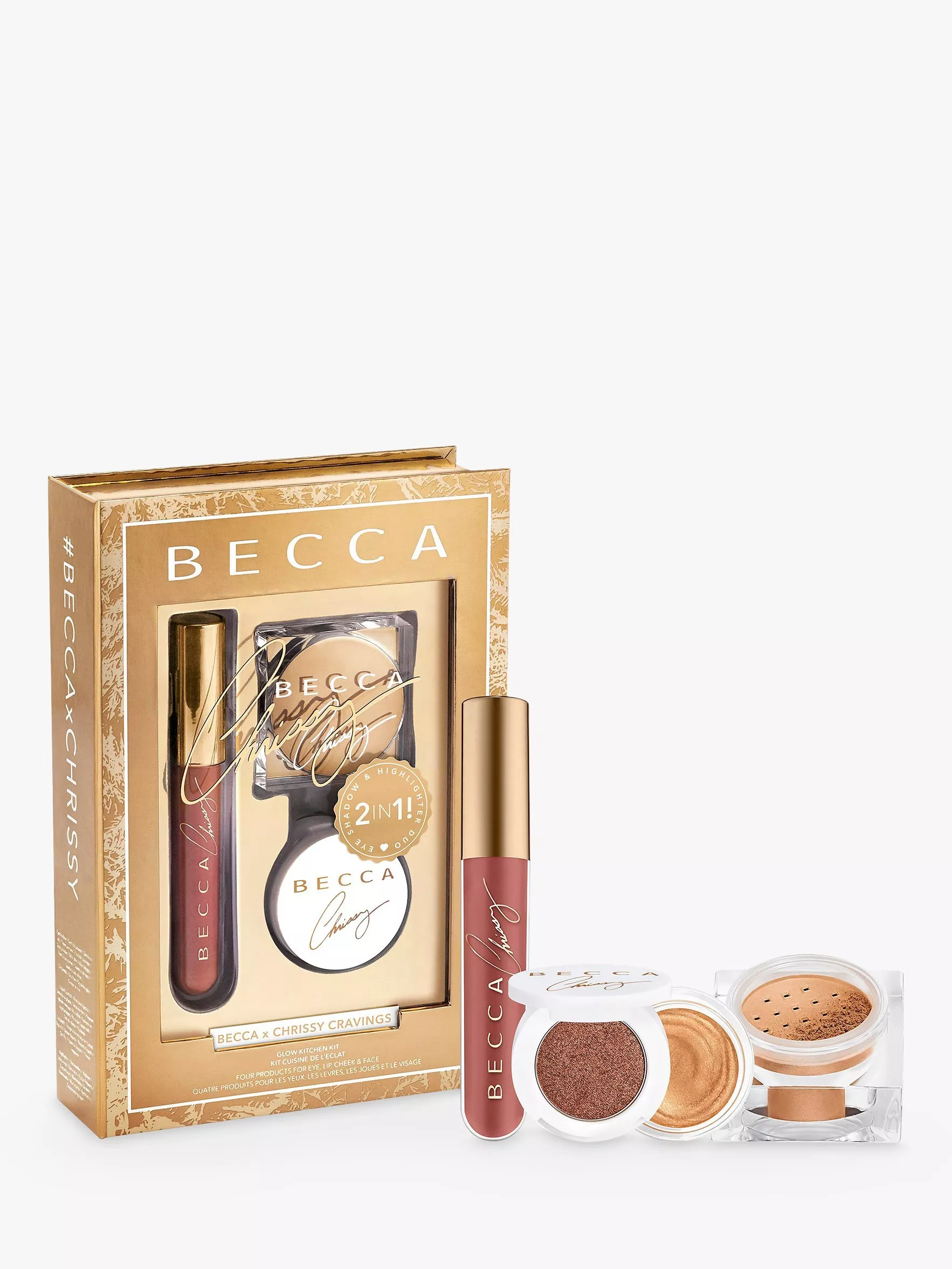 A brand-new, limited-edition kit created in collaboration with BECCA Glow Queen, Chrissy Teigen, featuring 4 brand-new, deliciously flavoured products to create a full face, eye and lip look, inspired by Chrissy’s ultimate holiday cravings.