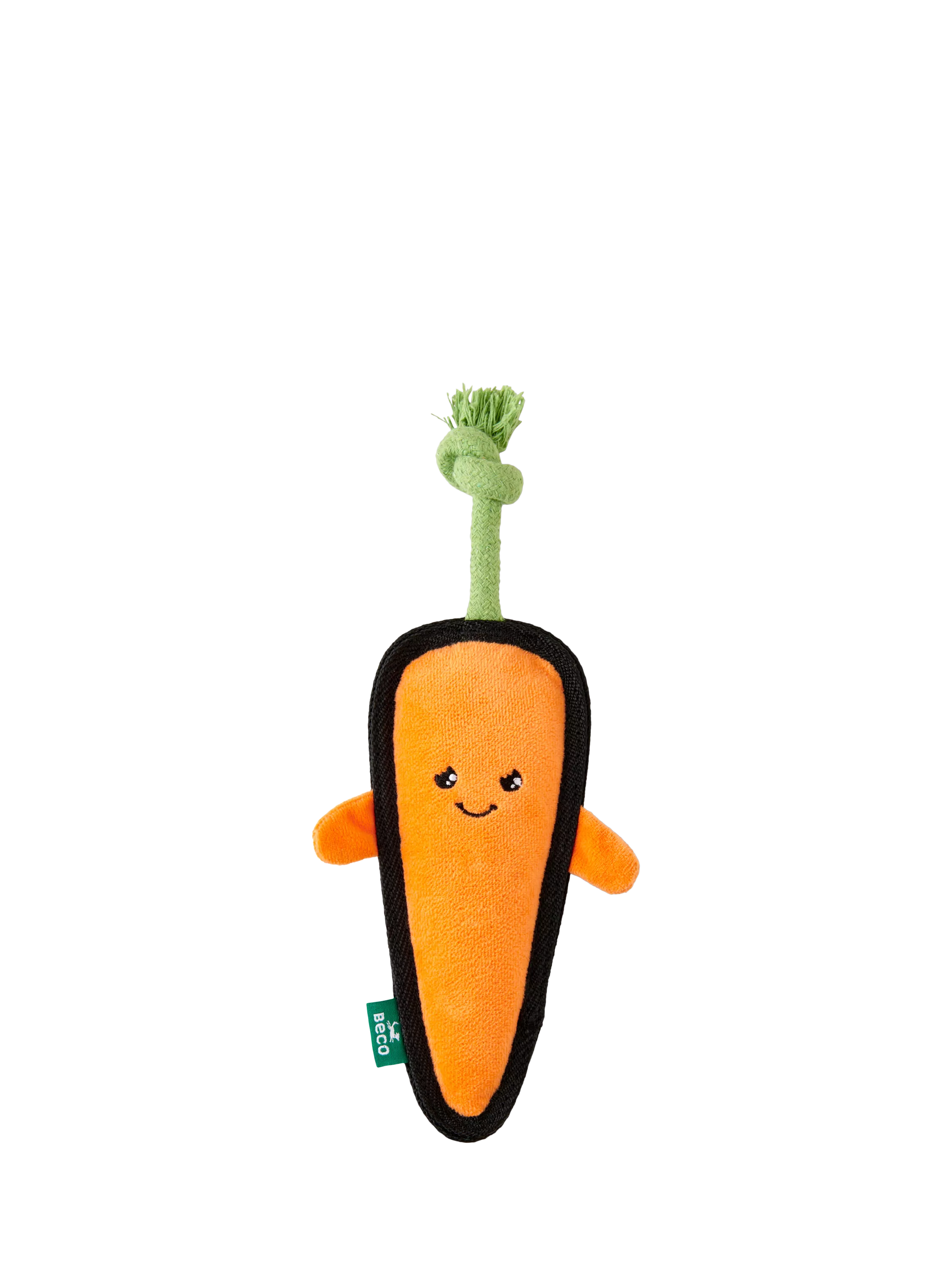Meet Carrie, a cute and cuddly soft toy from Beco Pet's vegetable range that has double stitched seams, a squeaker and an interactive rope, making it the perfect choice for cuddling, carrying and fetch.