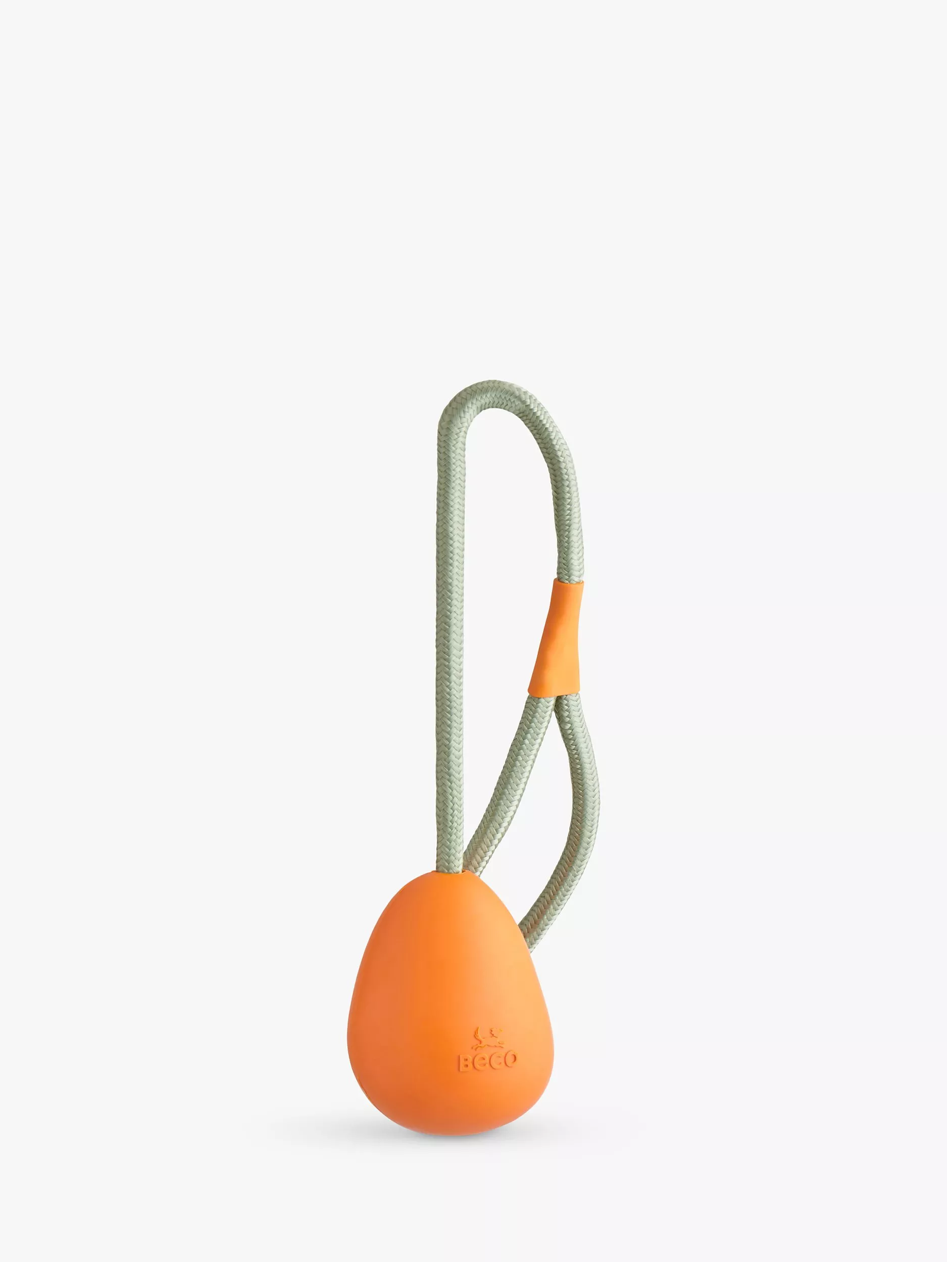 A natural rubber egg on a strong recycled rope. The springy natural rubber ball is easy for your dog’s grip and the rope gives extra throwing distance. Ideal for a game of fetch.