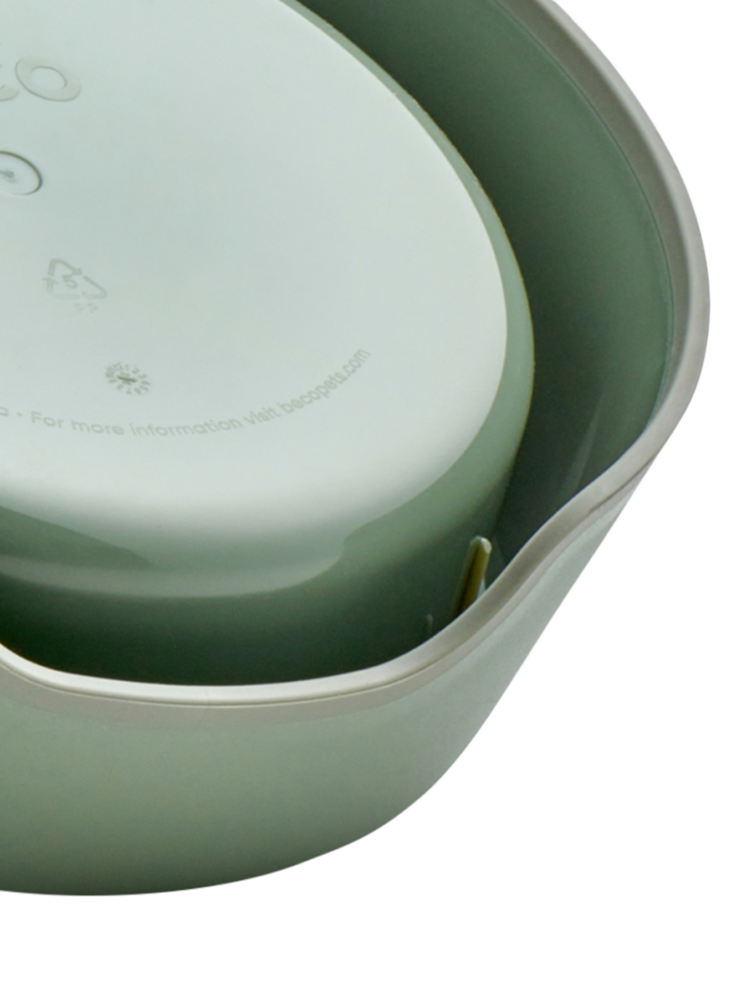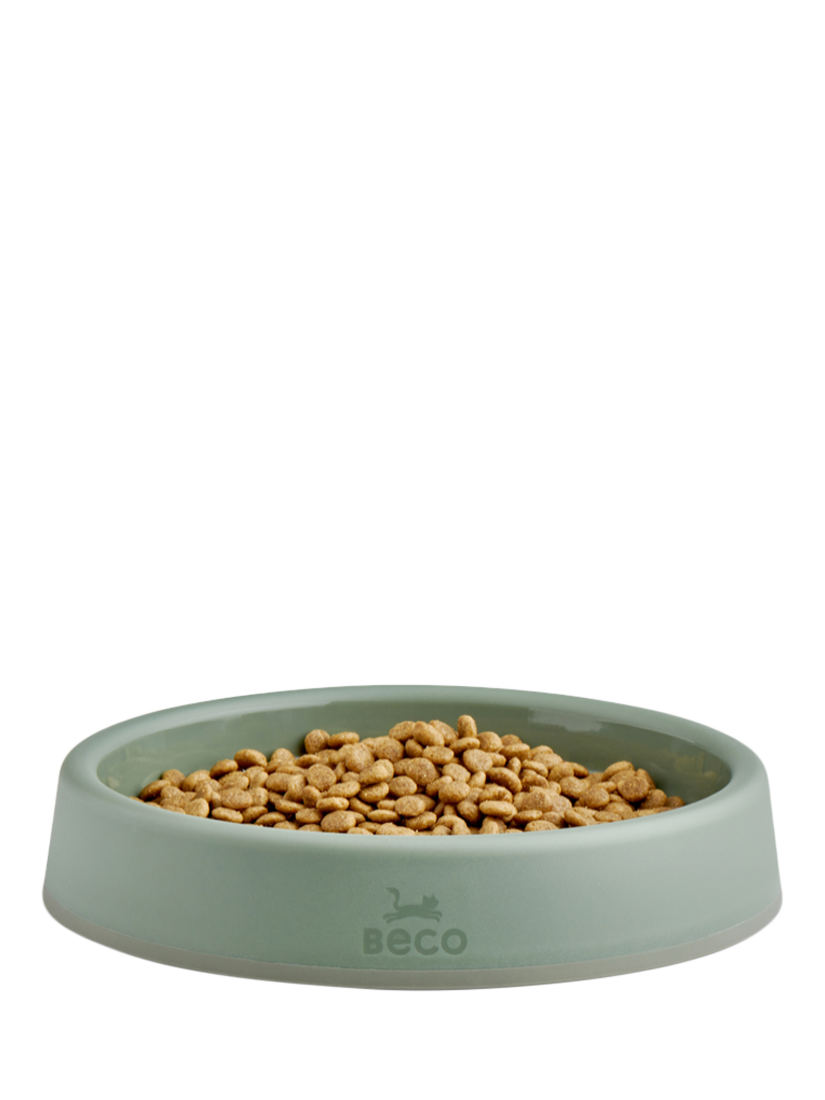A sturdy food and water bowl for cats made from 94% post-consumer recycled plastic. The wide and shallow design allows your cat to eat and drink without interfering with their whiskers. Each bowl has an easy pick-up handle and a non-slip base.