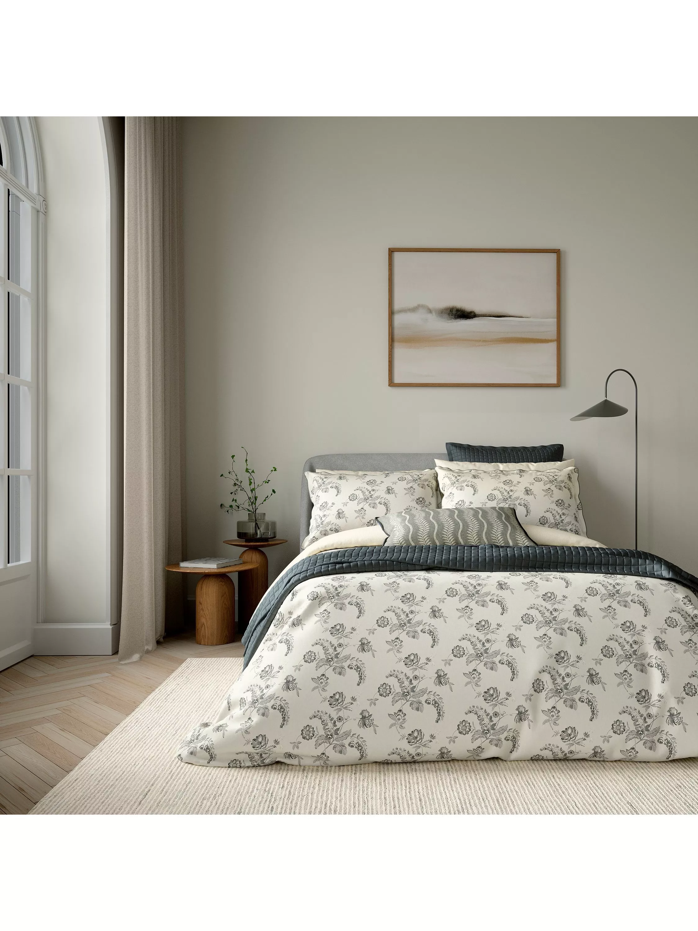 Made from a blend of cotton and linen, this cushion features a leaf trail design with a soft cotton velvet reverse and a piped edge.