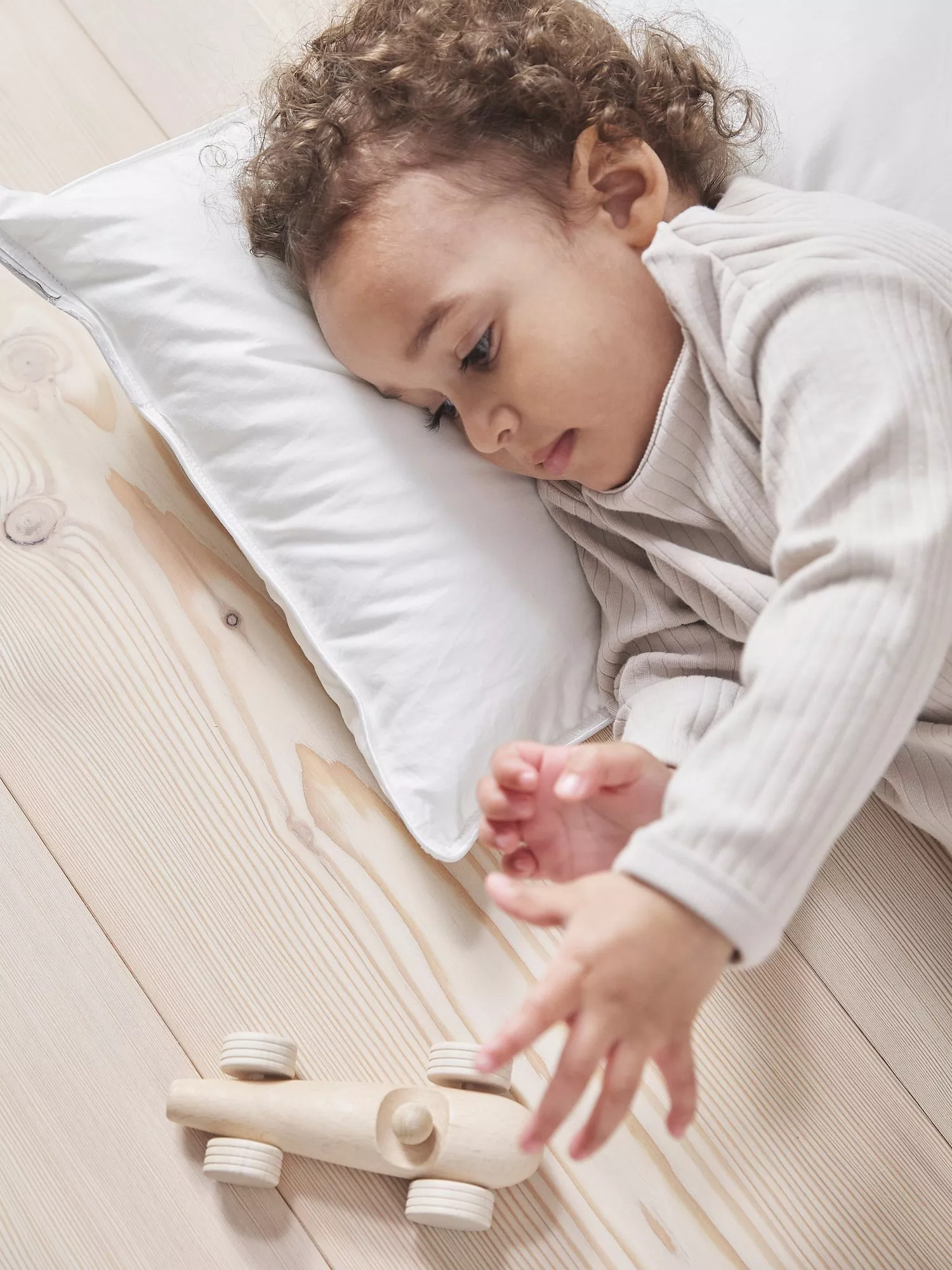 Your toddler will love this ridiculously comfortable pillow. Designed to mimic the light, lofty and super-soft feel of down with all the details you'd expect from Bedfolk: 100% cotton sateen baffle-wall casing, piped edging and a premium fill.